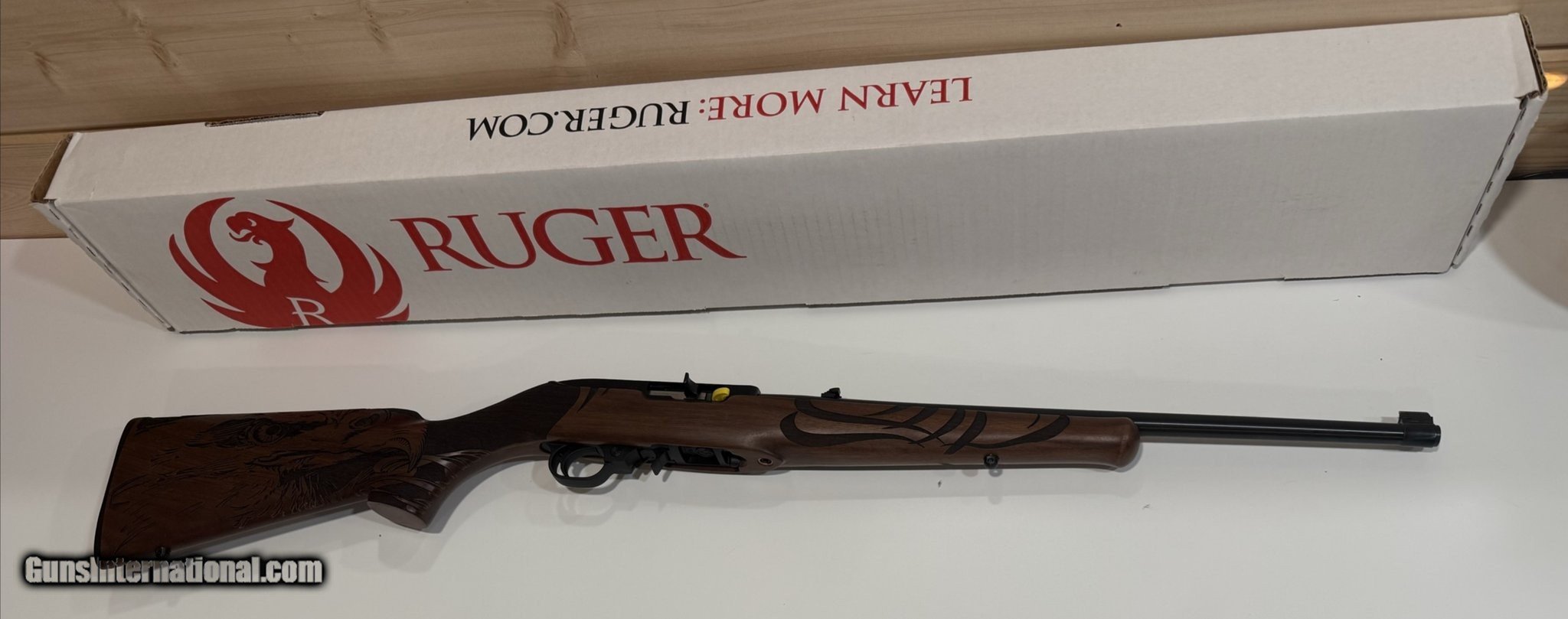 Description: Guns Listing ID: 594357 Up for sale is a Ruger 10/22 Carbine, Model 21199, in new in box / like-new condition. Although previously owned, the rifle remains essentially un-fired and comes in its original packaging — a fantastic opportunity for a collector or a shooter looking for a high-quality .22 LR platform. Ruger 10/22 Sporter Satin Black/Engraved Eagle Semi Automatic Rifle - 22 Long Rifle - 18.5 - For over 50 years, the ubiquitous 10/22 has been America’s favorite .22 rifle. With proven performance, a legendary action and a renowned, reliable rotary magazine, the 10/22 has inspired a loyal following for over half a century. Paying homage to the American symbol & bird of prey, Ruger & Talo have once again knocked it out of the park with their exclusive 10/22 with an Engraved American Eagle Wood Stock. Other features include a gold bead front & folding rear sight, 2-position cross bolt safety, and a 10 round magazine. Manufacturer: RUGER Model: 10/22 SPORTER AMERICAN EAGLE Caliber Info: .22 LR Condition: Used - Non-Certified Barrels: 18.5" BARREL Action: SEMI AUTOMATIC Finish: WALNUT Price: $500.99 Contact Seller |