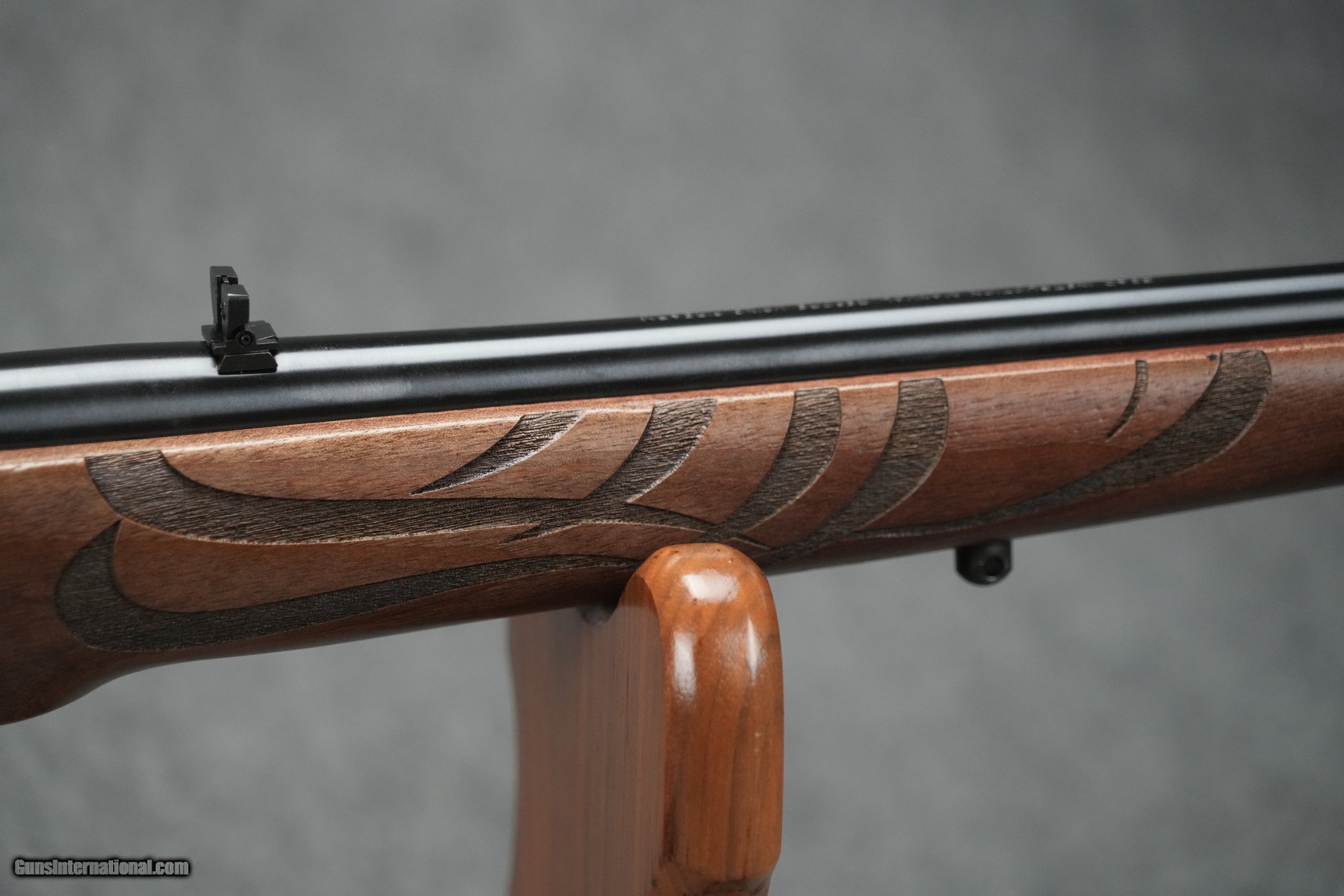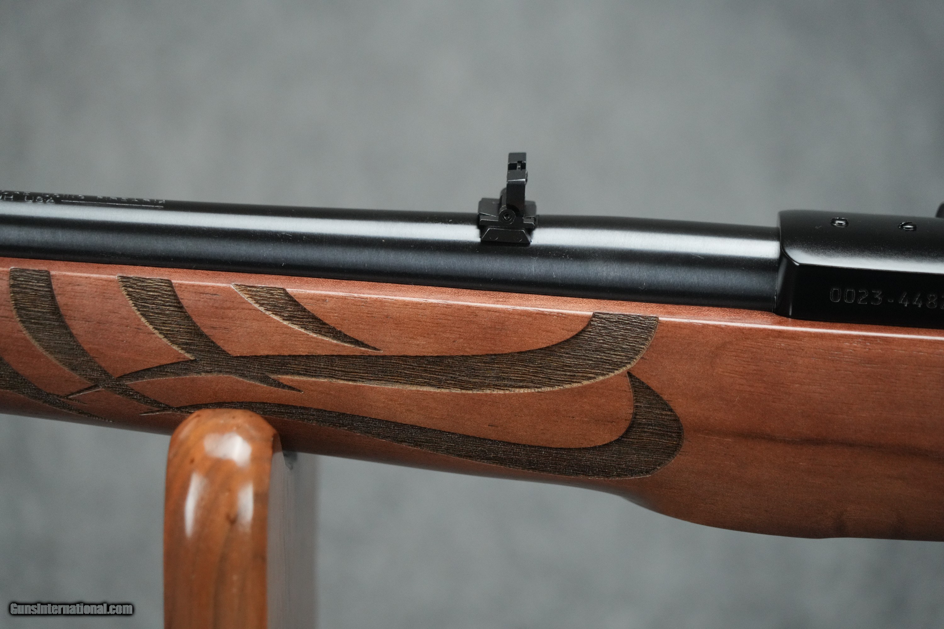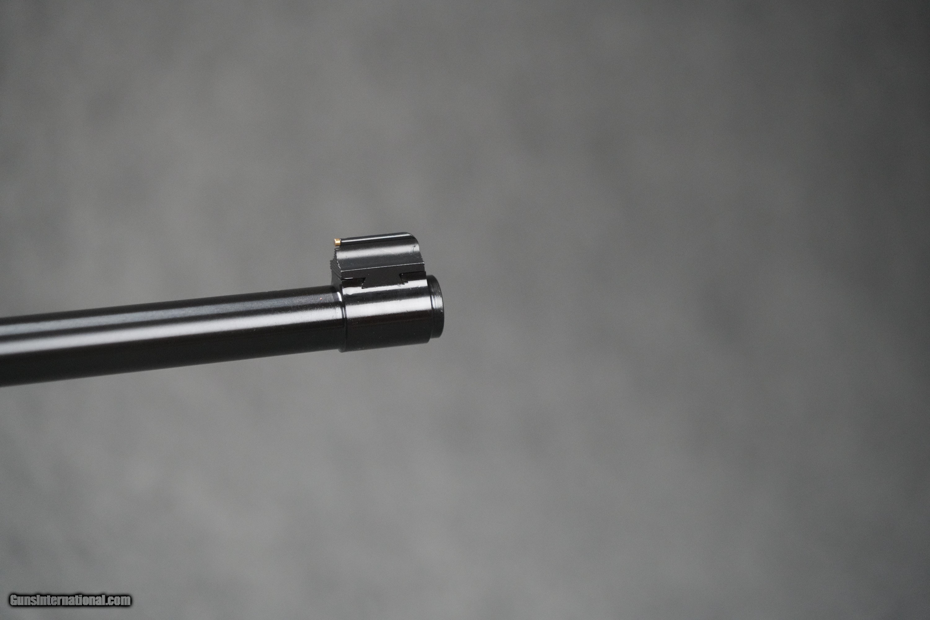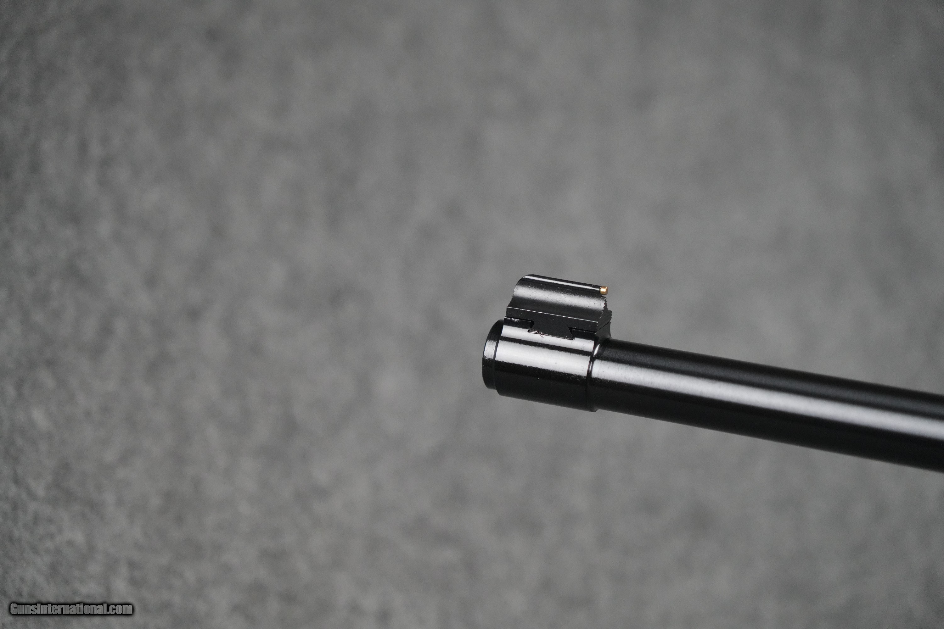 Description: This legendary action is a tried and true Ruger design that ensures consistent, reliable performance. Detachable 10-round rotary magazine features a unique rotor to separate cartridges and provide reliable feeding. Easy-to-use, prominent magazine release provides smooth, no-fuss removal of flush-mounted magazine. Cold hammer-forged barrel is locked into the receiver by a unique, two-screw, V-block system. Positive, push-button, cross-bolt manual safety. Heat-stabilized, glass-filled, polymer trigger housing assembly is precision made of high-tech material for improved manufacturing tolerances, impact and abrasion-resistance and an unmatched ability to withstand the elements. The receiver and stock combine to create classic lines for attractive styling. Sling swivels and flat buttplate. Stock Engraved Eagle Front Sight Gold Bead Rear Sight Adjustable Barrel Material Alloy Steel Twist 1:16" RH Capacity 10 Barrel Finish Satin Black Weight 4.9 lb. Overall Length 37" Barrel Length 18.50" Grooves 6 SOLD Rifle Caliber: .22 Long Rifle Manufacturer: Ruger Model: 10/22 Sporter Barrel Length: 18.5" Barrel Condition: BRAND NEW |