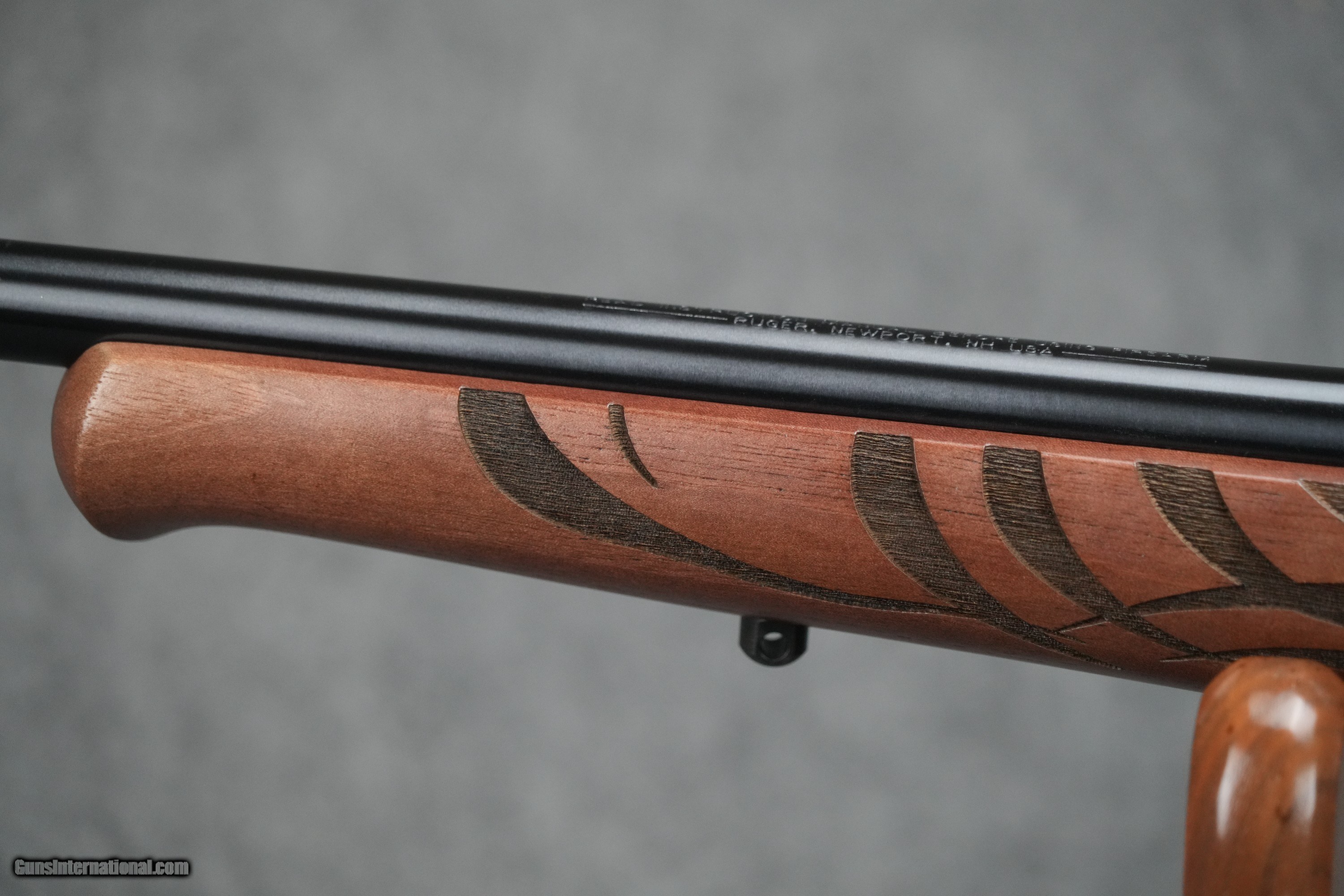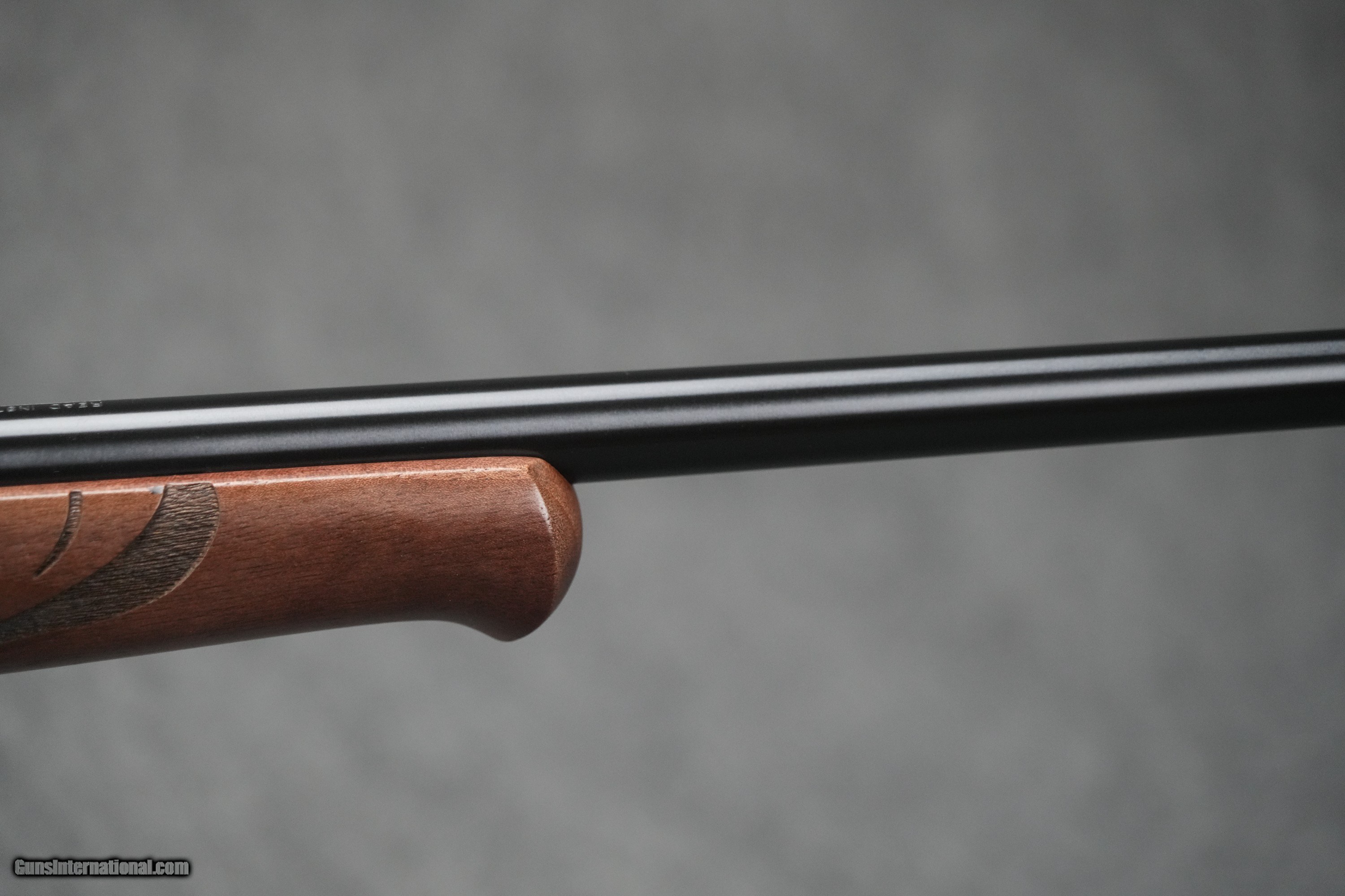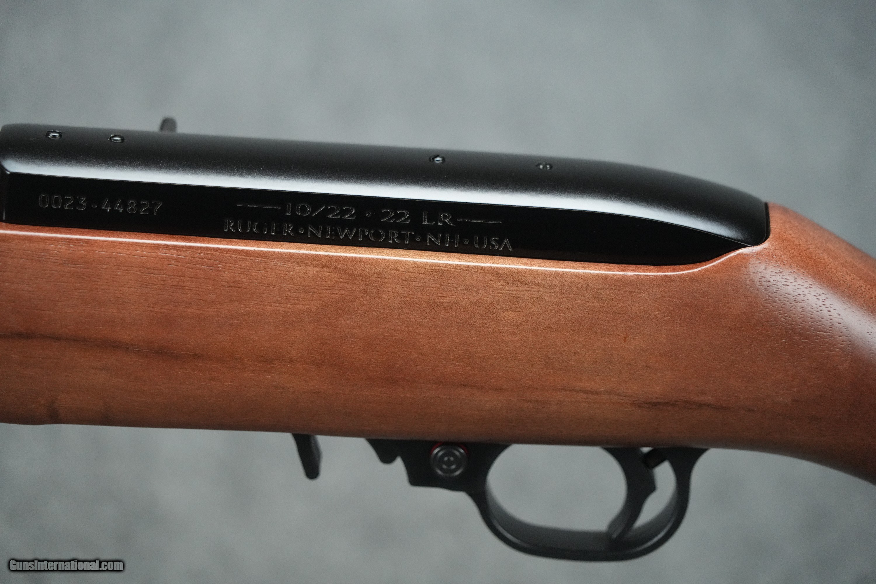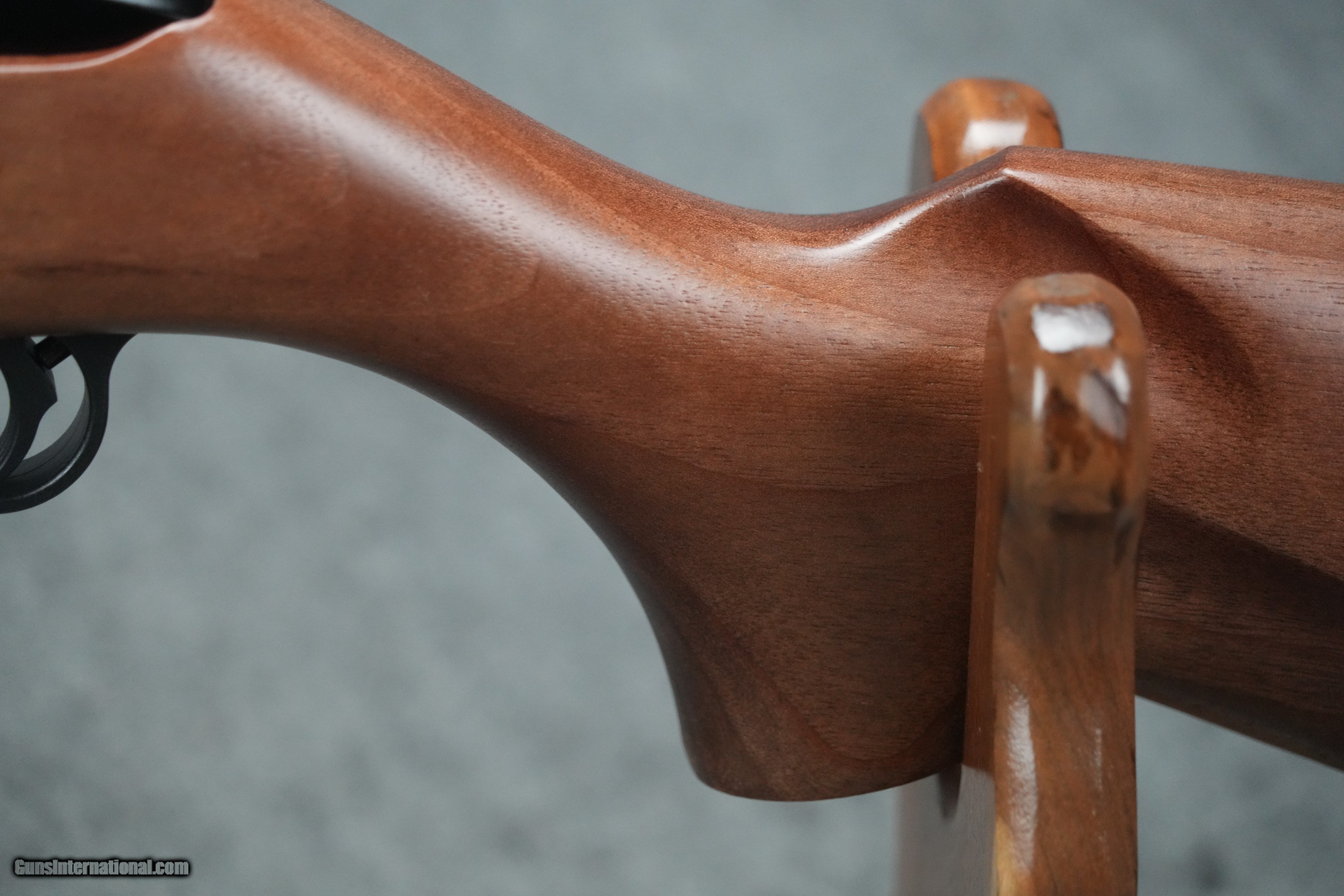 Description: This legendary action is a tried and true Ruger design that ensures consistent, reliable performance. Detachable 10-round rotary magazine features a unique rotor to separate cartridges and provide reliable feeding. Easy-to-use, prominent magazine release provides smooth, no-fuss removal of flush-mounted magazine. Cold hammer-forged barrel is locked into the receiver by a unique, two-screw, V-block system. Positive, push-button, cross-bolt manual safety. Heat-stabilized, glass-filled, polymer trigger housing assembly is precision made of high-tech material for improved manufacturing tolerances, impact and abrasion-resistance and an unmatched ability to withstand the elements. The receiver and stock combine to create classic lines for attractive styling. Sling swivels and flat buttplate. Stock Engraved Eagle Front Sight Gold Bead Rear Sight Adjustable Barrel Material Alloy Steel Twist 1:16" RH Capacity 10 Barrel Finish Satin Black Weight 4.9 lb. Overall Length 37" Barrel Length 18.50" Grooves 6 SOLD Rifle Caliber: .22 Long Rifle Manufacturer: Ruger Model: 10/22 Sporter Barrel Length: 18.5" Barrel Condition: BRAND NEW |