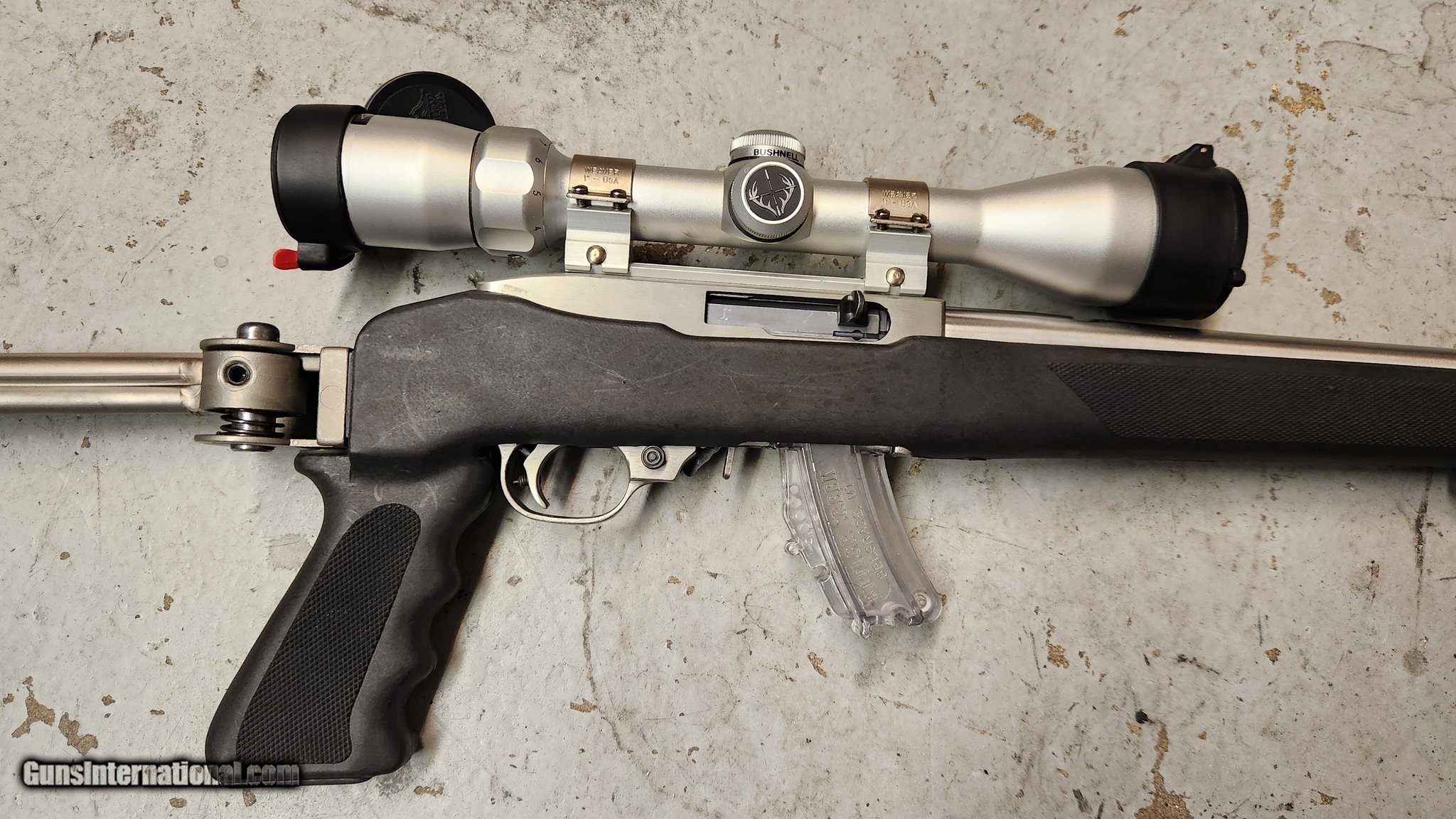 Description: Guns Listing ID: 1397209 Includes matching stainless 3-9x scope and folding stock. SOLD Manufacturer: RUGER Model: 10/22 Stainless Carbine w/ Folding Stock Caliber Info: .22 LR Condition: Used - Non-Certified Barrels: 20 BARREL Finish: STAINLESS & BLACK |