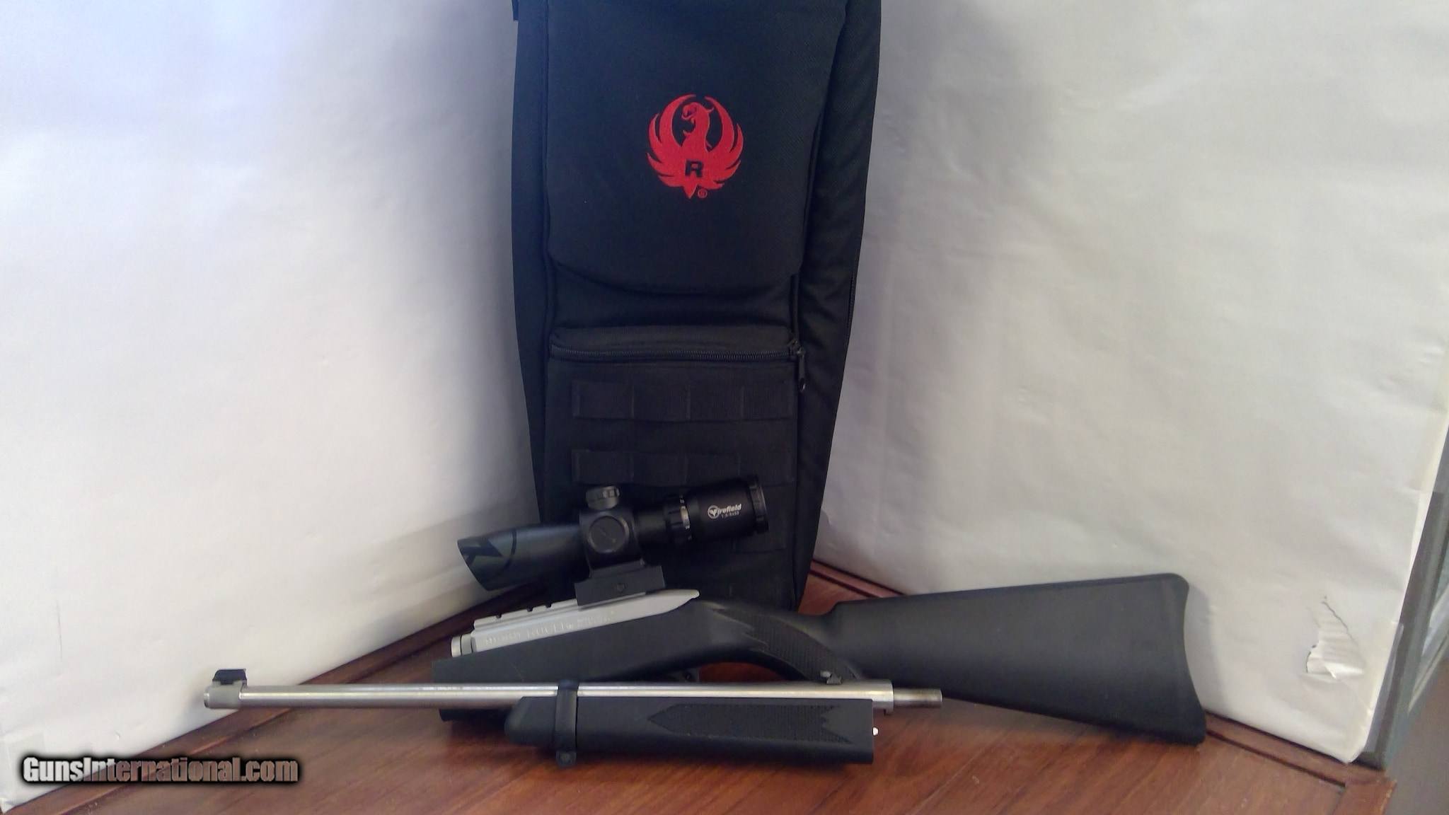 Description: Guns Listing ID: 545782 Comes with firefield scope and Ruger takedown bag 1-10rnd mag SOLD Manufacturer: RUGER Model: 10/22 STAINLESS Caliber Info: .22 LR Condition: Used - Non-Certified Barrels: 18.5 BARREL Finish: STAINLESS AND BLACK |