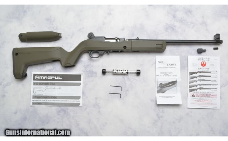 Description: This Ruger 10/22 Takedown (Model 31101) features; 16" Threaded Barrel chambered in .22 Long Rifle, OD Green Magpul X-22 Backpacker Stock with storage for 3 10-round magazines, 2 Cheek Risers, Tech Sights TSR100 & TSR200 Sights with Adjustment Tool, 2 Kidd Innovative Designs Recoil Springs and Extended Charging Handle. Comes with only 1 Magazine, Manual and Factory Front Sight. .22 Long Rifle SOLD Chambers: .22 Long Rifle Metal Condition: Excellent Bore Condition: Excellent Barrels: 16" Threaded Sights: Tech Sights TSR100 & TSR200 Item Location: Green Bay |