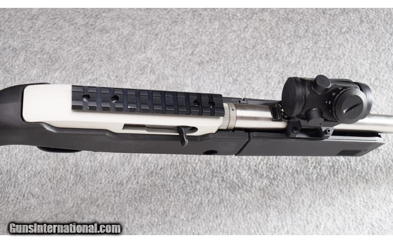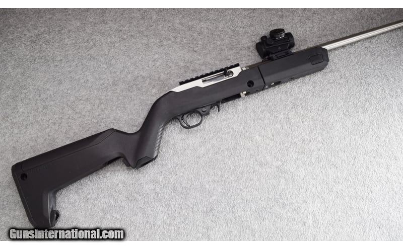 Description: This Ruger 10/22 stainless takedown in .22LR was manufactured in 2013 and remains in excellent condition. A Bushnell red dot sight is attached on a forward mount. A picatinny rail is mounted to the top of the receiver. The rifle sports a Magpul takedown stock. No Box!! Very nice 10/22 takedown! .22 Long Rifle SOLD Metal Condition: Excellent Bore Condition: Excellent Barrels: 18" Stainless Triggers: Factory Stock Dimensions: 13" LOP Fore End: Black Synthetic Magpul Stock - Black Synthetic Takedown Forend Butt Pad: Black Rubber Magpul Butt Pad Weight: 5 lbs Sights: Bushnell Red Dot Sight - Front Post & Bead Sight - Rear Picatinny Rail Item Location: Wheeling |