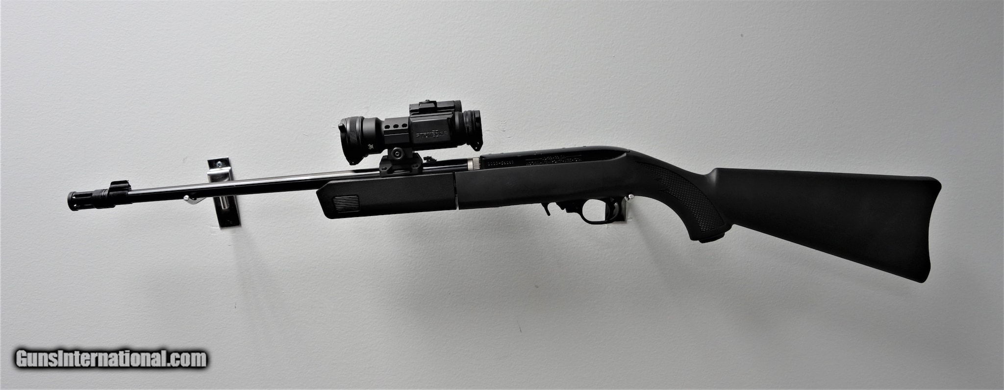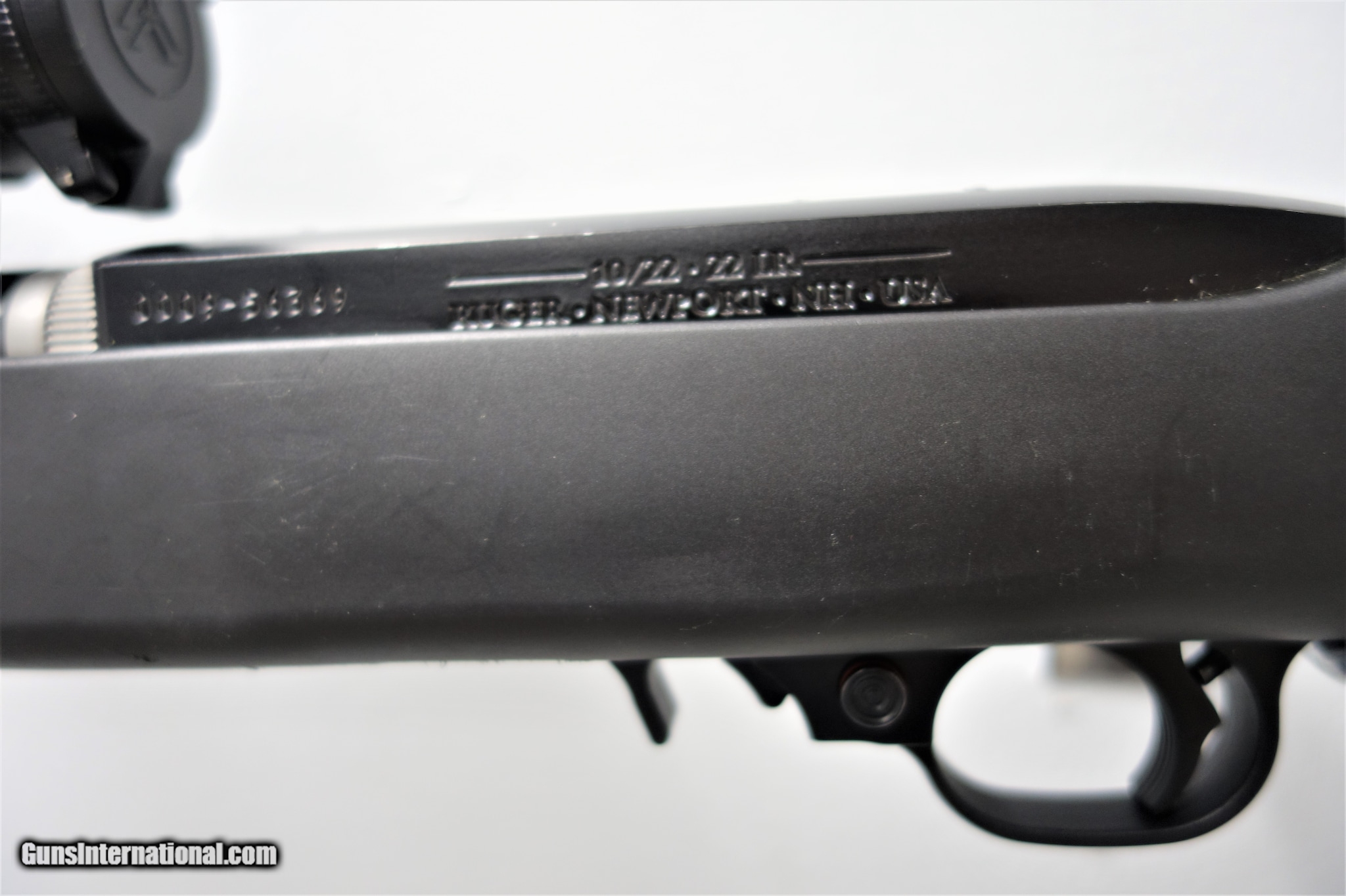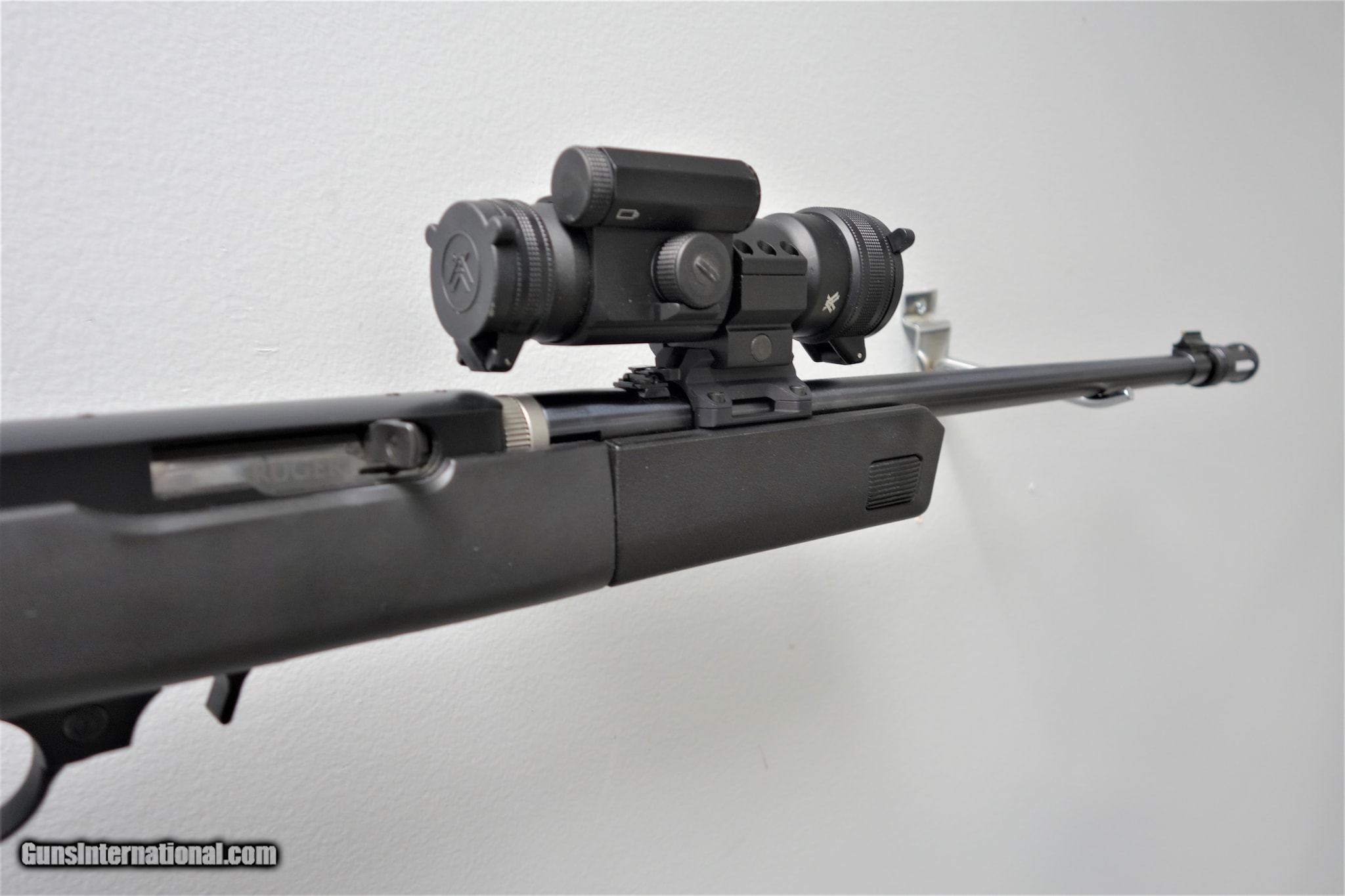 Description: Guns Listing ID: 631704 10/22 Takedown with Vortex Strikefire II Red/Green Dot The 10/22 Takedown features easy, quick separation of the barrel from the action for ease of transportation and storage. Takedown is as simple as locking the bolt back and verifying that the rifle is unloaded, pushing a recessed lever, twisting the subassemblies and pulling them apart. It also has an extended magazine release for the flush-mount, detachable 10-round rotary magazine, and a precision-rifled cold hammer-forged barrel. This model has a threaded barrel capped with an SR-556/Mini-14-style flash suppressor mounted with a 1/2\"-28 thread. The combination scope base adapter for both Weaver-style and .22 \"tip-off\" scope mounts is provided with every rifle. Included is a backpack-style bag, which provides ample storage with extra pockets and magazine pouches. Vortex Optics Strikefire II Red/Green Dot Sight The Strikefire II Red/Green Dot is a rugged, reliable red dot sight that is at home in a variety of shooting applications. It allows the shooter to operate between two dot colors and ten brightness settings to easily adjust for changing conditions Fully multi-coated lenses provide a clean and bright, unobscured point of view. Unlimited eye relief allows for rapid target acquisition. Max Elevation Adjustment- 100 MOA. Max Windage Adjustment- 100 MOA SOLD Manufacturer: RUGER Model: 10/22 TAKEDOWN Caliber Info: .22 LR Condition: Used - Non-Certified Barrels: 16.4 barrel |