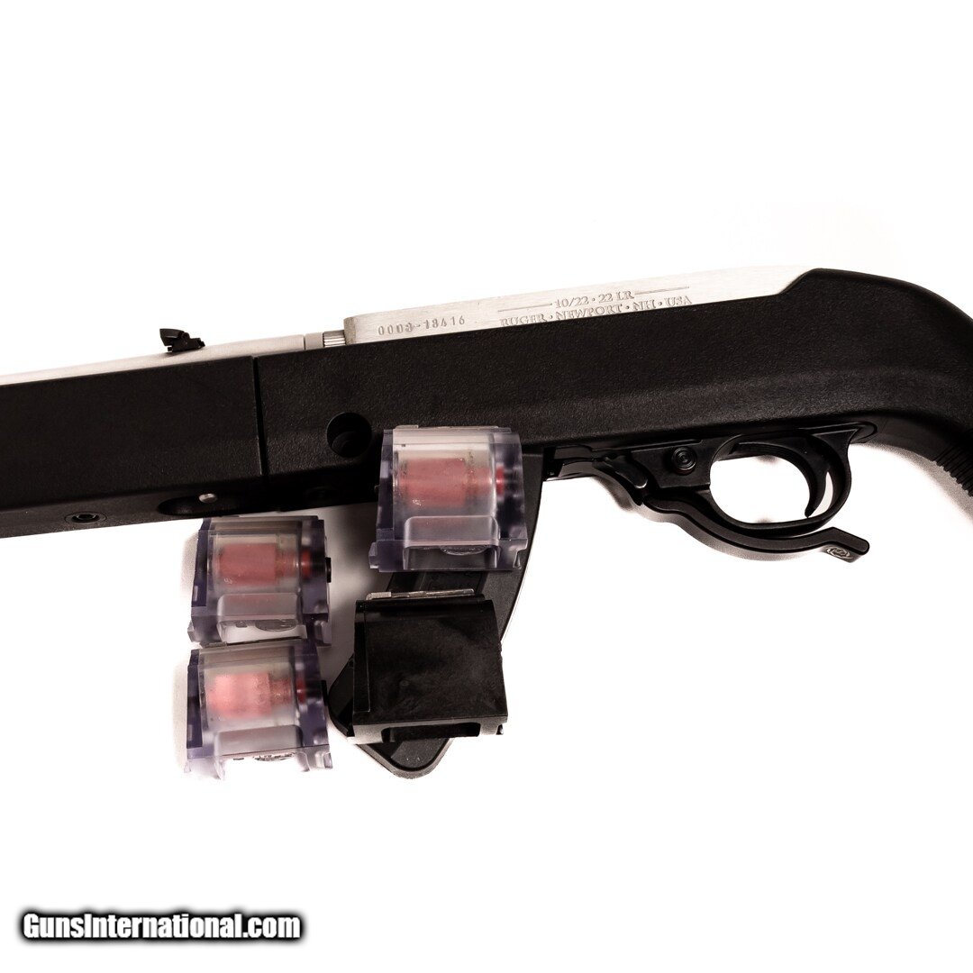 Description: Guns Listing ID: 767582 The Ruger 10/22 Takedown shares all the favored features of the standard 10/22 with one added benefit — it can break into two pieces for a compact, easy-to-stow package. It makes the perfect small game and target practice rifle for backpackers and campers. This 10/22 Takedown includes the original carry bag, four 10-round magazines, and one 15-round magazine. Get the best bang for your buck when you get a Certified Used Firearm . When you see the Certified Used stamp on any of our firearms, you can be confident that you’re getting exactly what you want – a gun only in very good to excellent condition and held to the highest quality standard. All Certified Used Guns come with a ‘no questions asked’ return policy . PLUS, ALL CERTIFIED USED GUNS SHIP FREE! SOLD Manufacturer: RUGER Model: 10/22 TAKEDOWN Caliber Info: .22 LR Condition: Used - Certified Barrels: 18 BARREL Finish: STAINLESS |