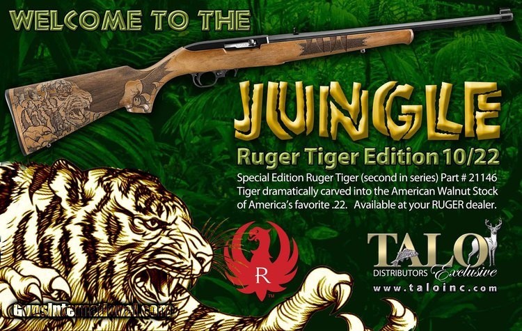 Ruger 10/22 Talo Edition Tiger Rifle, 22 LR, 18?, Deluxe Engraved Wood Stock, Blued Finish, 10 Rds, Ruger 21146