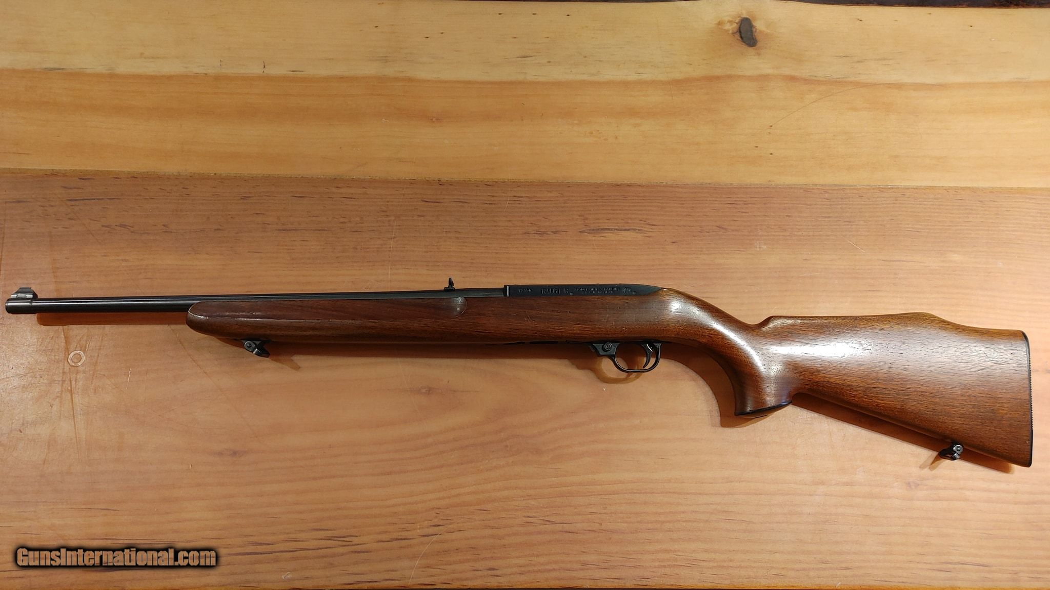 Description: Guns Listing ID: 596318 This Ruger 10-22 was a first year production, complete with finger grooves that were present from 1966 to 1971. The finish is blued and parkerized. The gun also features German Mauser style sling swivels. SOLD Manufacturer: RUGER Model: 10-22 Caliber Info: .22 LR Condition: Used - Non-Certified Barrels: 1.8 BARREL Finish: BLUED |