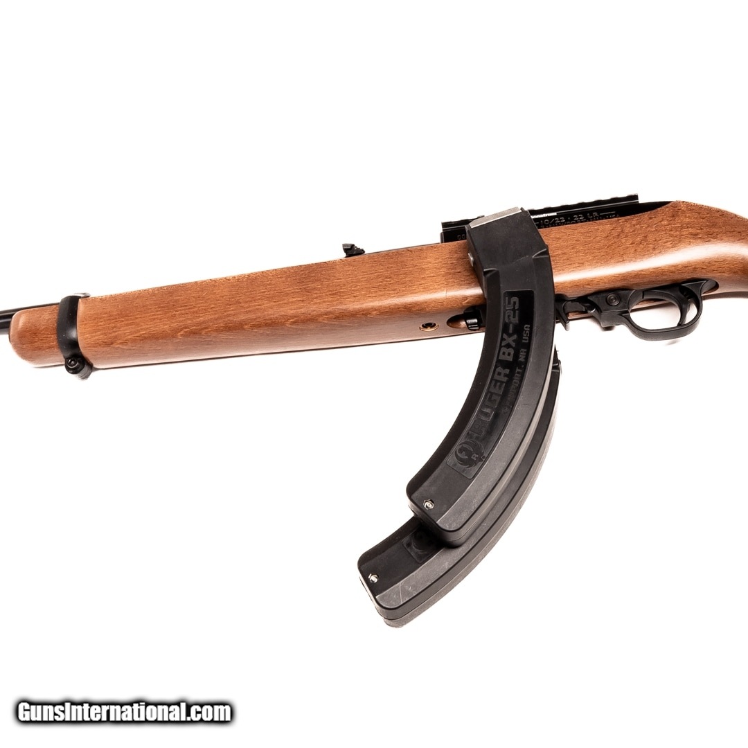 Description: Guns Listing ID: 808022 With a staggering 5 million sales since its introduction, the Ruger 10/22 is, by far, one of the most popular rifles in the US. There are countless options for aftermarket upgrades on the affordably-priced 10/22. If you are in the market for a 22-caliber rifle, this Ruger 10/22 is, by all accounts, one of the best options. This 10/22 features a Picatinny rail on the receiver with an extra 4.5\" rail included. It also comes with the original box, owner‚‚s manual, one 10-round magazine, and two 25-round magazines. Get the best bang for your buck when you get a Certified Used Firearm . When you see the Certified Used stamp on any of our firearms, you can be confident that you’re getting exactly what you want – a gun only in very good to excellent condition and held to the highest quality standard. All Certified Used Guns come with a ‘no questions asked’ return policy . PLUS, ALL CERTIFIED USED GUNS SHIP FREE SOLD Manufacturer: RUGER Model: 10/22 Caliber Info: .22 LR Condition: Used - Certified Barrels: 18 BARREL Finish: BLACK /W WOOD STOCK |