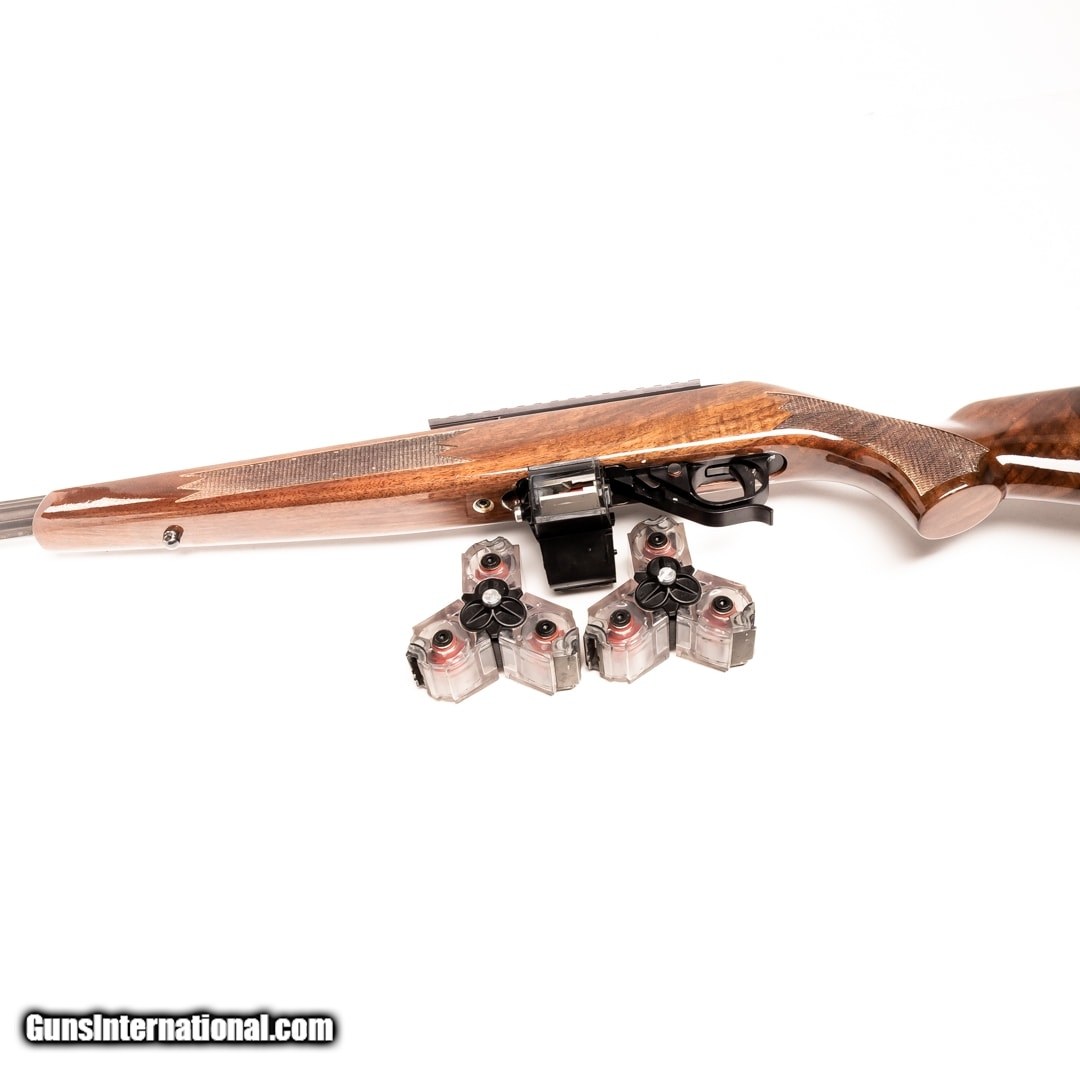 Description: Guns Listing ID: 789689 With a staggering 5 million sales since its introduction, the Ruger 10/22 is, by far, one of the most popular rifles in the US. There are countless options for aftermarket upgrades on the affordably-priced 10/22. If you are in the market for a 22-caliber rifle, this Ruger 10/22 is, by all accounts, one of the best options. This 10/22 features a walnut stock with checkering and a high gloss finish, Green Mountain fluted barrel, custom bolt handle, magazine ejection lever, and a scope mounting rail. Purchase includes a Ruger soft carry case, nine 10-round magazines, and three tri-mag connectors. Get the best bang for your buck when you get a Certified Used Firearm . When you see the Certified Used stamp on any of our firearms, you can be confident that you’re getting exactly what you want – a gun only in very good to excellent condition and held to the highest quality standard. All Certified Used Guns come with a ‘no questions asked’ return policy . PLUS, ALL CERTIFIED USED GUNS SHIP FREE! SOLD Manufacturer: RUGER Model: 10/22 Caliber Info: .22 LR Condition: Used - Certified Barrels: 19.5 BARREL Finish: BLACK |