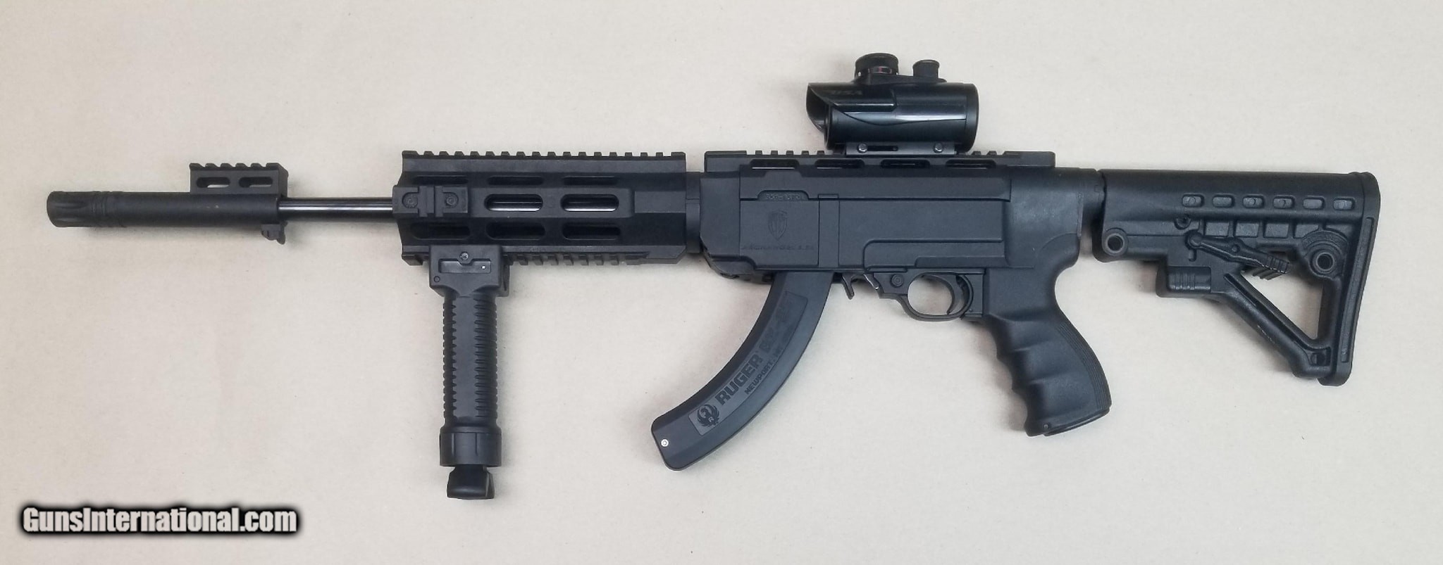 Description: Guns Listing ID: 800506 THIS RIFLE HAS THE \"ARCHANGEL\" 6-POSITION AR STYLED STOCK! INCLUDES A RUGER 25-ROUND MAGAZINE, BSA VARIABLE RED/GREEN LIGHTED OPTICS & A FOREGRIP THAT CONTAINS A QUICK RELEASE BUTTON FOR BI-POD OPTION. YOU DEFINITELY WILL HAVE FUN WITH THIS SET UP :) SOLD Manufacturer: RUGER Model: "10/22 Caliber Info: .22 LR Condition: Used - Non-Certified Barrels: 18 BARREL Finish: BLACK |