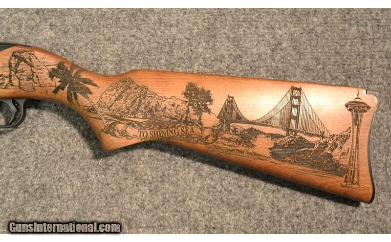 Description: Custom engraved 10/22 with modern depictions of what "America The Beautiful" lyrically illustrates. Representations from across the USA that are tastefully and respectfully designed. Exclusive to the Thornton Cabela's store. .22 Long Rifle SOLD Metal Condition: Excellent; ANIB (Engraved) Wood Condition: Excellent; ANIB (Engraved) Bore Condition: Excellent; ANIB Barrels: 18.5 Stock Dimensions: 13.5" LOP Fore End: Engraved Wood Butt Pad: Plastic Weight: 5 lbs Sights: Fixed Post Front; Flip-Up Rear Item Location: Thornton, CO |