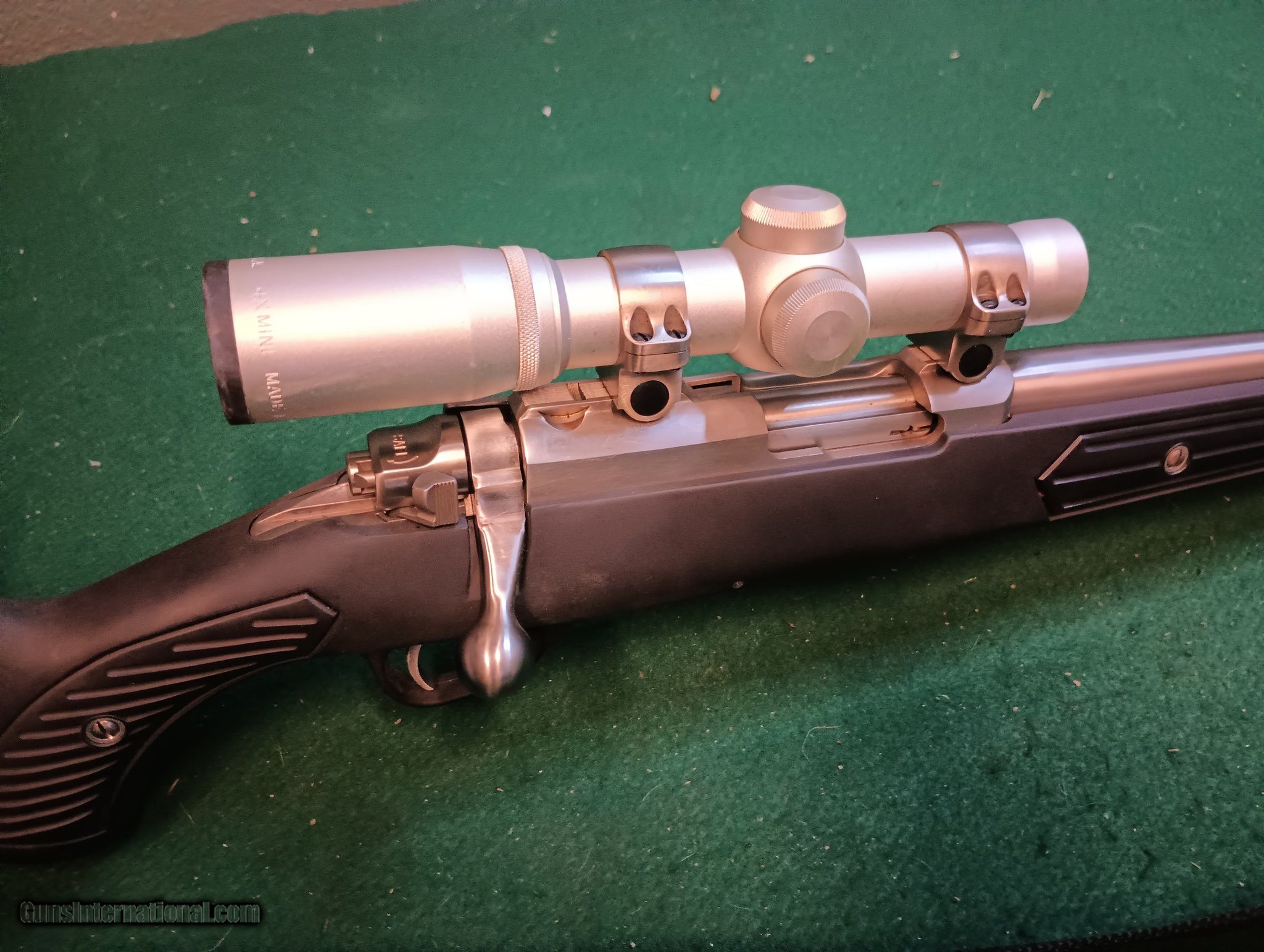Description: Guns Listing ID: 1387460 Ruger M77/22 - Black and stainless - 24\" barrel - Comes with Ruger rings holding a Burris 4X scope, one 10rd. magazine, and a sling. Condition is very good. SOLD Manufacturer: RUGER Model: M77/22 All Weather Caliber Info: .22 LR Condition: Used - Non-Certified Barrels: 24 BARREL Finish: STAINLESS & BLACK |