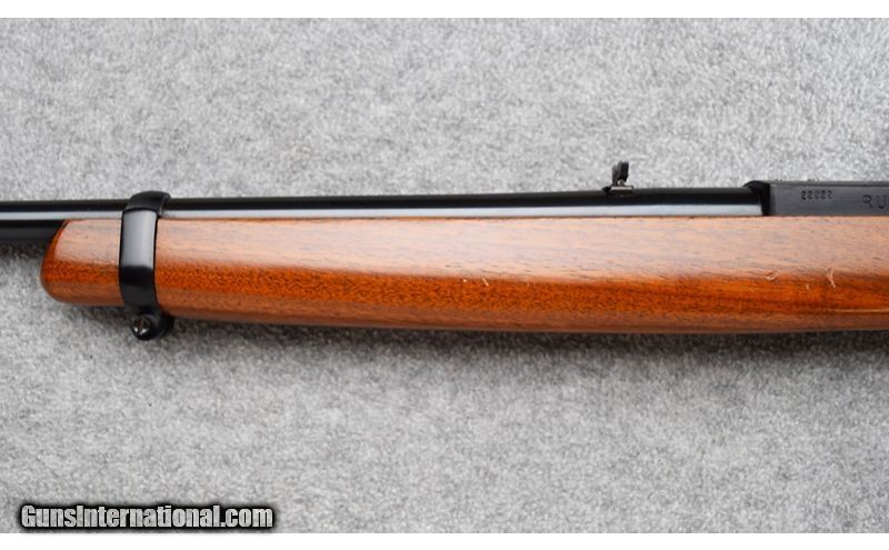 Description: This Ruger was manufactured in 1966 (3rd year of production) and remains in very good overall condition. Wood has some light dings and impressions but remains solid with no cracks. Metal is excellent showing a scratch on trigger guard. Bore is excellent. Nice gun for the collector or shooter! .22 Long Rifle SOLD Metal Condition: Excellent Wood Condition: Very Good Bore Condition: Excellent Barrels: 18 Triggers: Factory Stock Dimensions: 13 3/8" LOP Fore End: Uncheckered Walnut Semi Pistol Grip Butt Pad: Uncheckered Walnut Semi Pistol Grip Weight: 5lbs Sights: Post & Bead Front - Folding Notch Rear - Factory Drilled & Tapped Item Location: Wheeling |