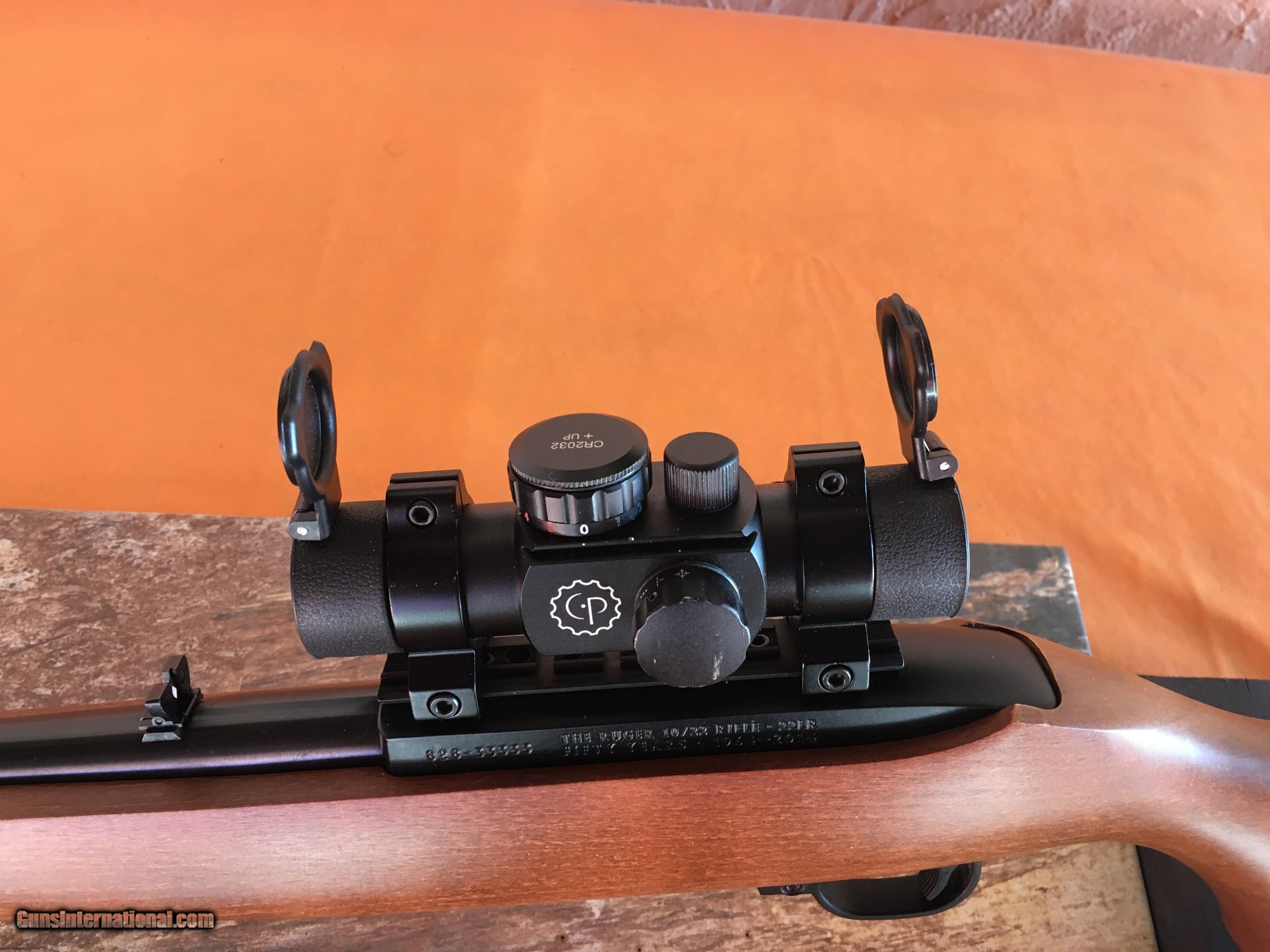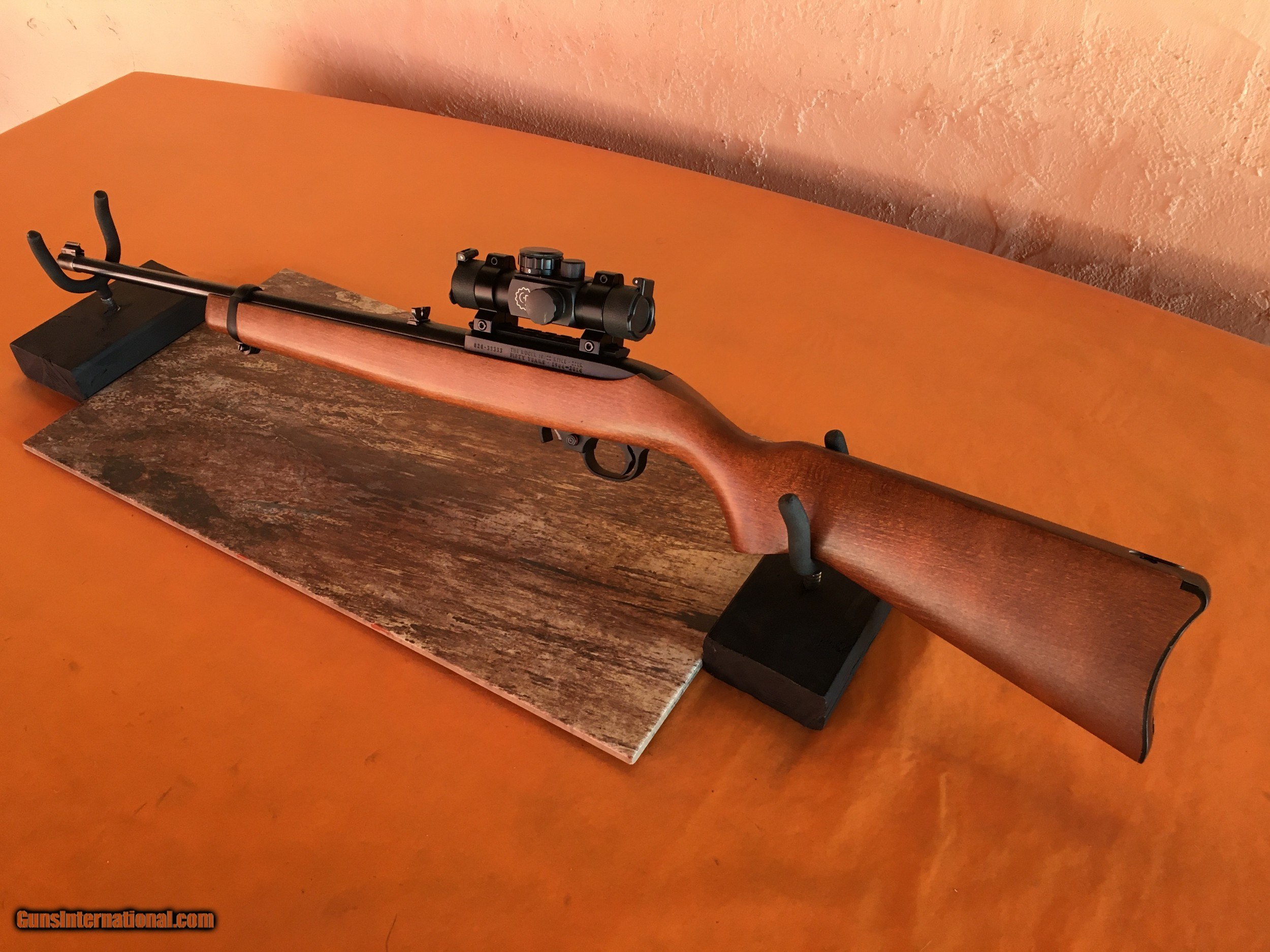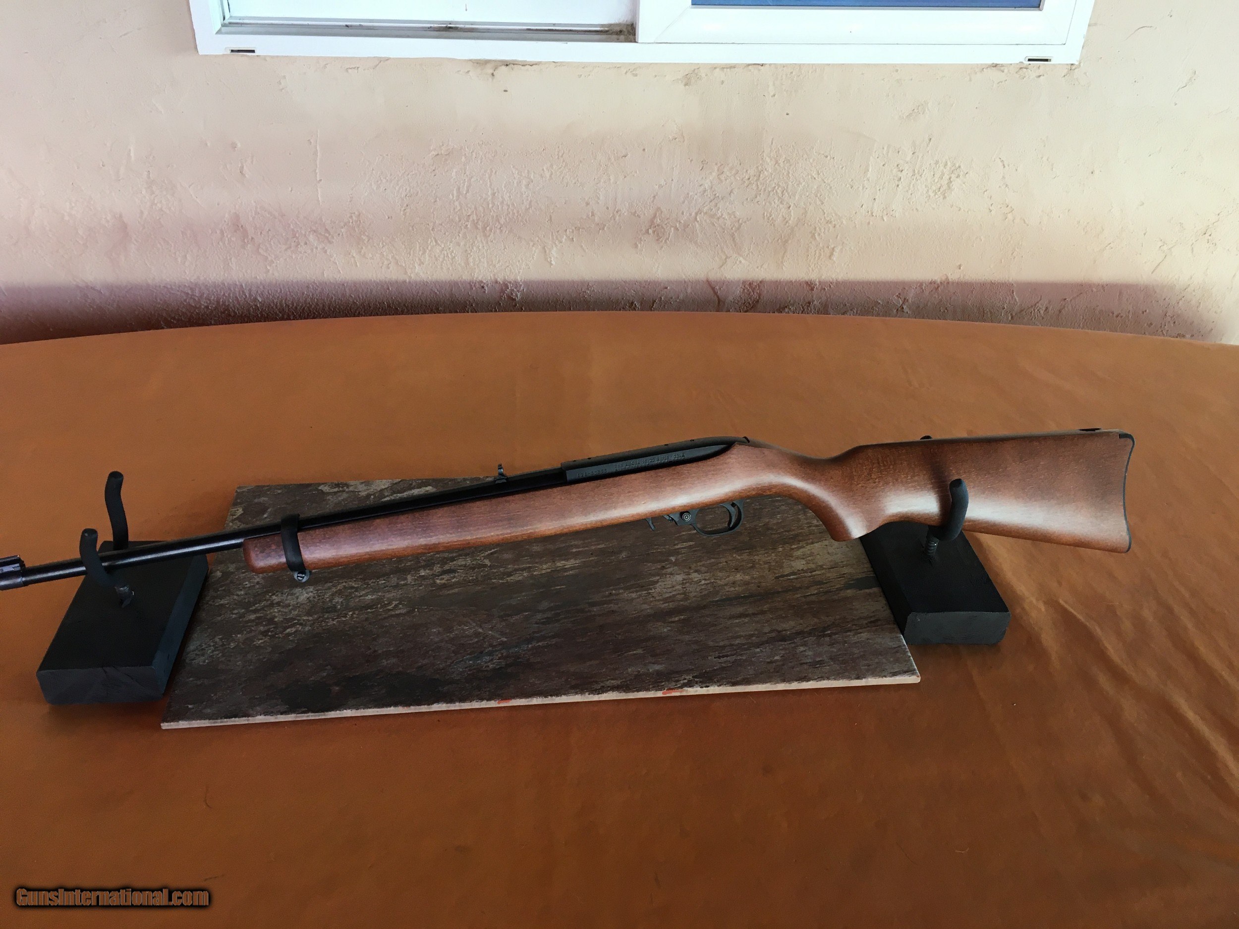 Description: New Ruger Model 10/22 - 50th Anniversary Edition - .22 LR Carbine Rifle - Smooth pistol grip style carbine hardwood stock with barrel band and curved butt plate. 18.5 in. long carbine style barrel with adj. open rear leaf sight and a front bead sight. Receiver drilled for scope. Includes a new Center Point sight with Weaver scope adapter, rings and flip up lens protectors. Std.10 round Ruger magazine. Original box and manual are in very good condition. Condition is NIB - Unfired. Great addition to you Ruger collection. We can ship to your FFL dealer at a flat rate of $50.00 S&I to lower 48 states. SOLD Rifle Caliber: .22 Long Rifle Manufacturer: Ruger Model: 10/22 Serial Number: 826 - 33333 Barrel Length: 18.5 In. Condition: New Barrels: 18.5 In long Butt Pad: Curved Weight: 5.5 Lbs Sights: Open / Bead Extras: Original Box |