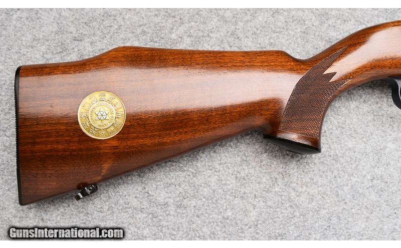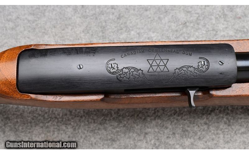 Description: This Ruger "Canadian Centennial" was manufactured in 1967 commemorating the 1867 to 1967 date and remains in excellent condition. Wood, blue and bore are all excellent. Canadian Centennial gold coin inlaid on right buttstock. Top of receiver is engraved with maple leaf and Canadian Centennial dates. Only about 2400 of these guns were produced. Nice little gun for the Canada collector or Ruger collector! No box. .22 Long Rifle SOLD Metal Condition: Excellent Wood Condition: Excellent Bore Condition: Excellent Barrels: 18 Triggers: Factory Stock Dimensions: 14" LOP Fore End: Checkered Walnut Pistol Grip with Black Ruger Pistol Grip Cap - Checkered Walnut Forend Butt Pad: Lined Black Ruger Butt Plate Weight: 5 lbs. Sights: Post & Bead Front - Adjustable V-Notch Rear Item Location: Wheeling |