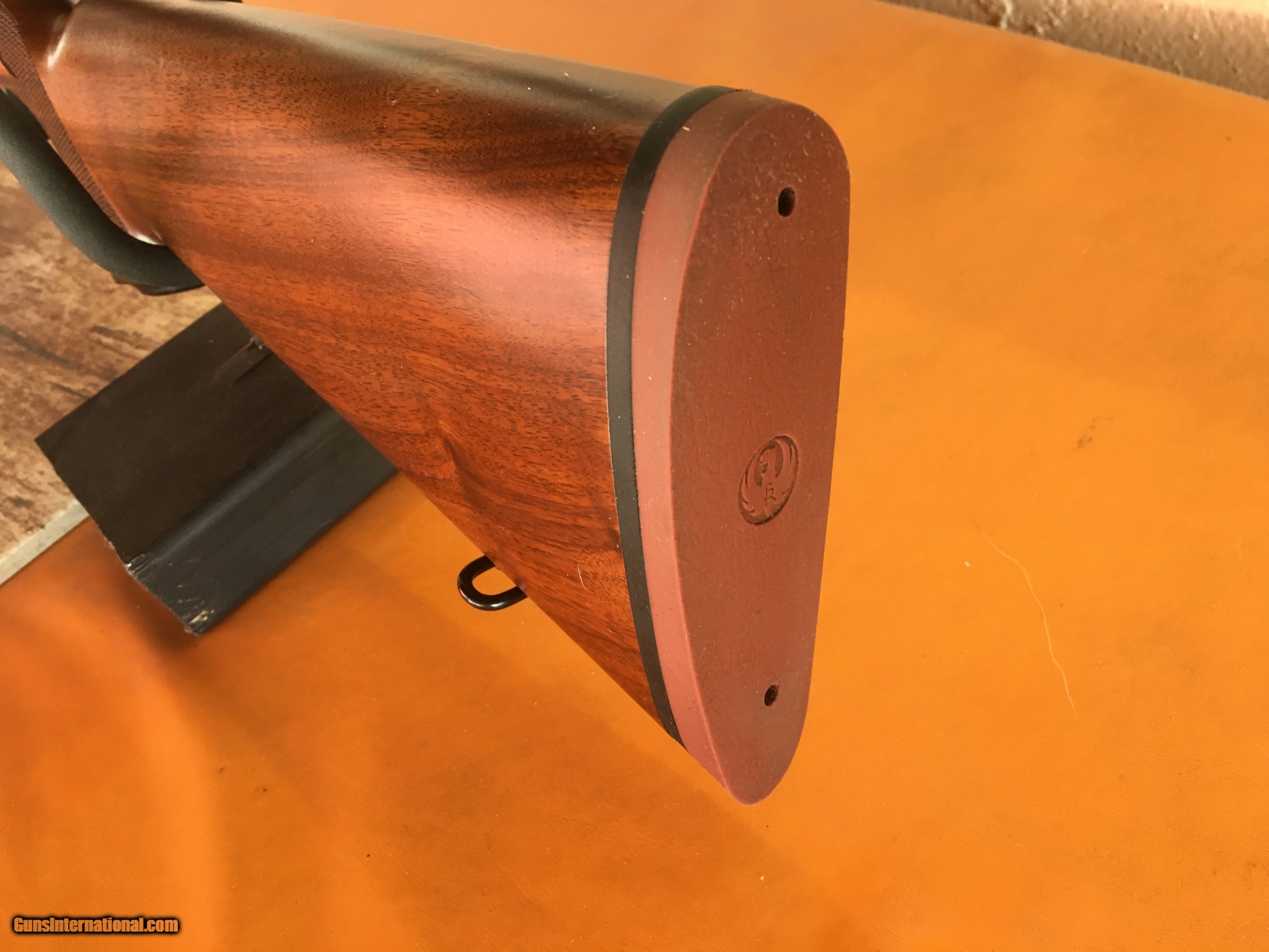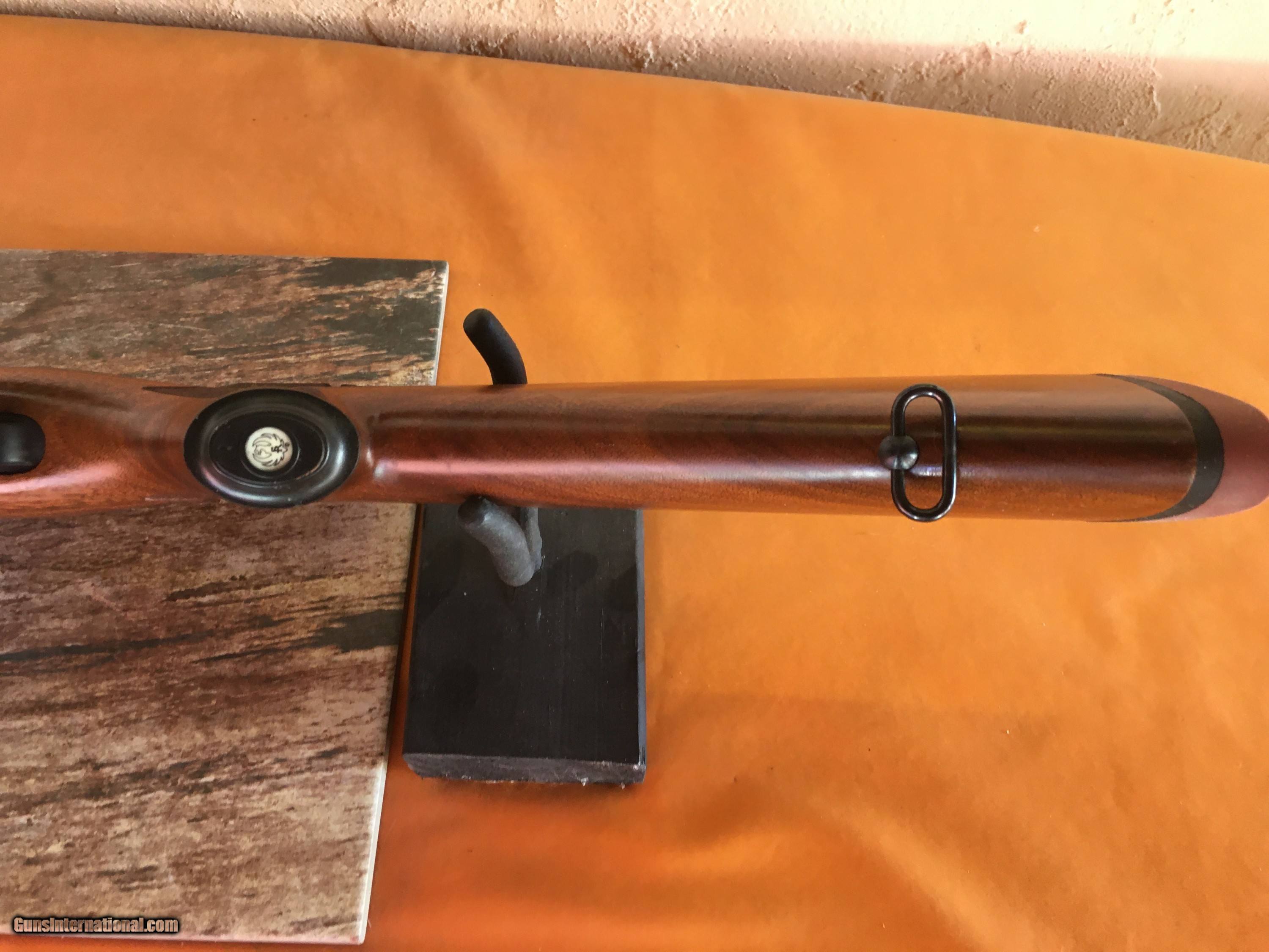 Description: Ruger Model 10/22 RBI- International Model w/ Mannlicher Stock - Semi - Auto .22 LR Rifle - One piece walnut checkered stock with extended forend , cushioned butt pad , sling swivels and SS barrel band . 18 In. long barrel with adj. folding leaf open sight and a front bead sight. Cross bolt safety. 10 Round rotary magazine. Bore is as new . Barrel and receiver are retaining 100% bluing. Receiver drilled for scope mount. Includes a New Nikon Prostaff BDC Model hunting scope w/ new rings. Includes a new soft sleeve. Stock and forend are as new with no handling marks. Overall condition is as new. May have been test fired only. Manufactured from 1994 to 2003. Beautiful addition to any collection. We can ship to your FFL dealer at a flat rate of $50.00 S&I to lower 48 states. All of our rifles have been cleaned and lubricated. SOLD Rifle Caliber: .22 Long Rifle Manufacturer: Ruger Model: 10/22 RBI Serial Number: 0015-75847 Barrel Length: 18In. long Condition: As New Metal Condition: As New Wood Condition: As New Bore Condition: As New Stock: Mannlicher Butt Pad: Padded Weight: 5.5 Lbs Sights: Open / Bead Case: New Soft Sleeve |
