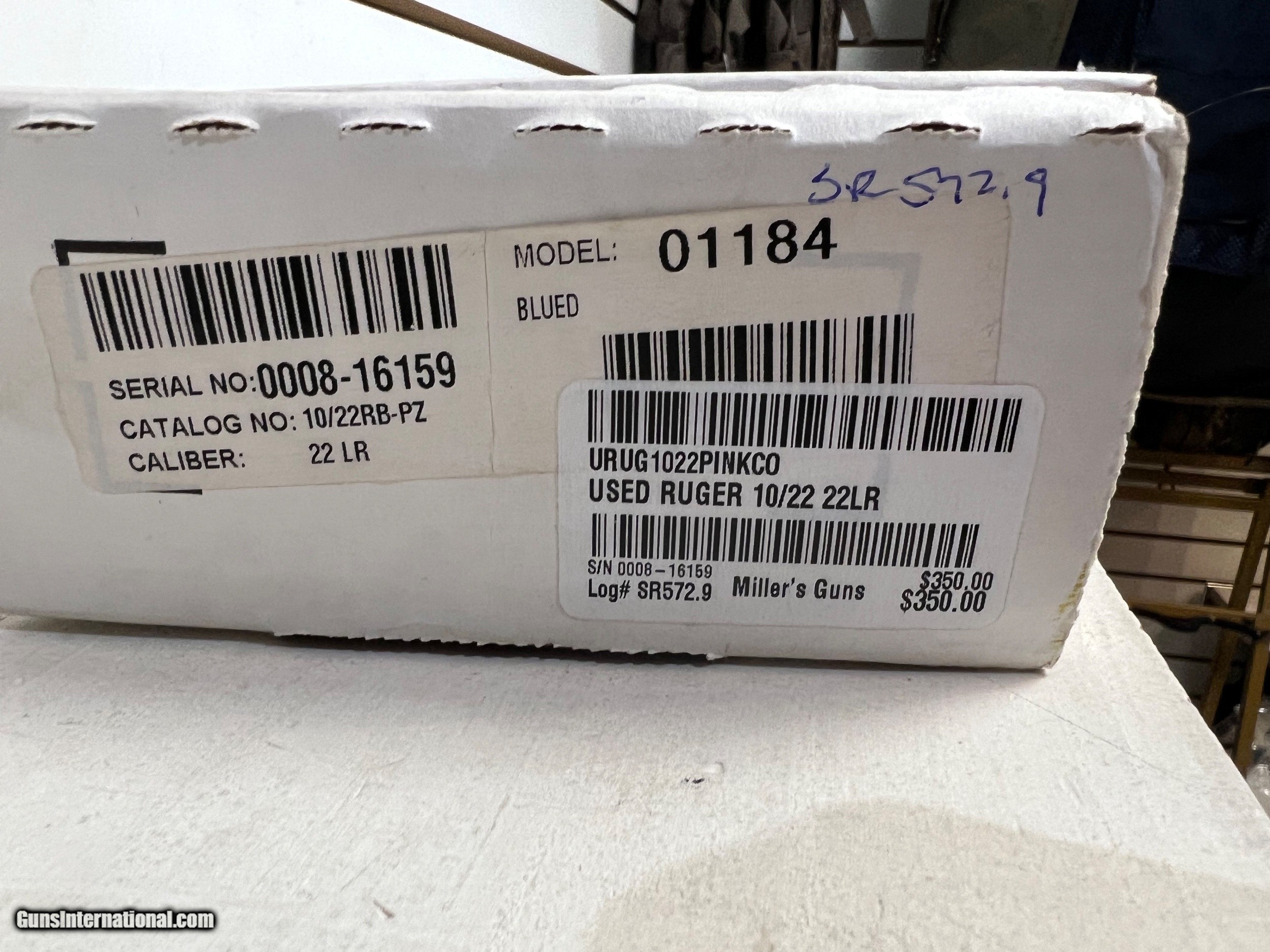 Description: used Ruger 10/22 Pink stock 18" bbl very good condition Buyer pays shipping Millers Gun Center Located in New Castle, Delaware "Home of TAX-Free shopping" No Credit Card Fees Send Gun international inquiry and then call 302-328-9747 to complete your purchase SOLD Serial Number: 0008-16159 |
