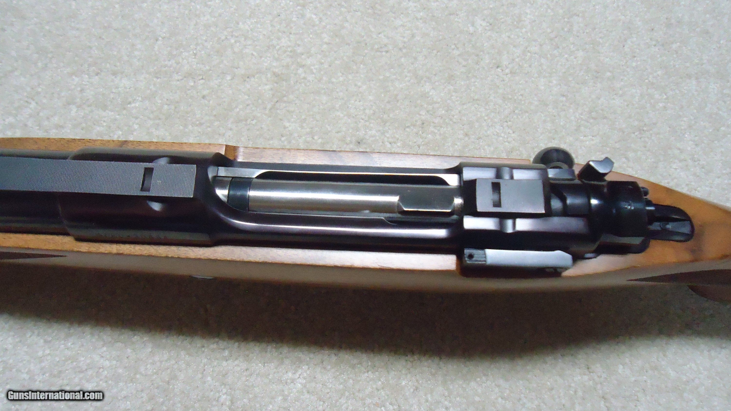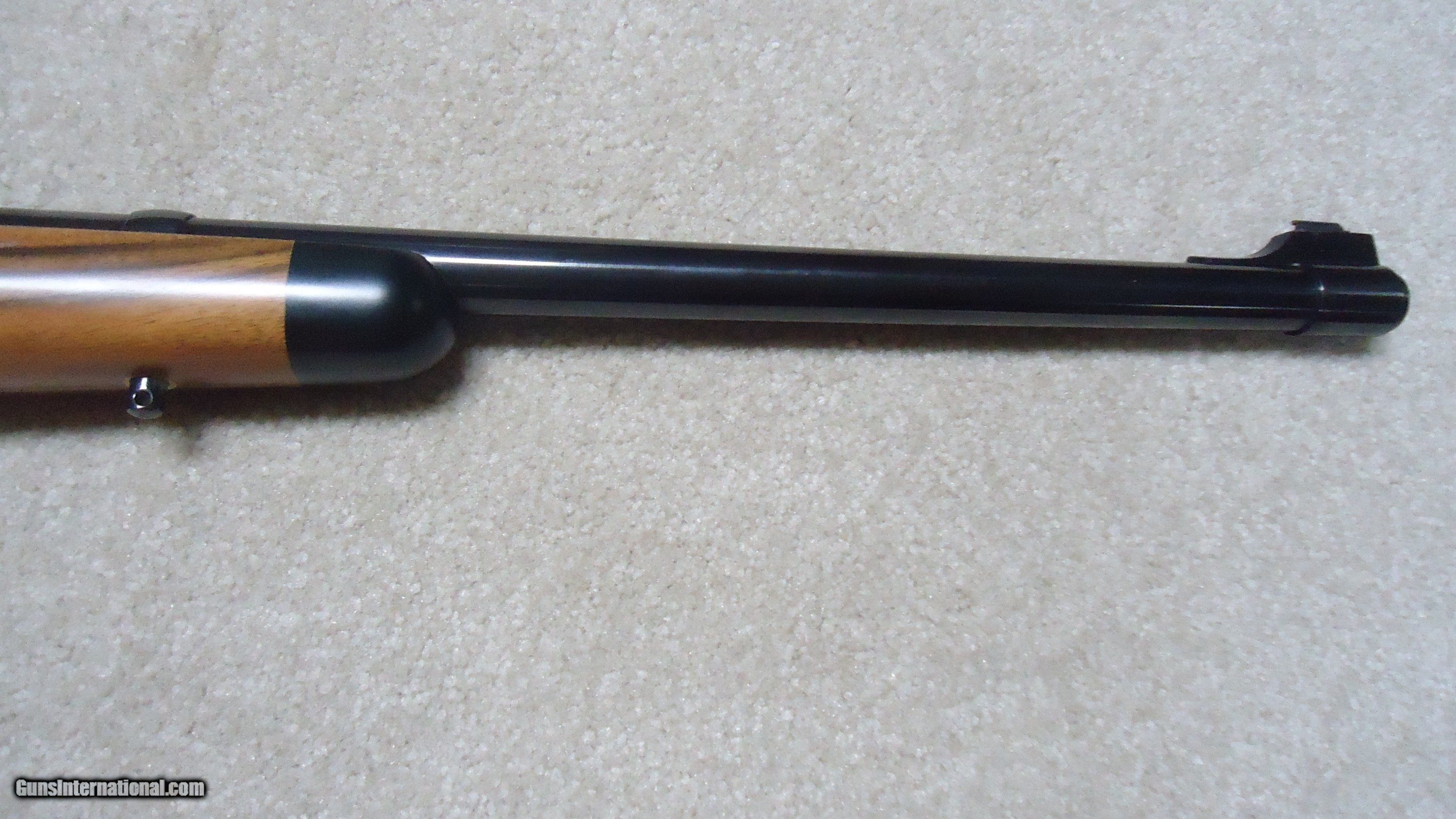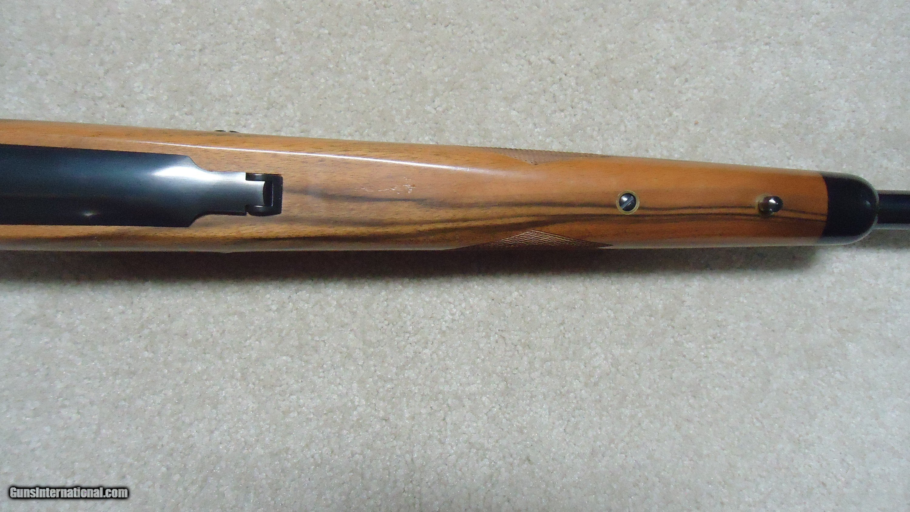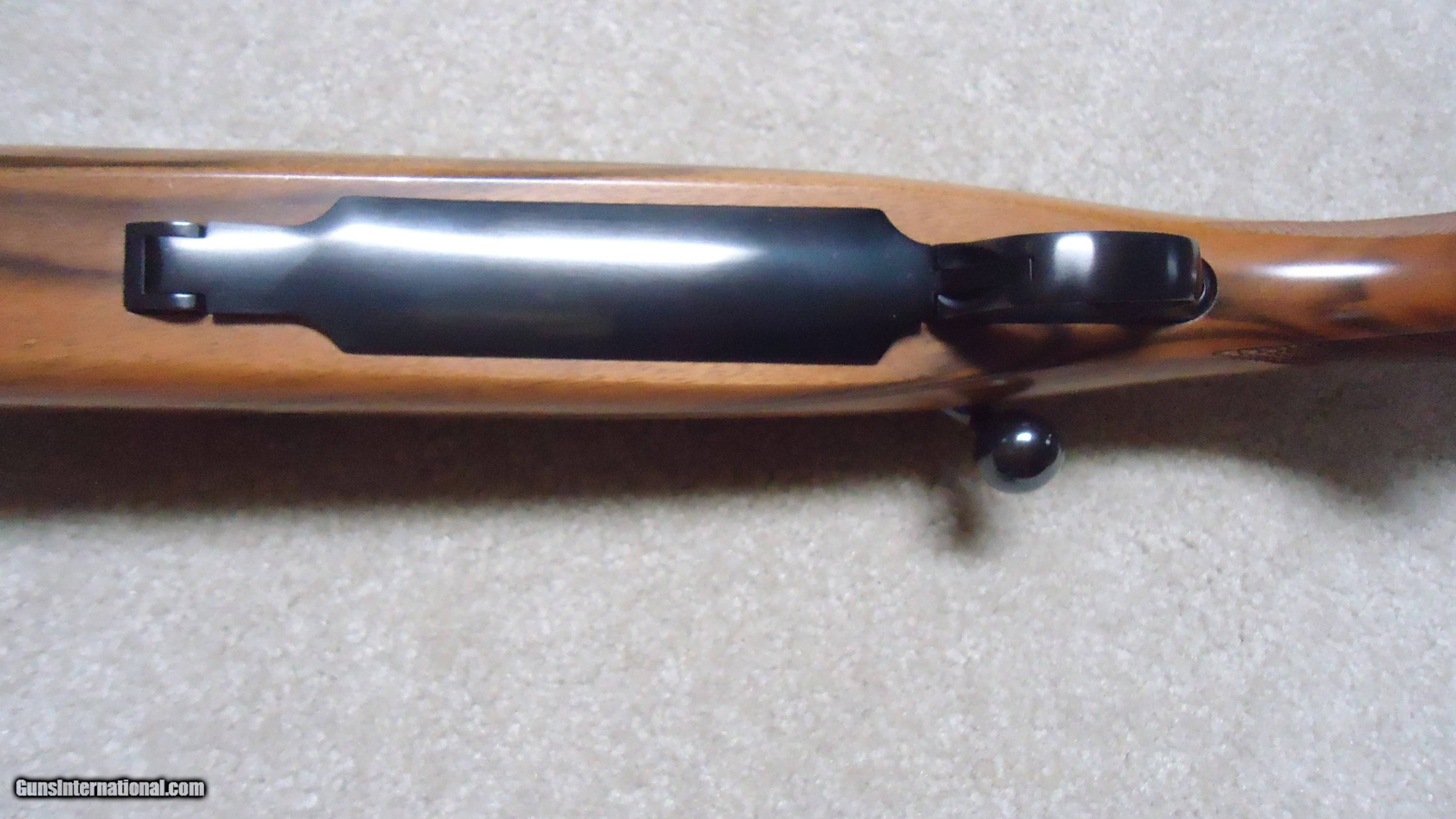 Description: GORGEOUS, CLASSIC RUGER MODEL 77 RSM .375 H&H MAGNUM AFRICAN RIFLE, #780-30XXX, MADE 1990s. These "Express" Ruger bolt actions are now long discontinued and are some of the finest looking big game rifles that are considered the equal of the classic pre-War British big bore rifles. Stocked in nicely figured English walnut (with straight grain in the wrist for strength) with black Ruger embossed butt pad, grip cap and ebony forend tip. The quareter-ribbed 24" barrel holds a three leaf barrel sight and is cut for standard Ruger scope rings. No unsightly barrel warning stamping about reading the owners manual... Weighs approx. 10 lbs as photographed without scope. Near new condition inside and out with the receiver blue starting to turn slightly plum- a Ruger hallmark. Truly a superb big game rifle at home any place and against any game on the planet! SOLD Rifle Caliber: .375 H&H Magnum Manufacturer: RUGER Model: M-77 RSM Serial Number: 780-30XXX Barrel Length: 24 Condition: EXCELLENT Bore Condition: EXCELLENT |