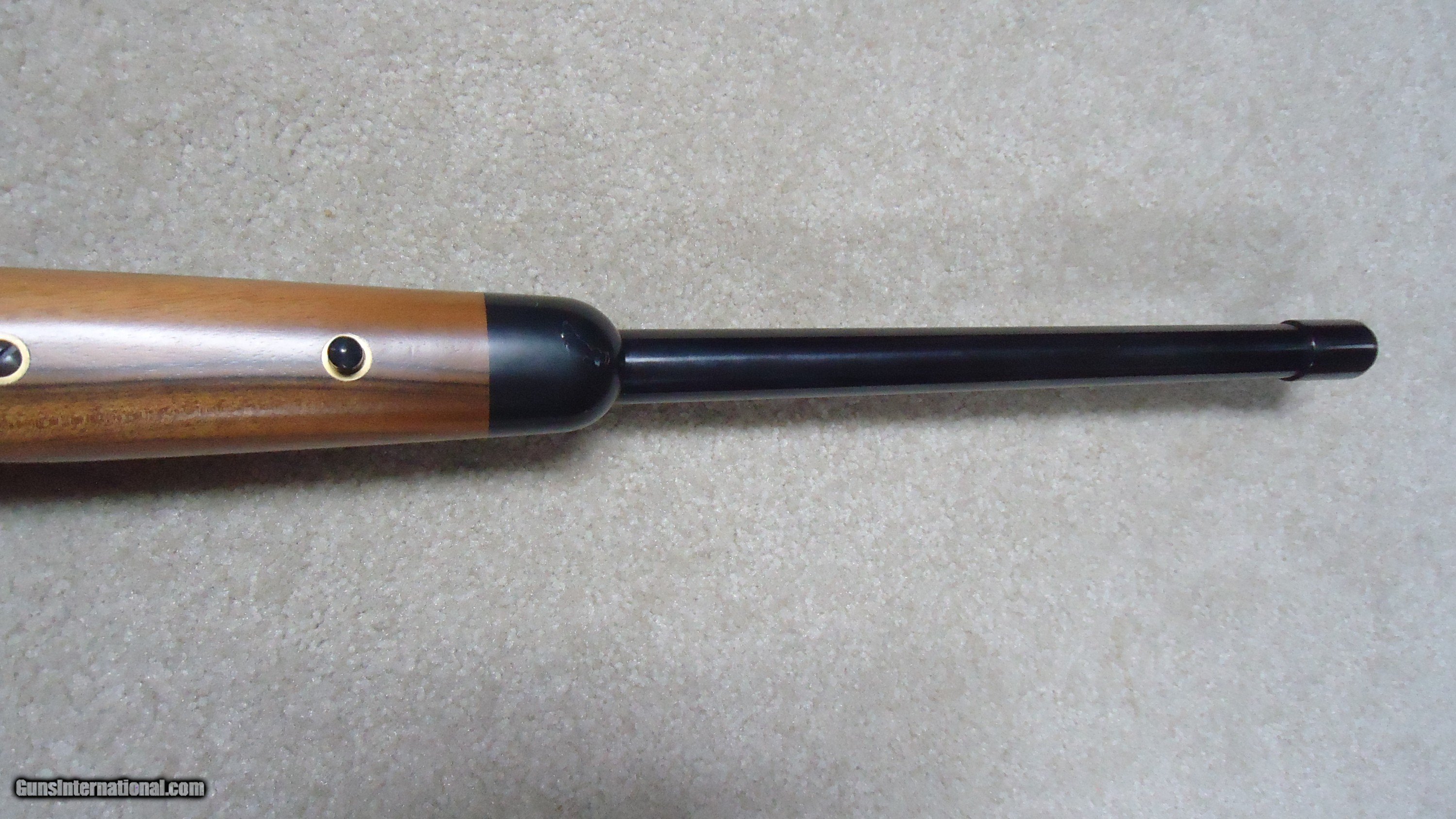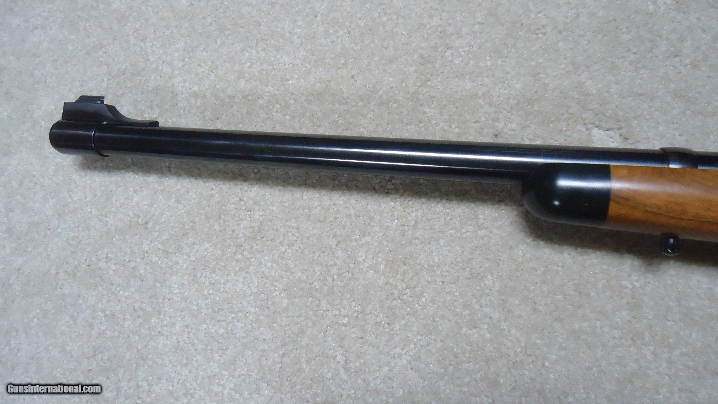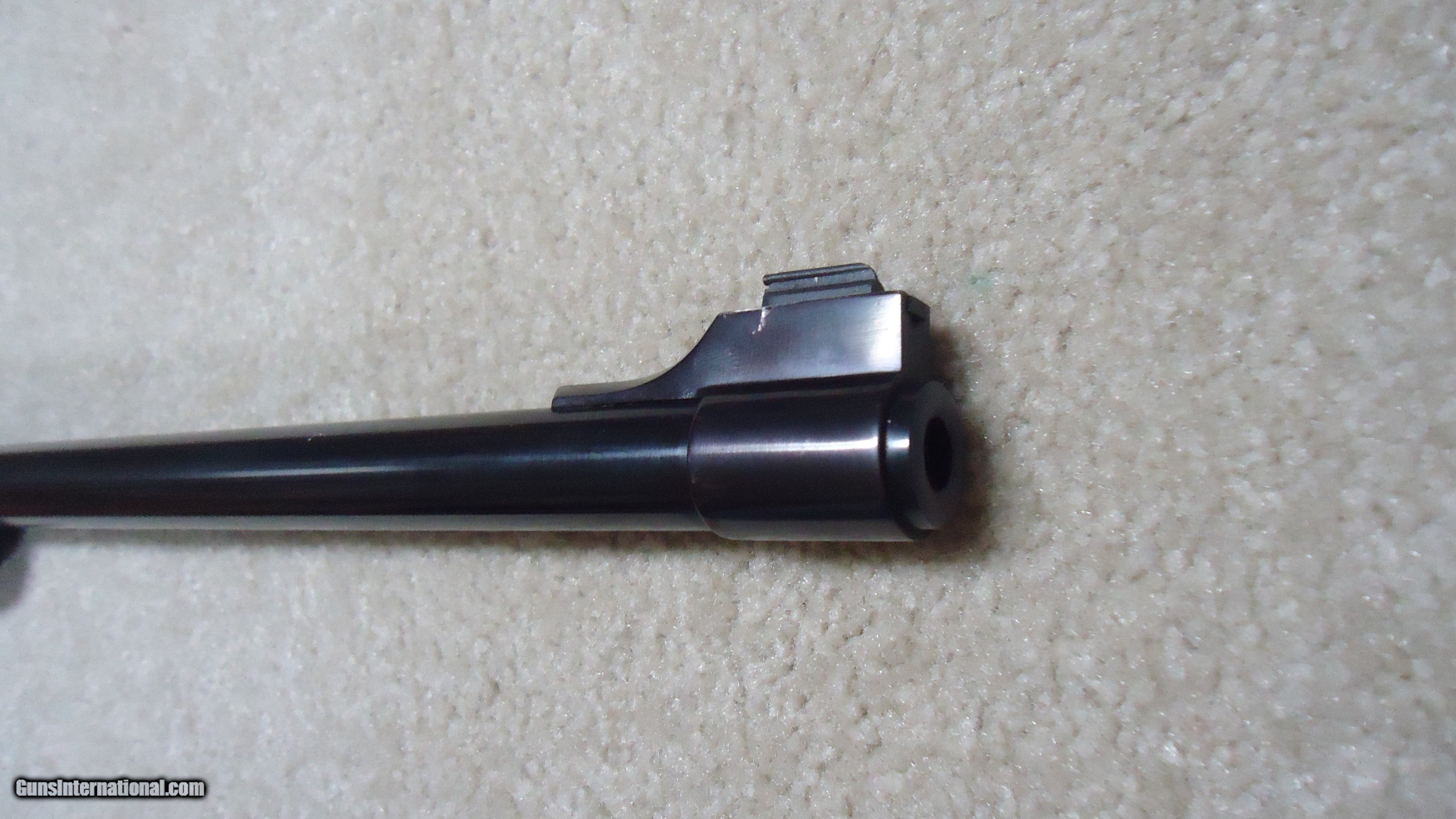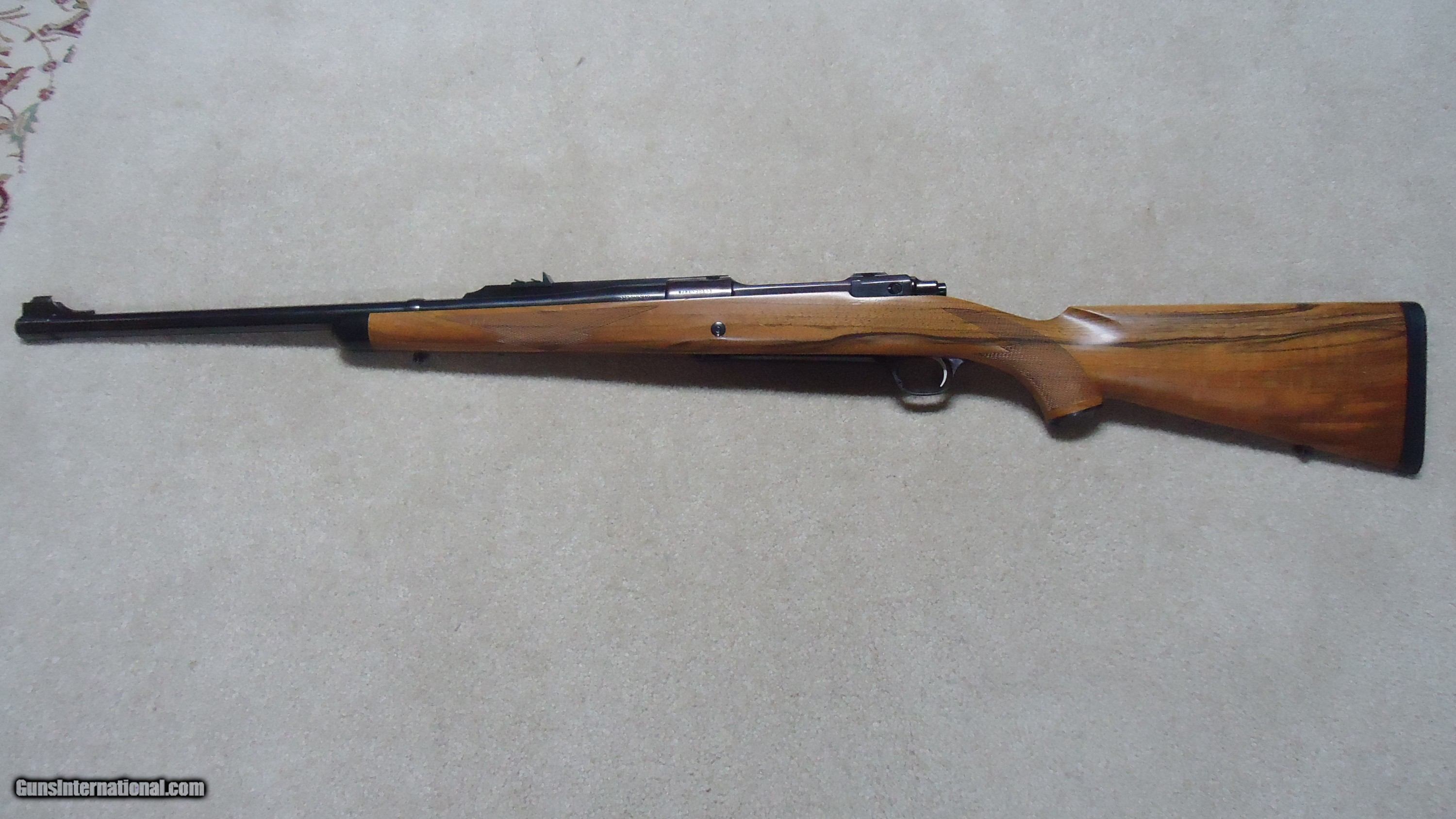 Description: GORGEOUS, CLASSIC RUGER MODEL 77 RSM .375 H&H MAGNUM AFRICAN RIFLE, #780-30XXX, MADE 1990s. These "Express" Ruger bolt actions are now long discontinued and are some of the finest looking big game rifles that are considered the equal of the classic pre-War British big bore rifles. Stocked in nicely figured English walnut (with straight grain in the wrist for strength) with black Ruger embossed butt pad, grip cap and ebony forend tip. The quareter-ribbed 24" barrel holds a three leaf barrel sight and is cut for standard Ruger scope rings. No unsightly barrel warning stamping about reading the owners manual... Weighs approx. 10 lbs as photographed without scope. Near new condition inside and out with the receiver blue starting to turn slightly plum- a Ruger hallmark. Truly a superb big game rifle at home any place and against any game on the planet! SOLD Rifle Caliber: .375 H&H Magnum Manufacturer: RUGER Model: M-77 RSM Serial Number: 780-30XXX Barrel Length: 24 Condition: EXCELLENT Bore Condition: EXCELLENT |