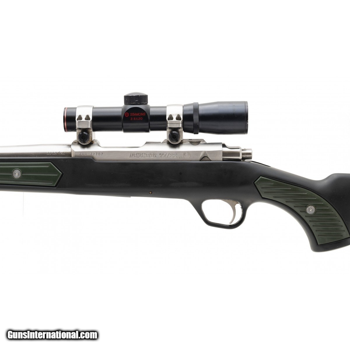 20"" Stainless barrel and receiver with desirable Zytel paddle stock. With Simmons 2.5x20 scope. Overall very good condition.