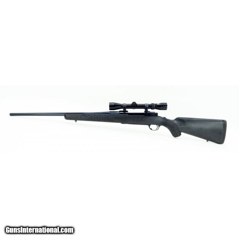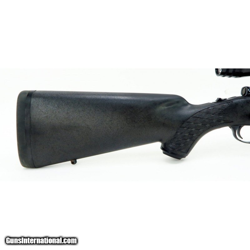 Description: "Ruger M77 .257 Roberts caliber rifle. Early model with tang safety, in very popular .257 Roberts caliber. Has synthetic stock and Redfield 2x7 scope. A great setup. SOLD |