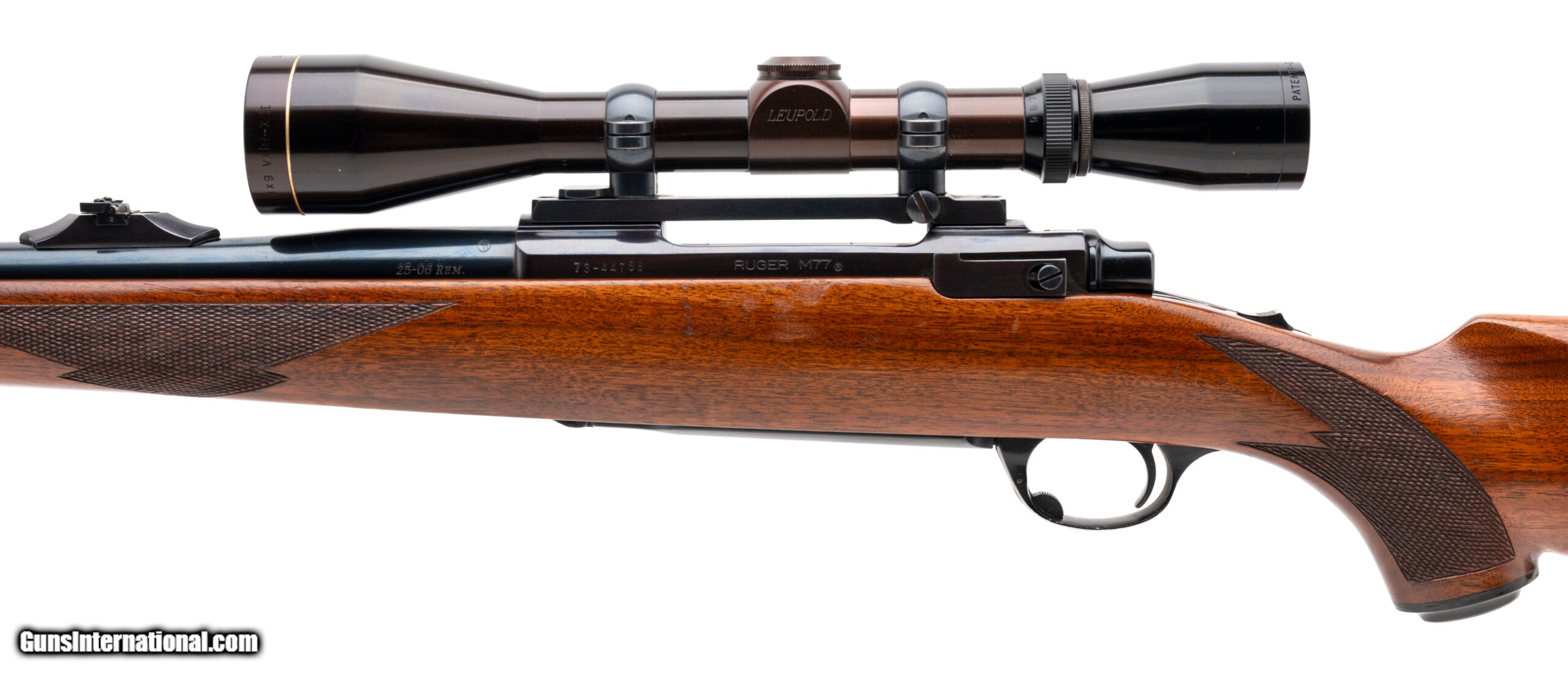 Description: "SN: 73-44758. Made in 1978, .25-06 Rem with a 24"" barrel. Bore is bright with excellent rifling. Bolt action rifle with a Leupold 3x9 Vari X II Scope. Original Finish is in excellent condition. Wood stock is in very good condition with minor handling wear on left side of the stock under the scope. Overall condition is very good. SOLD |