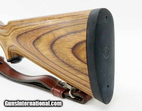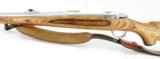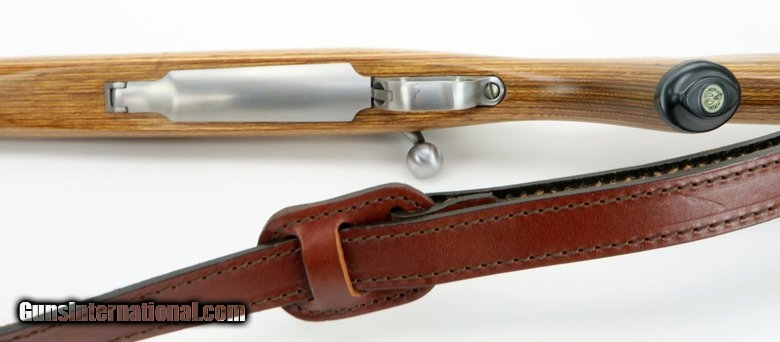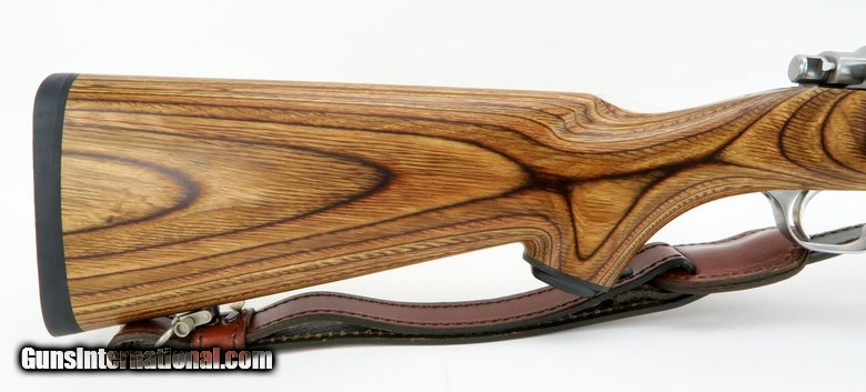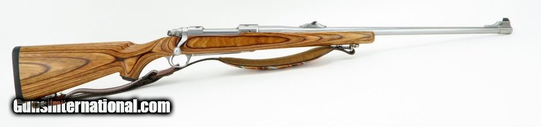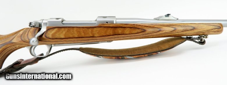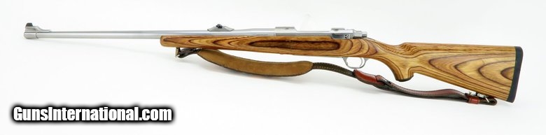 Description: Ruger M77 .338 Win Magnum caliber rifle. Stainless steel with laminated stock and iron sights. Excellent condition.