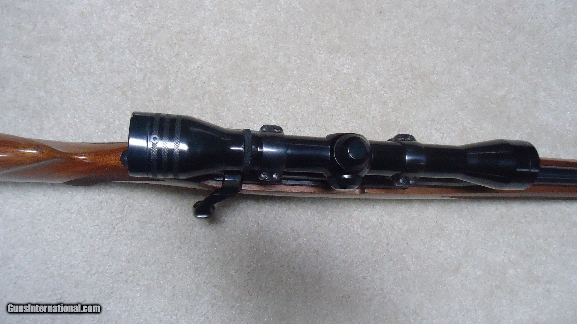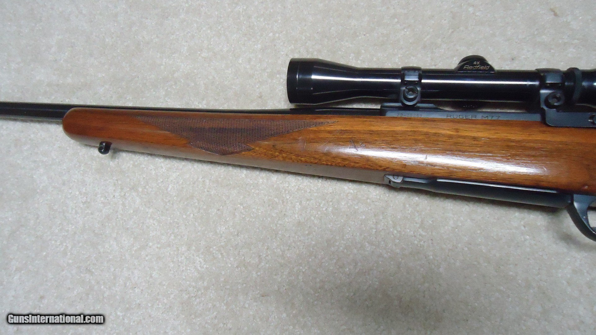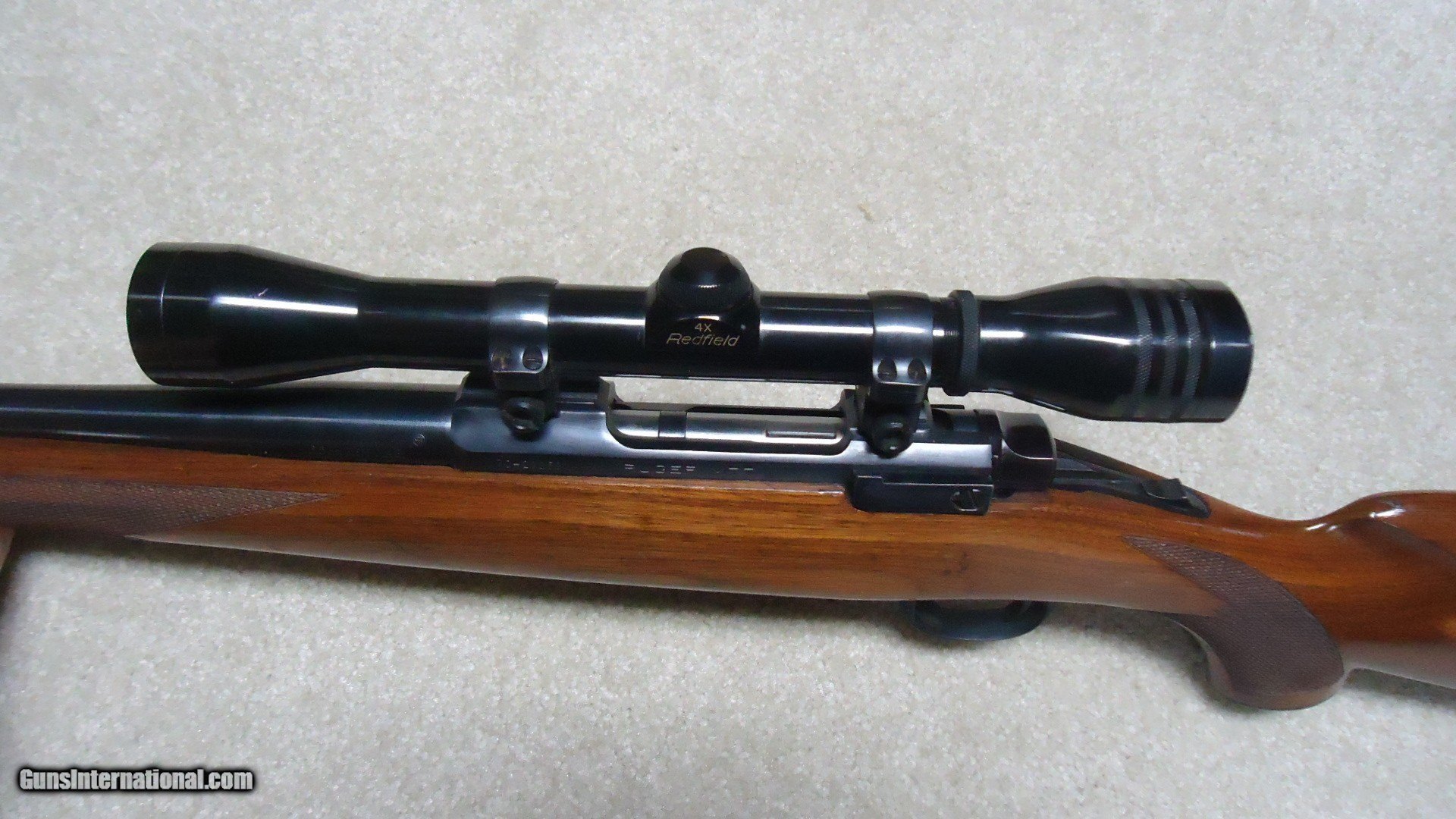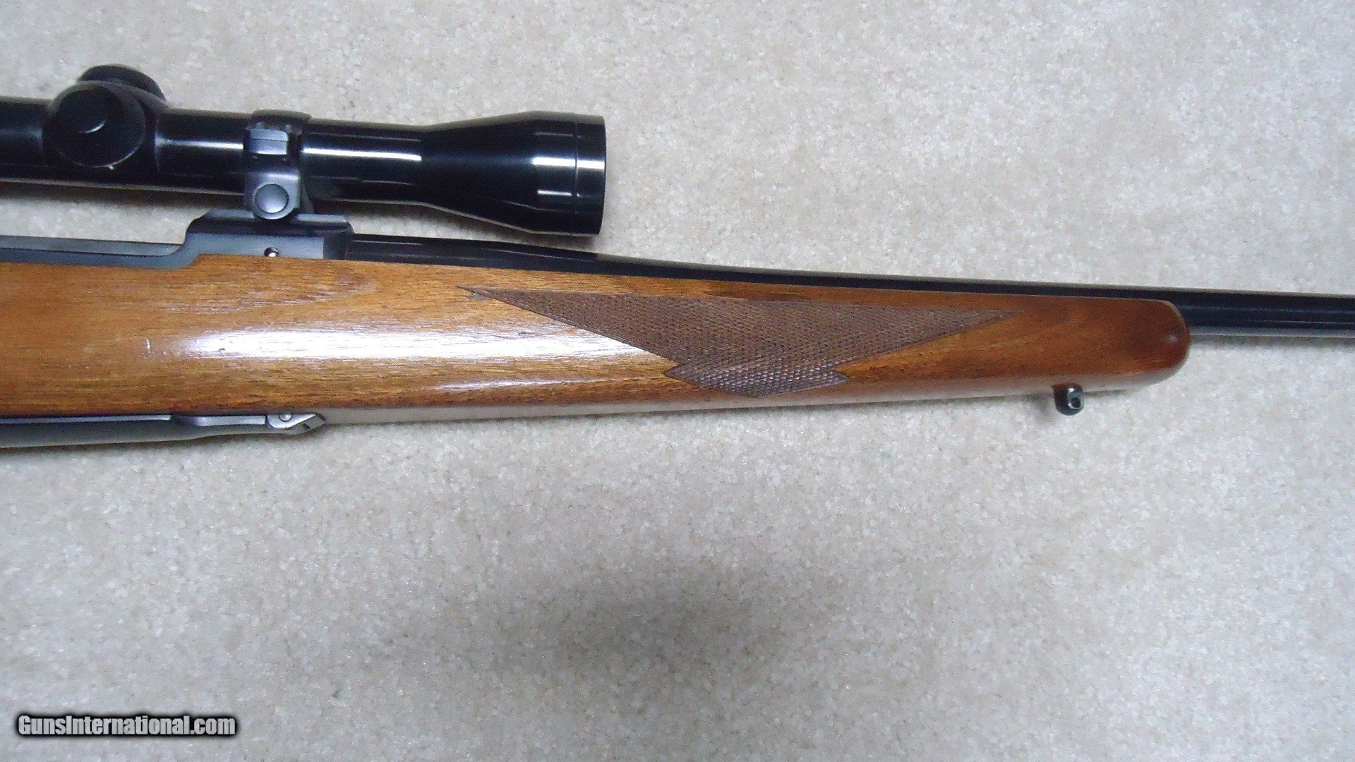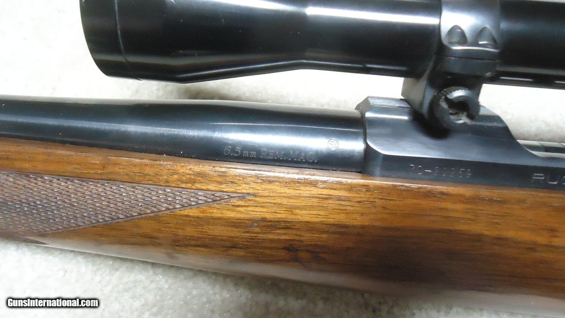 Description: EARLY MODEL 77 "FLATBOLT" SHORT ACTION IN SUPER RARE 6.5 REM. MAG. CALIBER, #70-20XXX, MADE SECOND YEAR OF PRODUCTION IN 1970. A classic 54 year old original style Model 77 bolt rifle in one of the more interesting and scarce calibers. The short action M-77 flatbolt was only made from 1968-1972. During that time this would have been a limited production caliber as most shooters wanted the more standard calibers like .308 WCF and .243 WCF etc. This one is also mounted in Ruger factory rings (no provision for barrel sights) with a Redfield Widefield 4X scope with excellent optics. The stock shows only very minor/light handling marks with tiny area of light chipping along the edge of the original Ruger red rubber pad on sht left side. The action and barrel retain exc. blue with only a spot or two of light wear. there is some small scratching of the finish on the bottom of the trigger guard with the floor plate retaining nearly all the blue. Tight action, exc. bright bore. Not many of these were produced. SOLD Curio/Relic: Yes Rifle Caliber: 6.5mm Remington Magnum Manufacturer: RUGER Model: M-77 FLATBOLT Serial Number: 70-20XXX Barrel Length: 22 Condition: FINE+ Bore Condition: EXCELLENT |