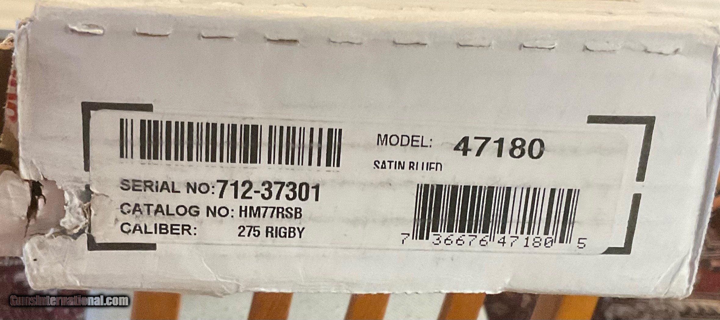 Description: SOLD, AWAITING PAYMENT /// One of 250 Ruger model 77's in 275 Rigby. As new in box, looks unfired. $1998 plus $55 insured shipping. no layaway available on this one, no credit cards and no trades. SOLD |
