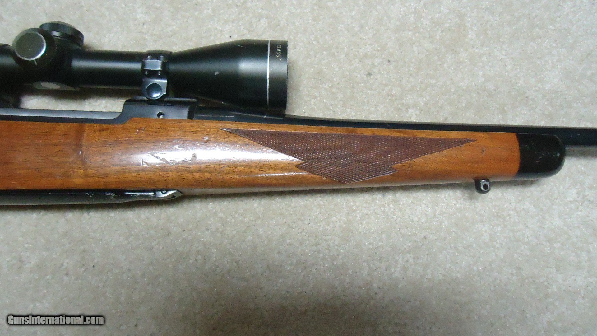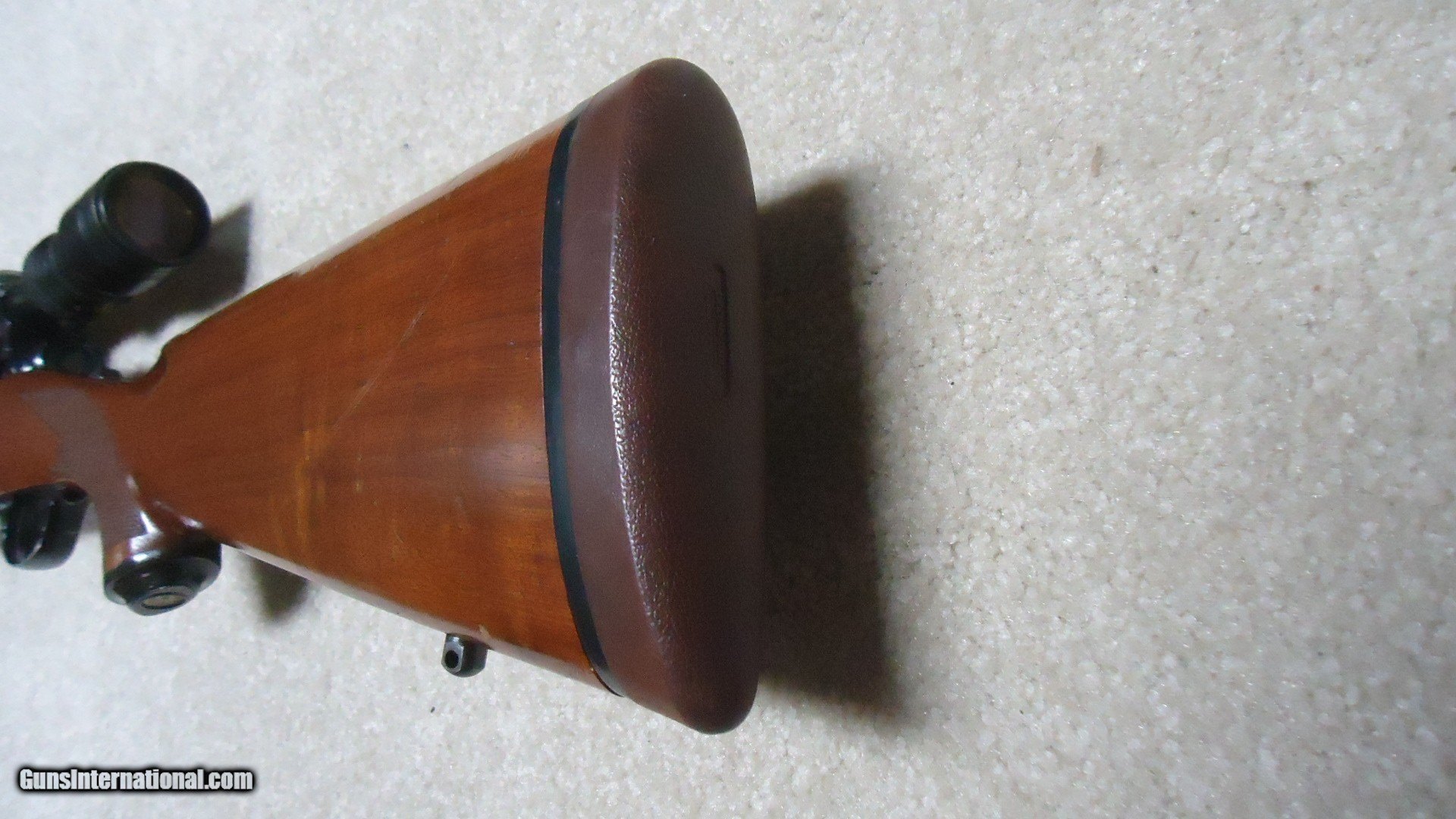 Description: MODEL 77 "ULTRA LIGHT" IN .270 WIN. CALIBER, #79-81XXX, MADE 1985. This is the classic Model 77 with tang mountted sliding safety, walnut stock with ebony forend tip and blued steel. This one is outfitted with a Tasco 3-9X scope with clear optics set in Ruger rings. It is also fitted with a brown Pachmayr Decelerator solid recoil pad (length of pull correct 13 1/4"). This rifle has seen some normal use- it came out of here in Montana. The stock shows only light handling marks and there are some scratches to the finish of the bottom of the floor plate and trigger guard, very light blue wear on the 20" barrel and some on the bolt handle. Nylon padded sling included. Overall an attractive and scarce model. I'm sure this one has taken its share of big game here in Montana and ready for more adventures! SOLD Rifle Caliber: .270 Winchester Manufacturer: RUGER Model: MODEL 77 ULTRA LIGHT Serial Number: 79-81XXX Barrel Length: 20 Condition: VG |