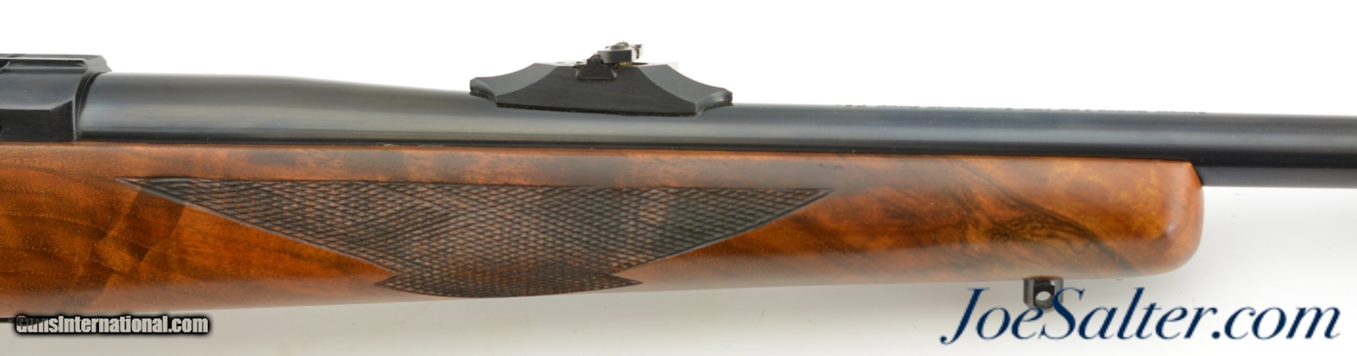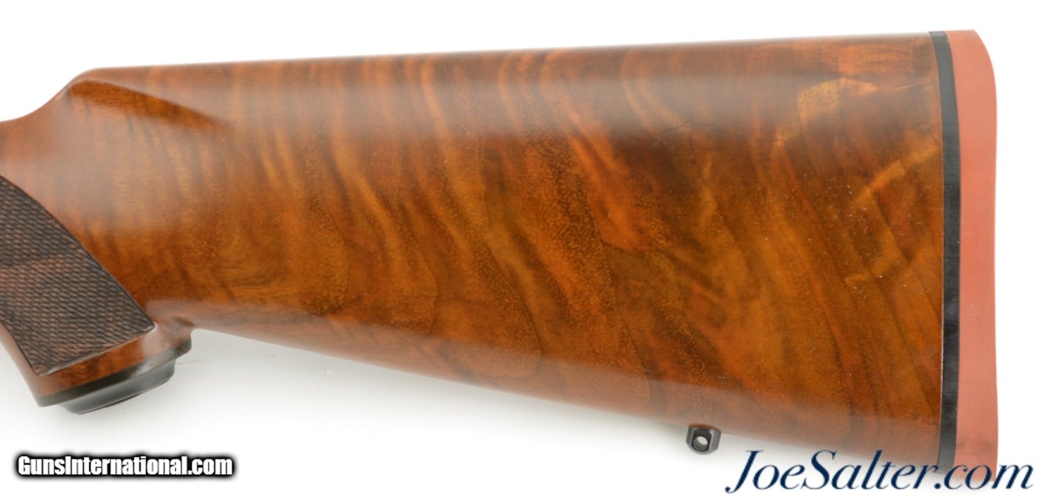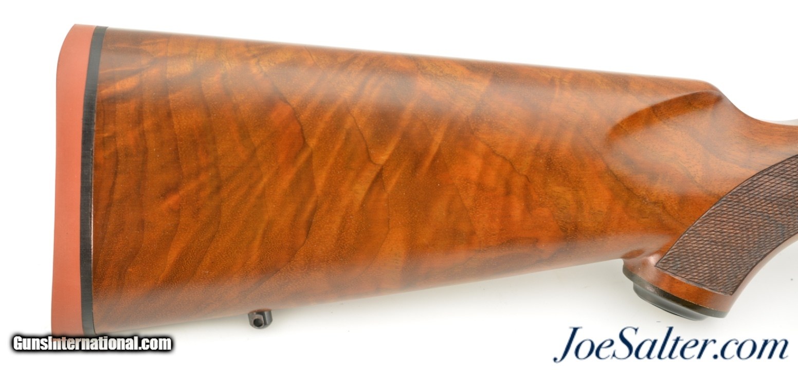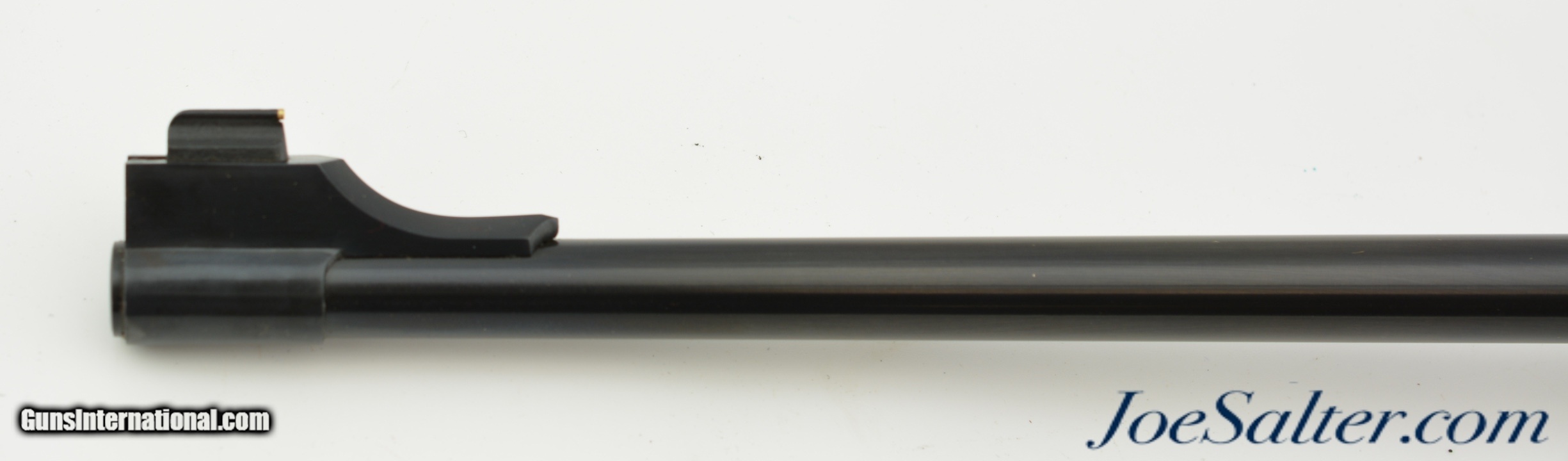 Description: Serial #70-35383, .30-06, 22" barrel with an excellent, bright bore. This is a 1974-made rifle that retains practically all of the original blue finish on the metal, with the exception of the hollow bolt handle which has some minor oxidation on the interior. The beautifully figured, checkered walnut stock has virtually no wear or handling marks, however, there is a single short crack on the left side at the tip of the tang (See Photo). The rifle is outfitted with a red Ruger recoil pad. The rifle is housed in the original, numbered Ruger cardboard shipping box with scope rings, and is also accompanied by a 2022-dated Ruger factory letter that lists a shipping date of January, 1974 to Jerry’s Sport Center of Olyphant, PA. This is a handsome, early Model 77, in nearly excellent condition, and would make a stellar addition to any collection. FFL or C&R SOLD Curio/Relic: Yes |