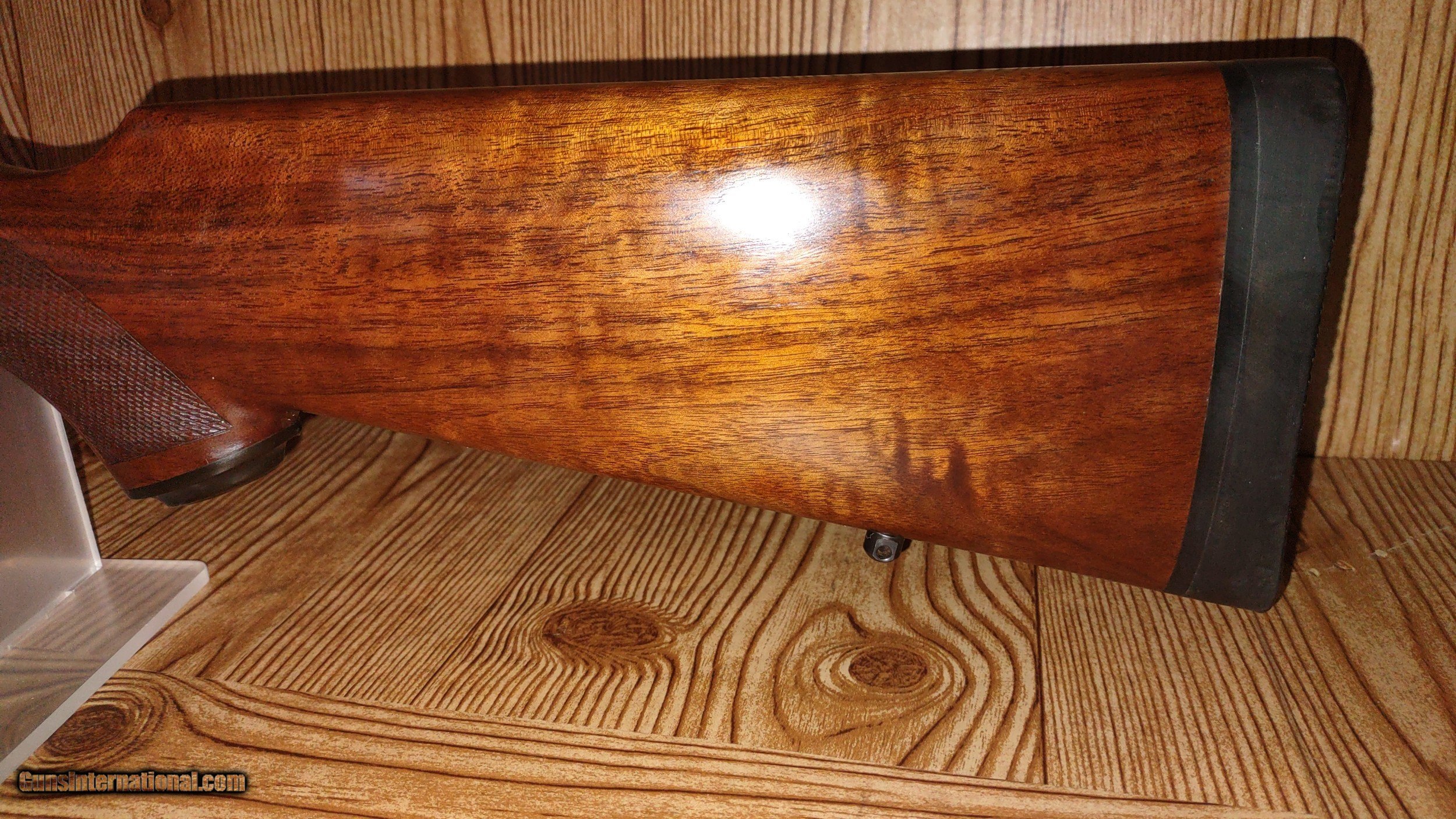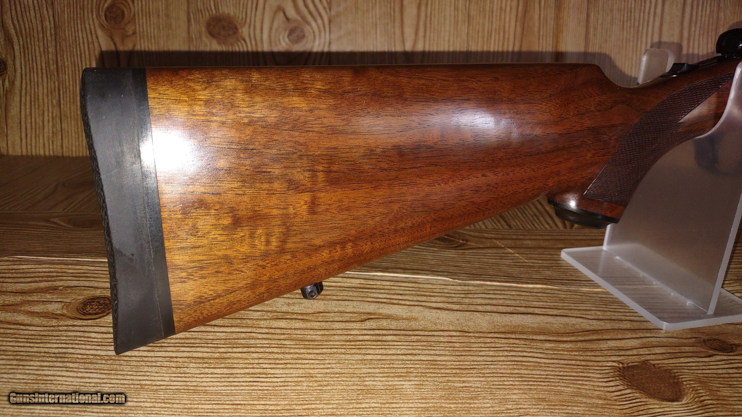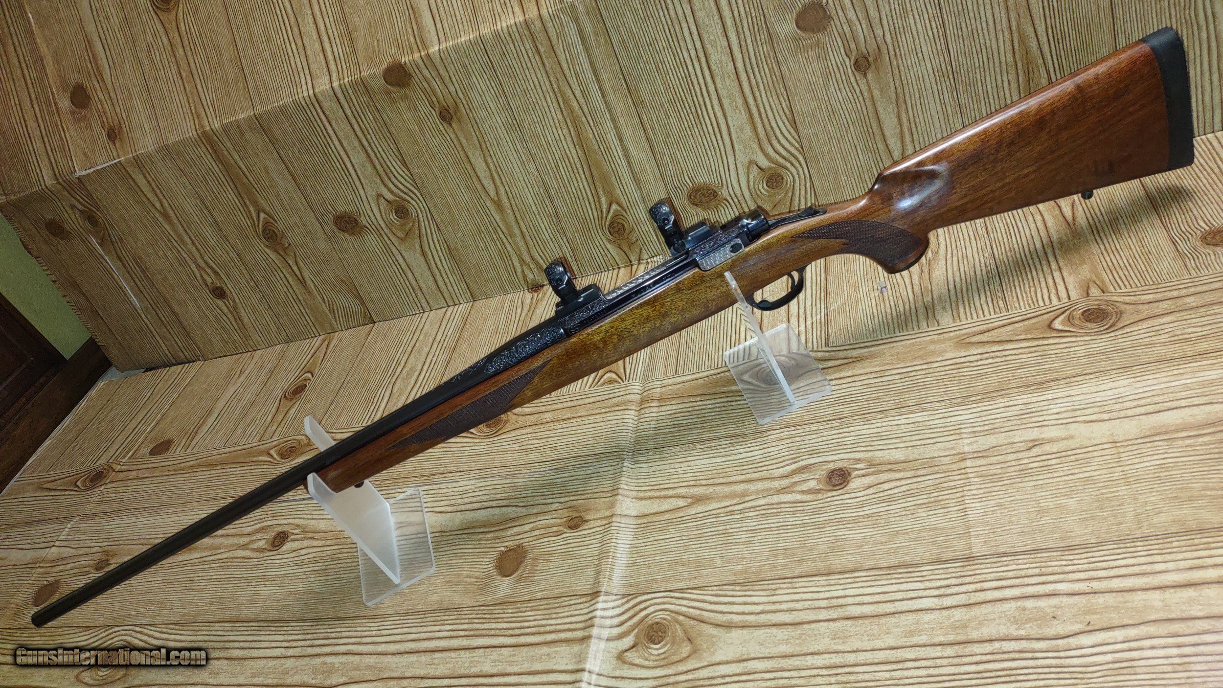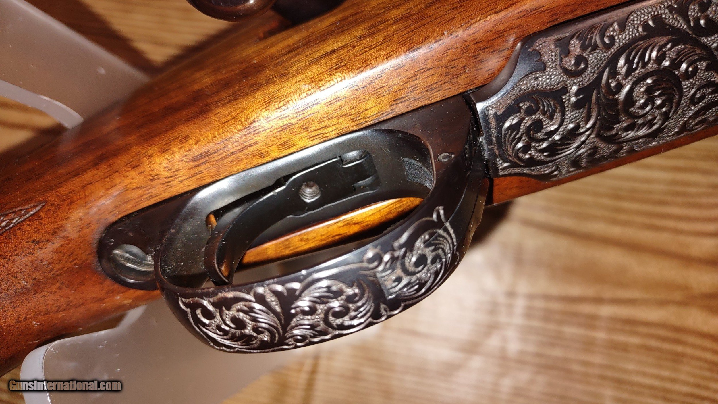 Description: We’re proud to offer an exquisitely engraved Ruger M77 chambered in 30.06 in excellent condition. Built on a 1978 Ruger M77 receiver and barrel chamber in 30.06 The receiver and barrel exhibit a gloss black bluing with right and left side engraved receiver and barrel. Engraved with a deep rich scroll pattern. The bore rates as excellent. Barrel is 22 inches. Jeweled bolt and bolt release. 1 inch off-set scope mounts present with engraved ring caps. An exquisitely engraved hinged floorplate and trigger guard with a release inside trigger guard. An adjustable trigger present. Straight grain walnut stock figuring with pistol grip and forearm checking with black decelerator recoil pad. A hand rubbed satin finish. It's hard to find such high quality Ruger M77' and will make fine addition to any collection and incite envy from your hunting buddies. Thank you ed. Ships in new hard case fully insured CC fee 3.5. Thank you Ed SOLD Rifle Caliber: .30-06 Springfield |