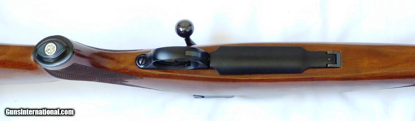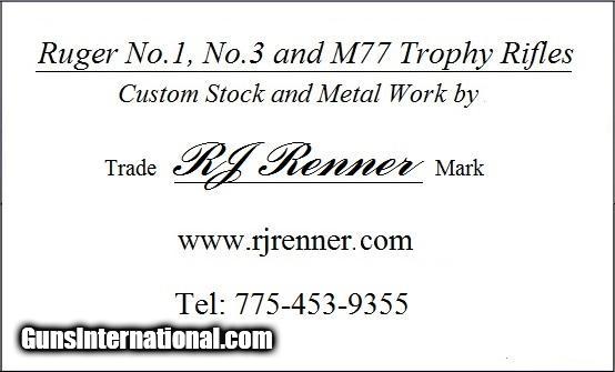 Description: PRICE REDUCED! Ruger Tang Safety M77 RSI .22-250 This is a rather rare Ruger M77 not only in the sense of the international styling, but also in the condition for its age and the rare RSI calibre - .22-250 Remington. With a Tang Safety and barrel of 18½ inches, this Gunsafe Queen is in like-new condition with only a very few faint handling marks. It may be that it has fired a few rounds but it’s difficult to tell as it appears to be unfired. Ruger scope rings are included. Price is now $1300, but open to reasonable offers. Additional close-up photos are available to serious inquiries. Please call for more info - 775-453-9355 SOLD |