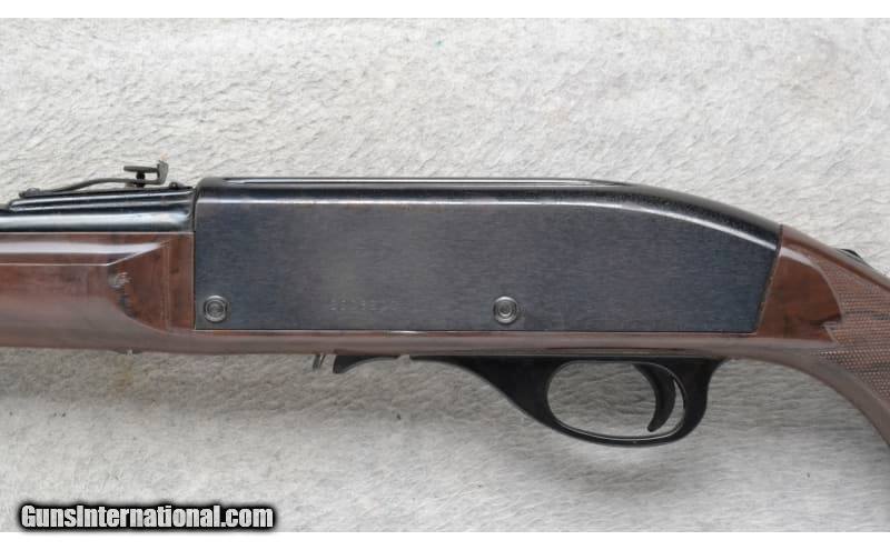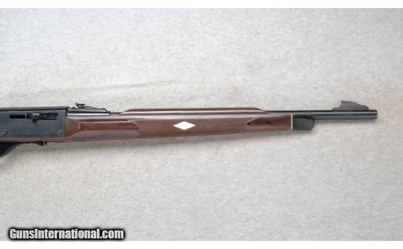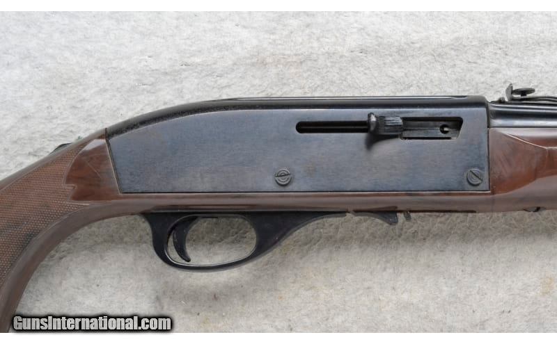 Description: This Remington Model Nylon 77 is a right hand semi-auto rifle in .22 Long Rifle Cal. Only. It has a 19.5 inch barrel. A blade front sight and an adjustable notch middle sight. It has an integral scope mount base. The butt stock is a checkered grip brown nylon pistol grip with a black cap. The forearm is a checkered grip brown nylon with a black tip. .22 Long Rifle SOLD Chambers: Detachable Magazine. Metal Condition: Has a lot of light freckling. Wood Condition: The stock on this gun has some light handling/use marks. Bore Condition: Very Good. Barrels: 19.5 inch. Stock Dimensions: LOP 13 5/8 inches. Fore End: Checkered grip brown nylon with a black tip and white diamond. Butt Pad: Remington grooved black plate. Weight: 3 lb. 12 oz. Sights: Blade front. Adjustable notch middle. Integral scope mount base. Item Location: Richfield, WI |
