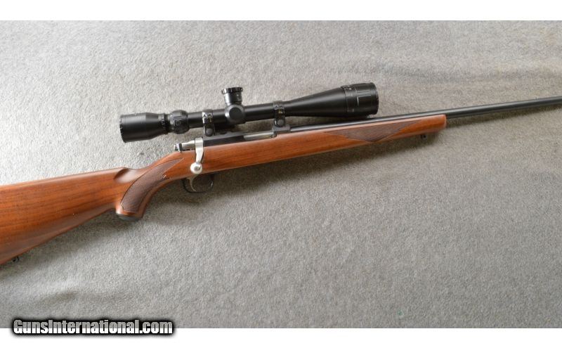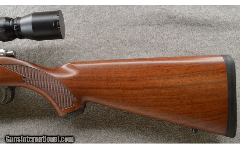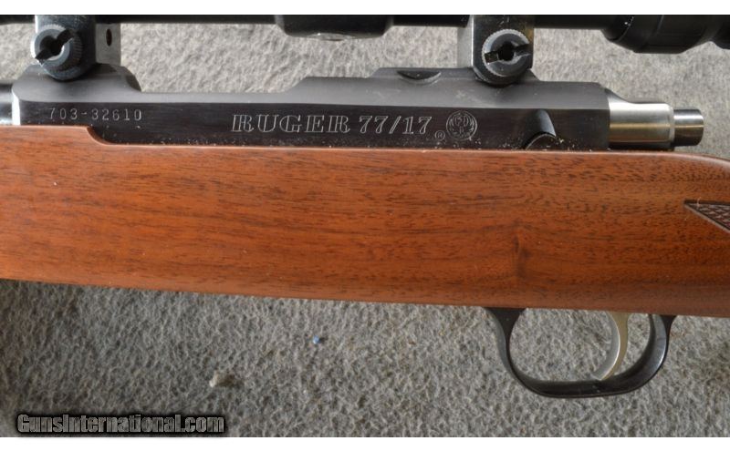 Description: This is a new looking Ruger 77/17 rifle in .17 HMR. The rifle has a very nice walnut stock with a checkered pistol grip with a grip cap and sling studs. The barrel is a 22 inch blue without sights. The rifle is topped with a BSA Sweet 17 6-18X40 AO rifle scope. This nice rifle looks to have been fired very little. Sorry no mag. SOLD Caliber Info: .17 HMR. Chambers: Bolt action repeater. Metal Condition: Excellent. Wood Condition: Excellent. Bore Condition: Bright and shiny. Barrels: 22 inch blue. Triggers: SIngle silver color. Stock: Very nice walnut with a checkered pistol grip, a grip cap and sling stud. Stock Dimensions: 13 1/2 inch LOP. Fore End: Matching checkered walnut with a sling stud. Butt Pad: Ruger black rubber butt pad. Weight: 7 Lbs. 13 Oz as pictured with the scope. Sights: BSA Sweet 17, 6-18X40 AO rifle scope Extras: Comes with the rings and scope but no mag. Item Location: Owatonna, MN |