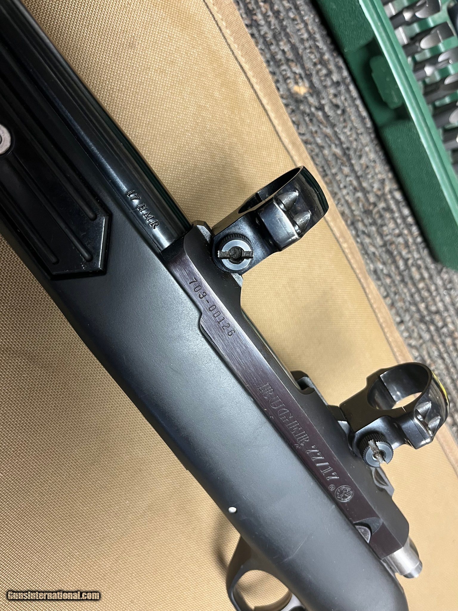 Description: Guns Listing ID: 1346870 Ruger 77/17 with Zytel stock. 17HMR. Has Ruger rings. Someone has replaced the original sling holders with swivel studs and done a really nice job. Gun has been hunted with and has honest wear. Solid gun with a great trigger SOLD Manufacturer: RUGER Model: 77/17 Caliber Info: .17 HMR Condition: Used - Non-Certified Barrels: 22 BARREL Finish: BLACK |