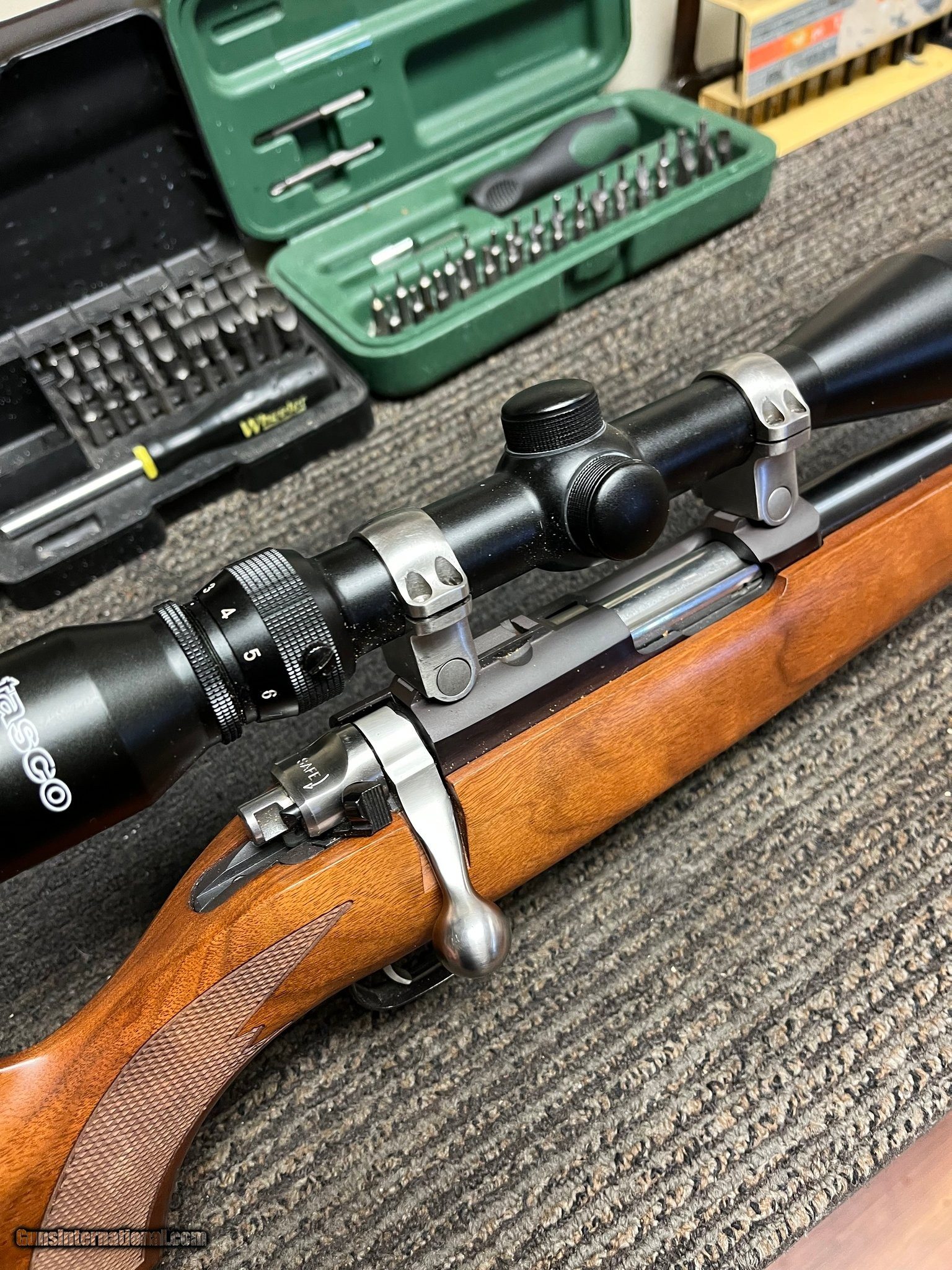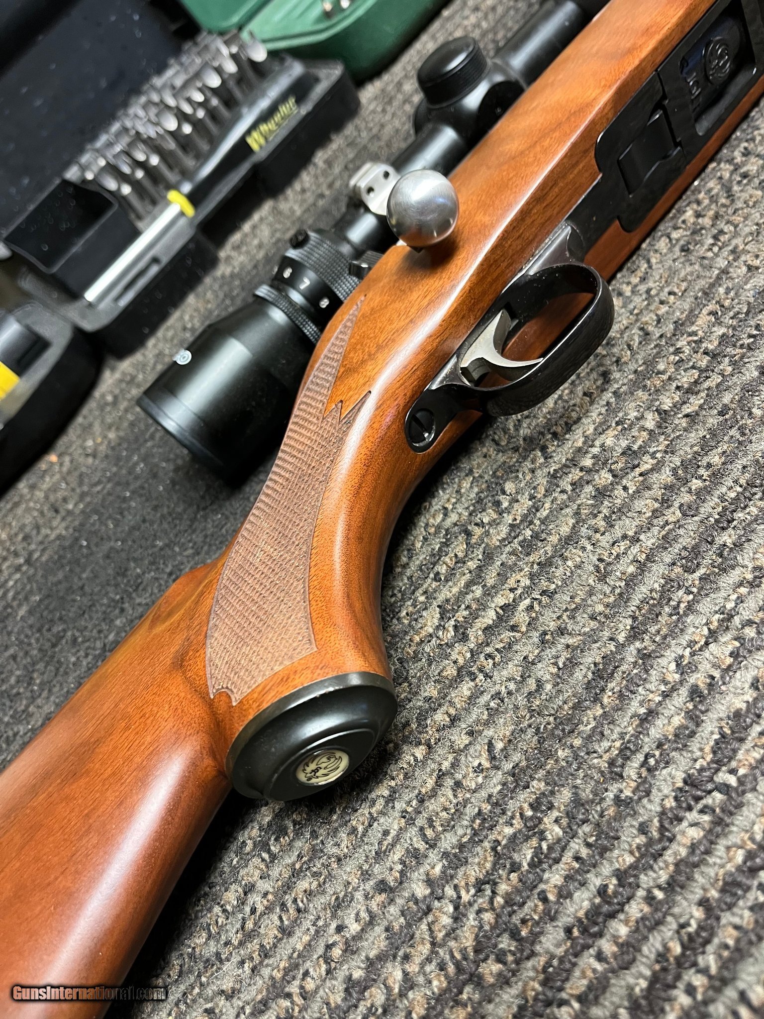 Description: Guns Listing ID: 555377 Ruger 77/17 17 HMR bolt action rifle. Mfg 2006. Checkered walnut stock. Blued finish with silver Ruger rings and Tasco 3-9x40 scope. Gun is in great condition. SOLD Manufacturer: RUGER Model: 77/17 Caliber Info: .17 HMR Condition: Used - Non-Certified Barrels: 22 BARREL Action: BOLT ACTION Finish: blued |