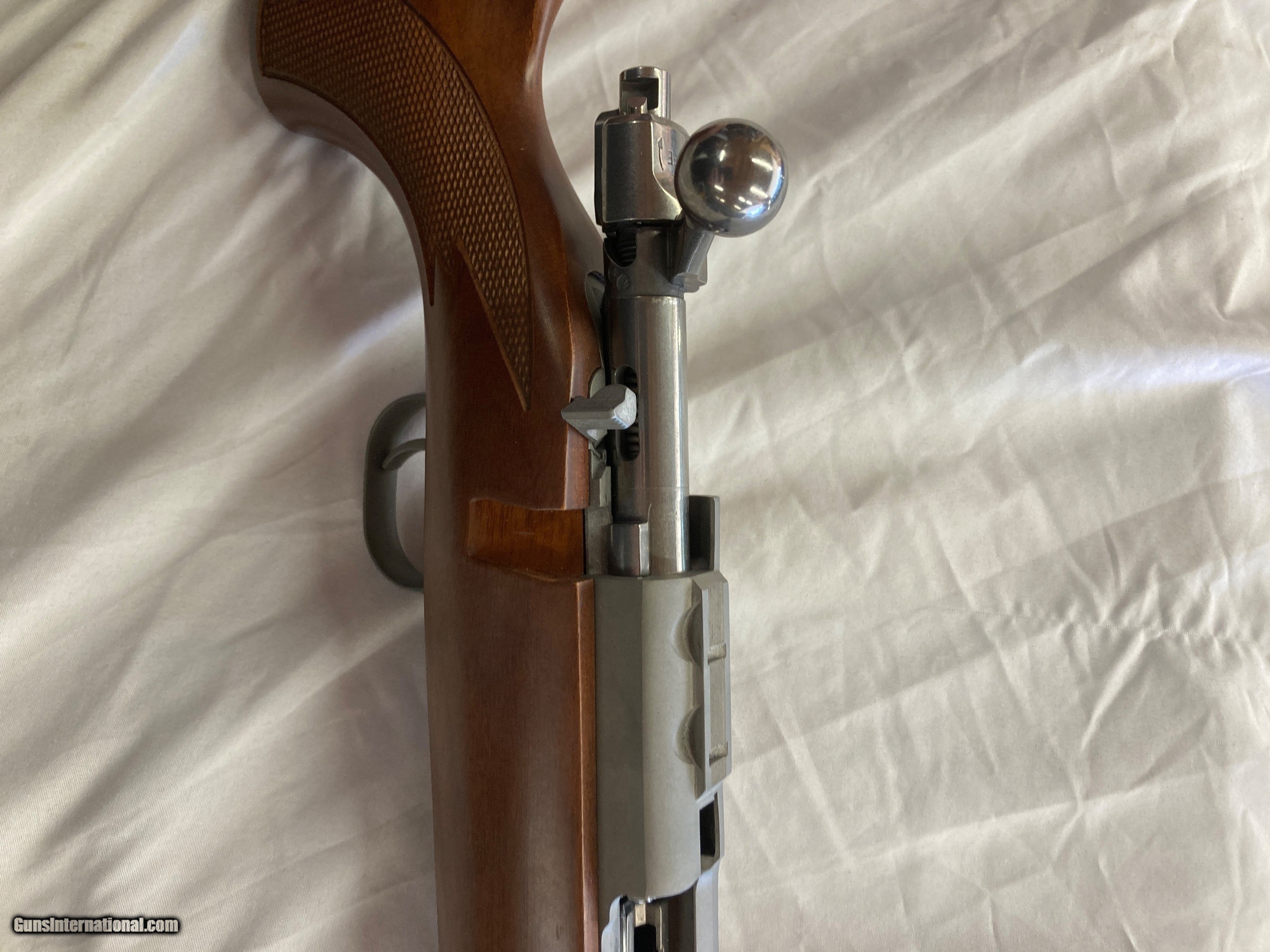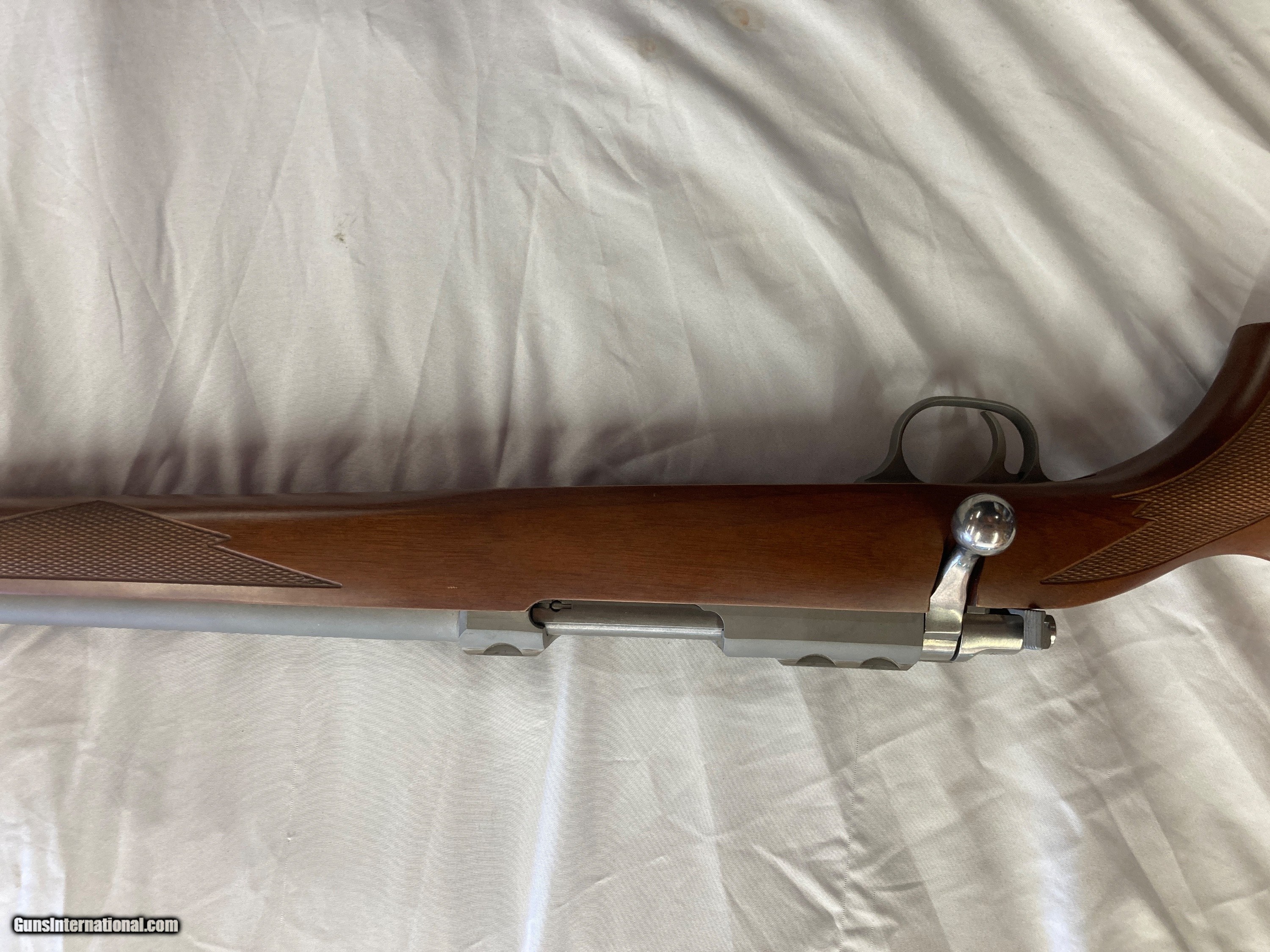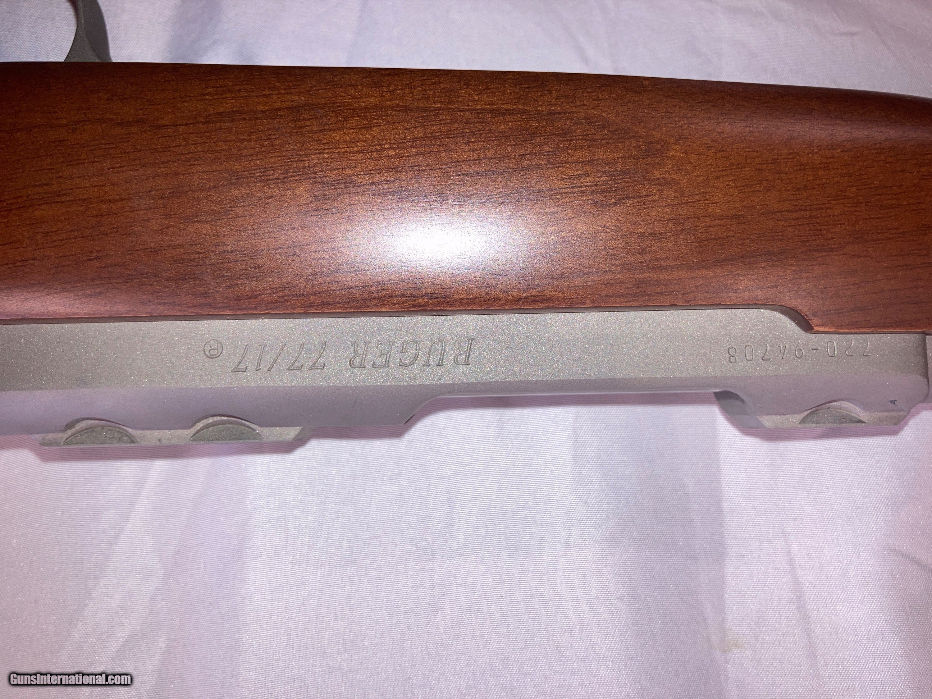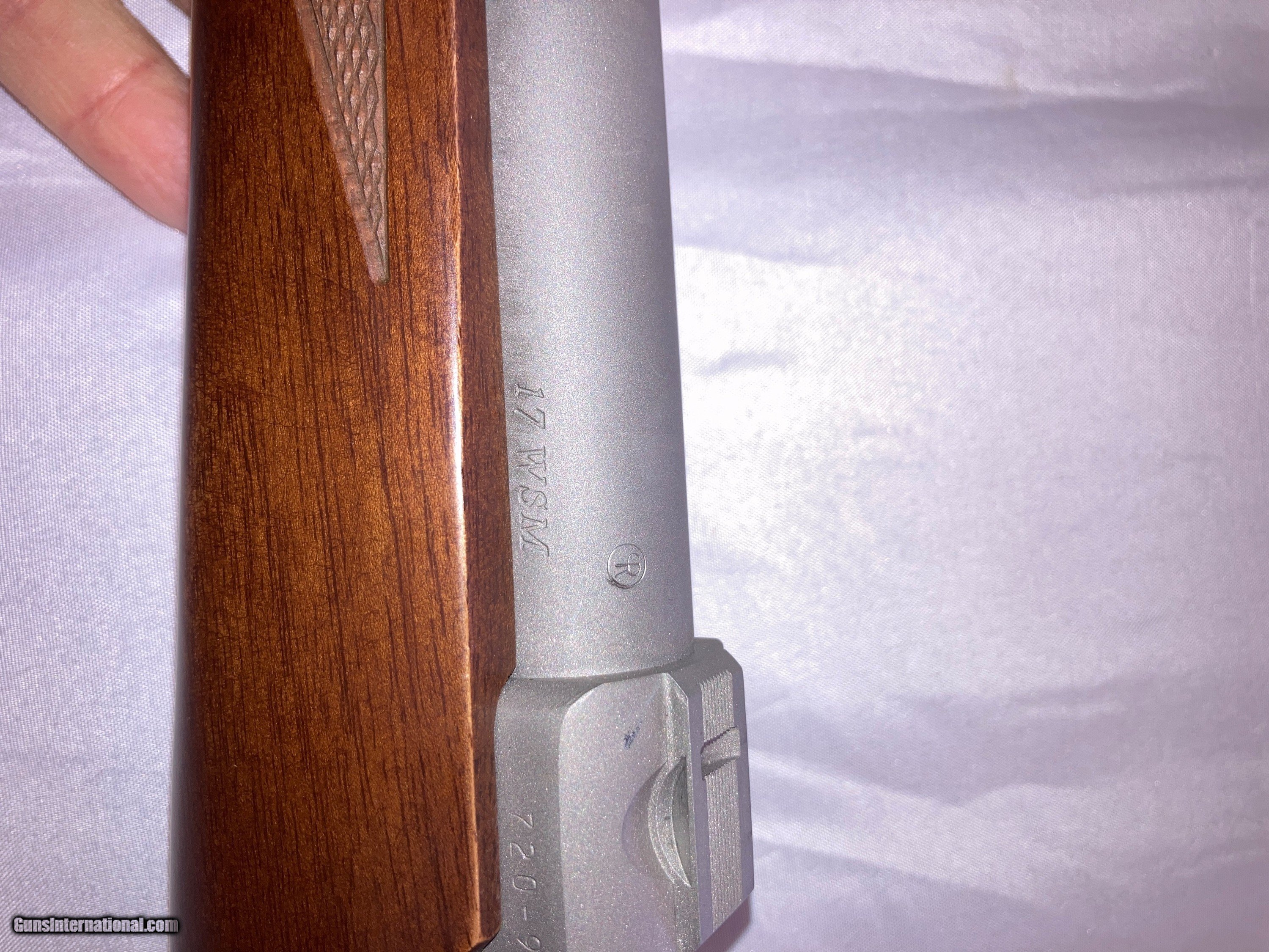 Description: Very nice Ruger 77/17 in .17wsm with walnut stock and Ruger target grey metal finish. Wood is in very nice/ excellent condition no blemishes or marks. the Metal has very light safe rub marks about half way down the barrel. No other imperfections that I can see. Includes 1 magazine and I can add 2 more for 25.00 each "Pictures attached". These models are very hard to find especially in walnut stock. Shipping and insurance add 75.00 SOLD Rifle Caliber: .17 WSM Manufacturer: Ruger Model: 77/17 Condition: Very nice to excellent Metal Condition: very nice Wood Condition: excellent Bore Condition: bright |
