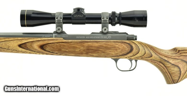 Description: Ruger 77/ 22 .22 Hornet caliber rifle. Stainless and laminate rifle with Leupold 2-7X scope. Popular .22 Hornet caliber. Excellent condition.