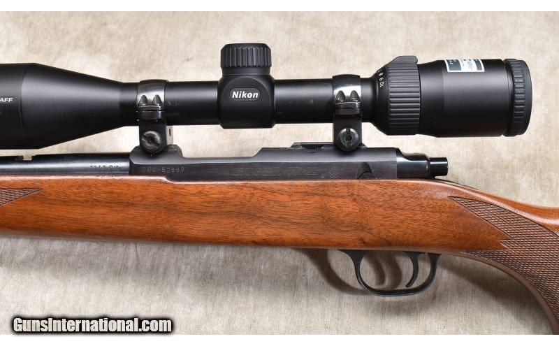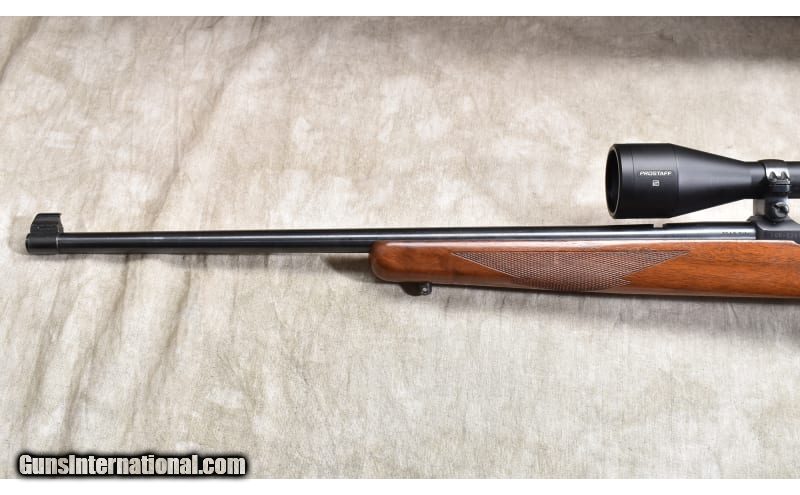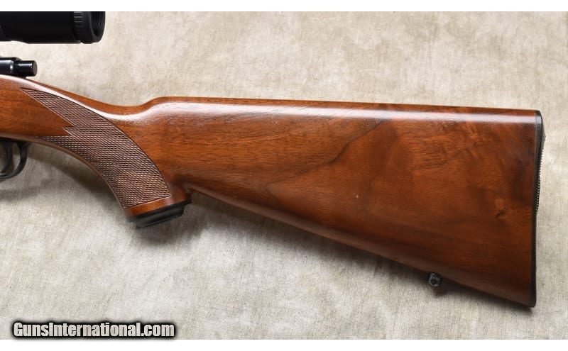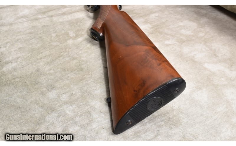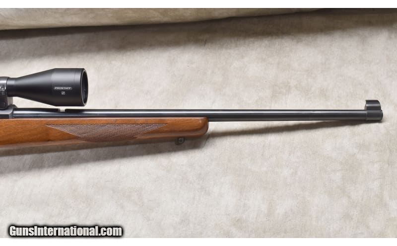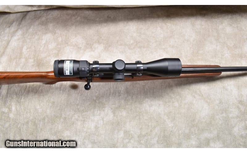 Description: This little bolt action rifle features a nice walnut stock with some figure, detachable rotary magazine, and a nice scope. YOM 1985. .22 Long Rifle SOLD Chambers: 10-round detachable magazine Metal Condition: Very good to excellent. Wood Condition: Very good to excellent. Bore Condition: Shiny and bright with good rifling. Barrels: 20-inch Triggers: Factory trigger. Stock Dimensions: 13-1/2 inch LOP. Butt Pad: Black plate. Weight: 7 lb - 3 oz Sights: "Gold bead front sight, rear sight removed. Set up for scope and outfitted with a Nikon Prostaff 2.5-10x scope with BDC. Item Location: Rogers |