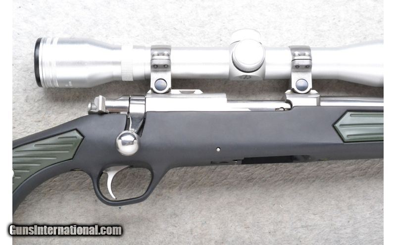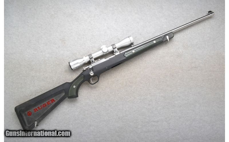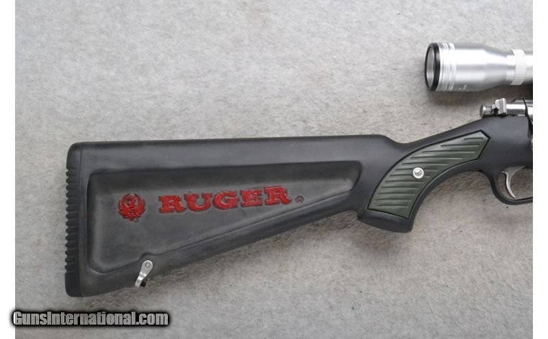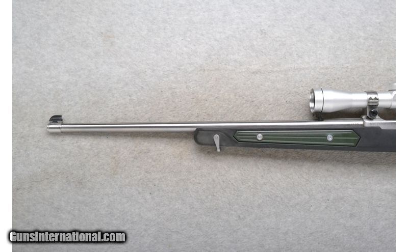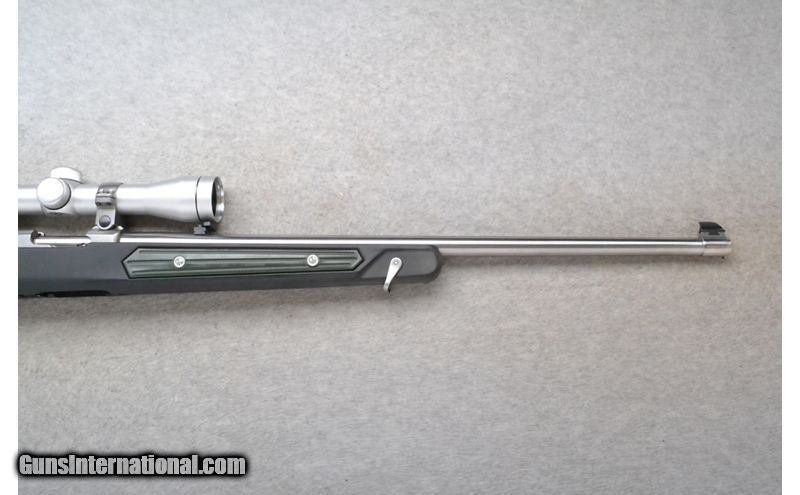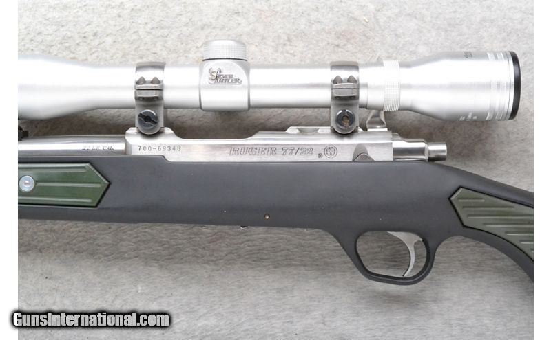 Description: This Ruger Model 77/22 is a right hand bolt action rifle in .22 Long Rifle Cal. It has a 20 inch stainless steel barrel. A blade front sight and a folding adjustable notch middle sight. It is outfitted with a Tasco Scope. The butt stock is a green ribbed grip polymer insert in a black polymer pistol grip. The forearm is a green ribbed polymer insert in a black polymer. .22 Long Rifle SOLD Chambers: Rotary Magazine. Metal Condition: Excellent. Bore Condition: Excellent. Barrels: 20 inch stainless steel. Stock Dimensions: LOP 13 3/4 inches. Fore End: Green ribbed grip polymer insert in a black polymer. Butt Pad: Ribbed black rubber. Weight: 6 lb. 10 oz. Sights: Raised front blade. Folding adjustable notch middle. Tasco Silver Antler 4x22 Scope. Item Location: Richfield, WI |