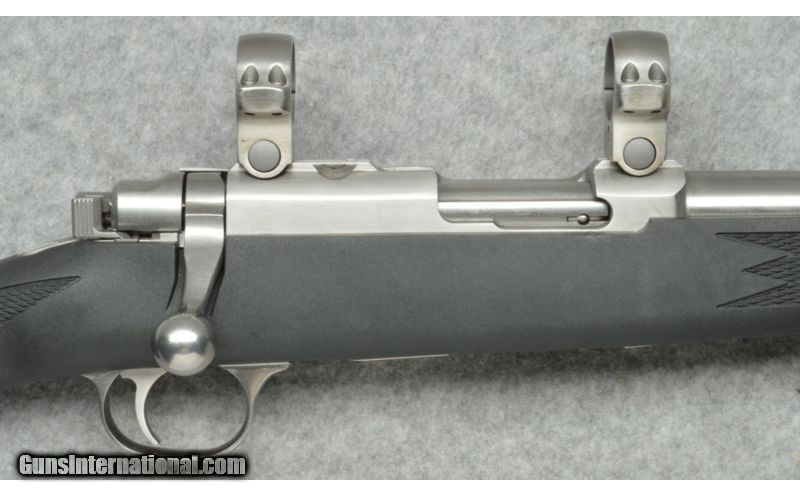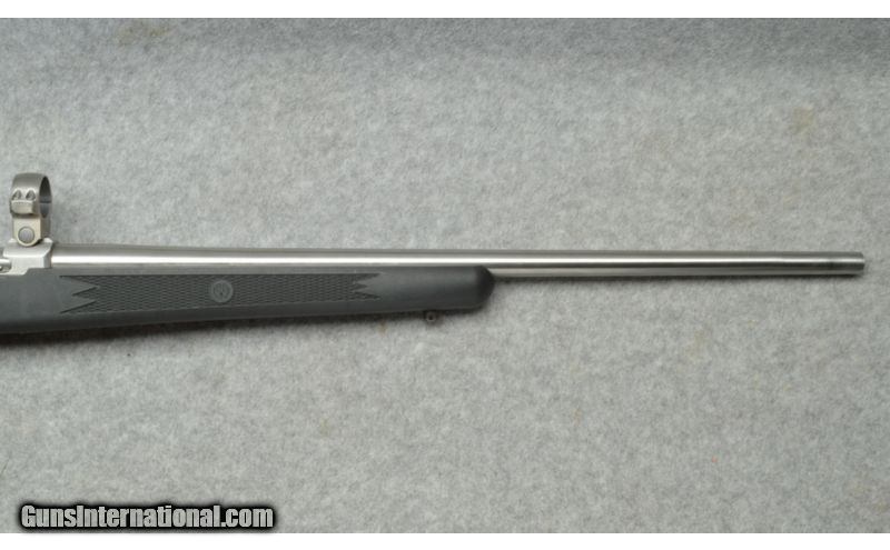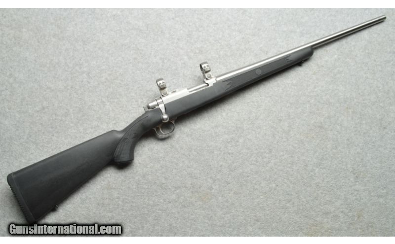 Description: Gun features 20" barrel, nine round detachable rotary magazine, 3-position safety, bolt-action rimfire rifle, 6 groove stainless steel barrel, black synthetic stock, and is in very good condition. SOLD Manufacturer: Modern manufacture. Caliber Info: 22 Mag. Chambers: Bolt action, detachable 9+1 rotary magazine. One magazine included. Metal Condition: Very good. Wood Condition: Good, light surface scratches. Bore Condition: Excellent. Barrels: 20 inch round rifled stainless steel barrel. Triggers: Single stage trigger, three position safety is mounted on the right rear of the receiver. Stock: Black checkered synthetic pistol grip stock. Stock Dimensions: 14 1/8 inch length of pull. Fore End: Black checkered synthetic fore-end is part of the stock. Butt Pad: Black rubber recoil pad. Weight: 5 1/8 Pounds. Sights: Ruger scope base is integrated into the receiver, 1" Ruger stainless steel rings. Extras: 1" Ruger Stainless Steel rings. Item Location: Woodbury, MN |