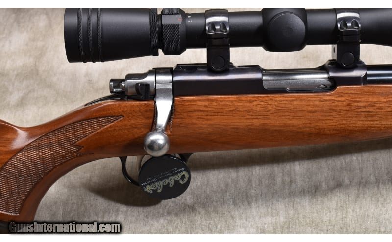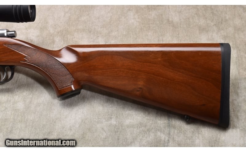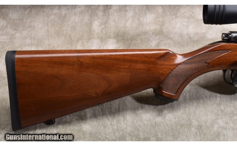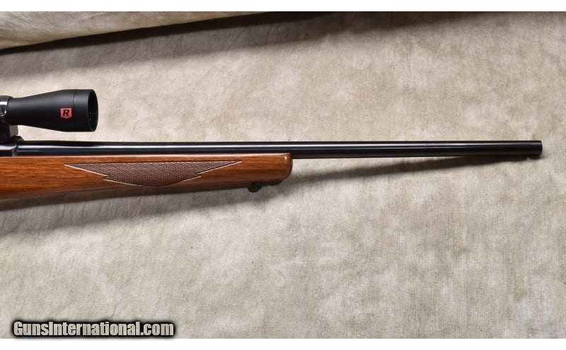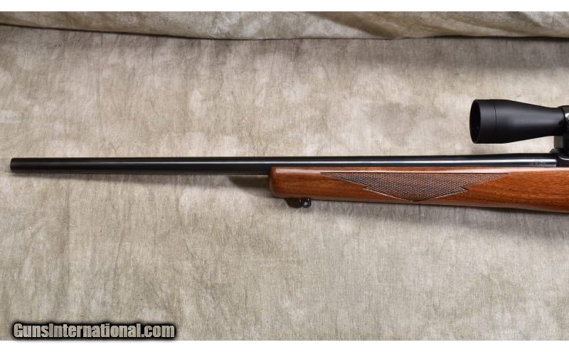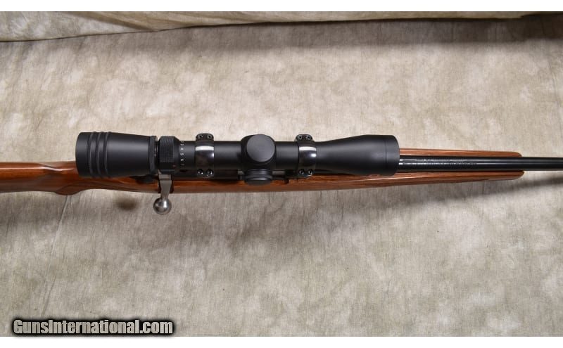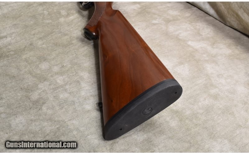 Description: This small rifle features a nice walnut stock, claw type extractor, detachable magazine, and a soft recoil pad. The date of manufacture is 1985. It may have been used, but it wasn't used much. .22 WMR SOLD Chambers: 5 rounds Metal Condition: Excellent. Wood Condition: Very good. It has some fine scratches. Bore Condition: Shiny and bright with good rifling. Barrels: 20-inch Triggers: Factory trigger. Stock Dimensions: 13-1/2 inch LOP. Butt Pad: Soft rubber pad. Weight: 7 lb - 5 oz. Sights: Set up for scope. Item Location: Rogers |