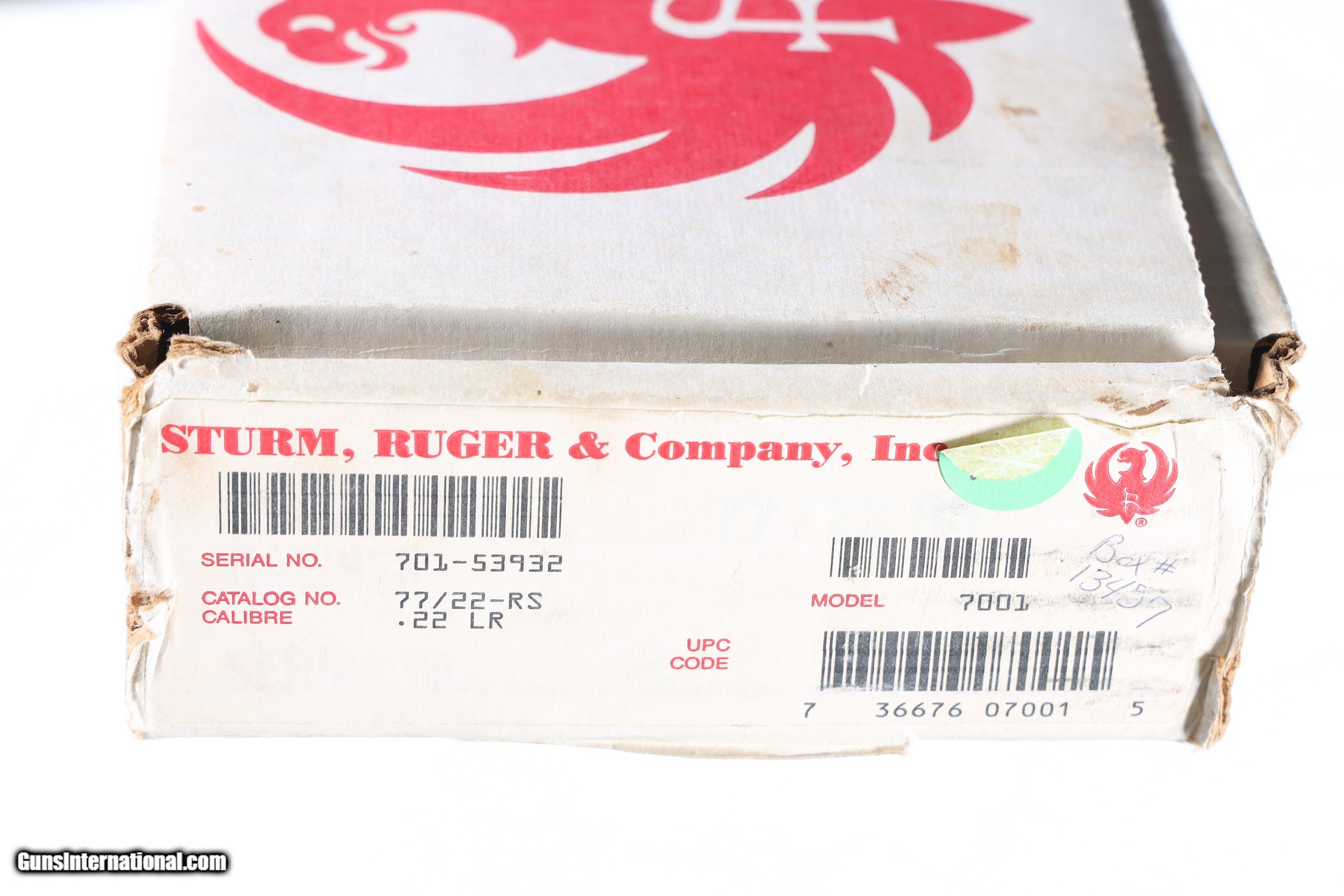 Description: Like new in factory box numbered to gun with factory rings. Mfd 1992 • Free Shipping, No Credit Card Fees. • Lay-a-way available for this firearm. • 1/3 Down, a 1/3 in 30 Days 1/3 in 60 Days. SOLD Manufacturer: Ruger Model: 77/22 Serial Number: 701-53932 Barrel Length: 20 |