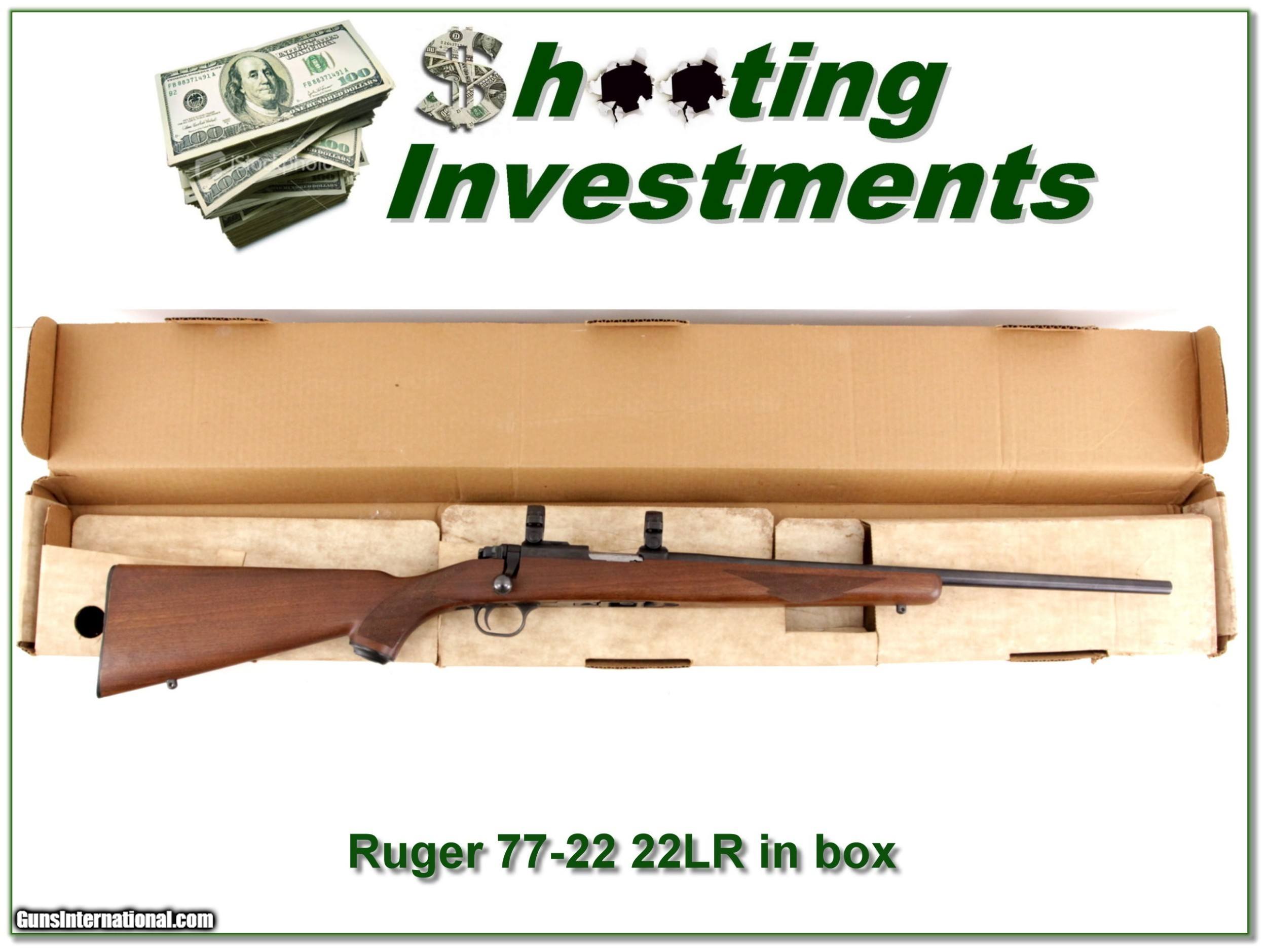 Description: This is a vintage Ruger 77-22 Red Pad in 22LR. It comes with original box in excellent condition. I find only a few insignificant handing marks. It has a 20in barrel and will make a classic rimfire! I am selling this one on consignment and as such lay-a-way can’t be used. It does of course have the standard 3-day inspection. Shipping with insurance is $39. Please email me with any questions or larger pictures. (Consign your quality firearms with Shooting Investments for only 12%! Let me know if you have any you would like to sell!) 19-0712 Payment: Payment is by Money Order, Cashiers Check or Personal Check. I can now also accept Credit Cards (MasterCard, Visa, Discover & American Express) with a 3% convenience fee. PayPal can be used for some items but never for firearms. Shipping: The shipping charge will be listed in each description. It is $39 for most firearms. Some heavy guns or those insured for over $2000 will be higher. Shipments to Alaska and Hawaii are higher because air shipment is required. Most firearms are shipped on Tuesday and Thursday and usually in 5 days of receipt of payment. We package all shipments carefully and insure them. Optics are shipped Priority Mail and most other non-firearm shipments are shipped First Class. Returns: Our return policy is simple. If for any reason you are not pleased with your purchase, you may return your item for a full refund of purchase price. Ammunition cannot be returned. It is important to us that you are happy. Guns cannot be fired or dissembled before returning them and they must be returned in the same condition as received. Notification of a return must occur with-in 3 days of receipt at your dealer. Shipping, convenience and dealer fees are not refundable and are the responsibility of the buyer. Lay-a-way: If needed, we offer a 60 day lay-a-way option on most firearms. It is 1/3 now, 1/3 in 30 days and 1/3 in 60 days. Lay-a-way firearm sales are final and if not completed the first payment cannot be returned. Consigning your firearms with Shooting Investments: We will help you get top dollar for your firearms. While most local guns shops charge 20% or more, our fee is only 12% with a minimum of $75. At your local gun shop it might take months to sell. Selling on-line provides instant access to thousands of interested buyers. You won’t find any other on-line dealer willing to sell your firearms for only 12% or listing every gun on 3 separate s. Selling through an House typically costs the seller 15% and the buyer an addition 15% (so 30%) and you have to wait several months to sell and longer to receive funds. If properly priced, we will sell your firearms in a few weeks. Send us an email or give us a call and we’ll explain how easy it is for you to get top dollar. Trading: Trading for use is really just buying your gun to re-sell. If you have a gun you want to trade, please email a picture and we will let you know what we can give or it. You will always get more if we sell it for you on consignment. Help for California Buyers: We are happy to ship to California. It is the buyer’s responsibility to make sure any item you buy is legal in your state. We are also happy to help with your purchase of a firearm from someone other than us. If you see a gun you would like to buy but the seller can’t or won’t ship to California they can ship to use and we’ll then ship it to your California dealer. The cost for this service is only $30 + shipping. Let us know if we can help! SOLD |