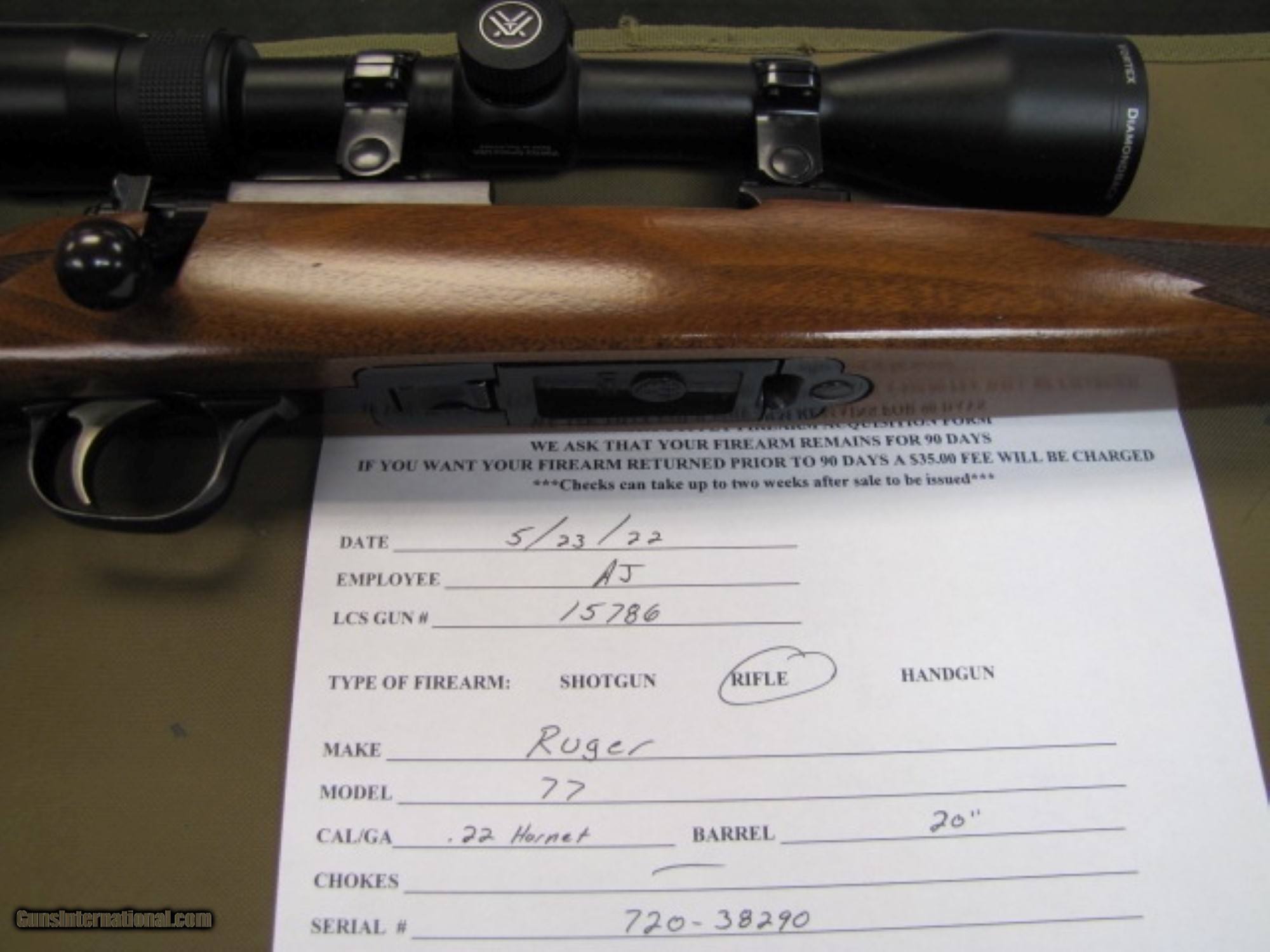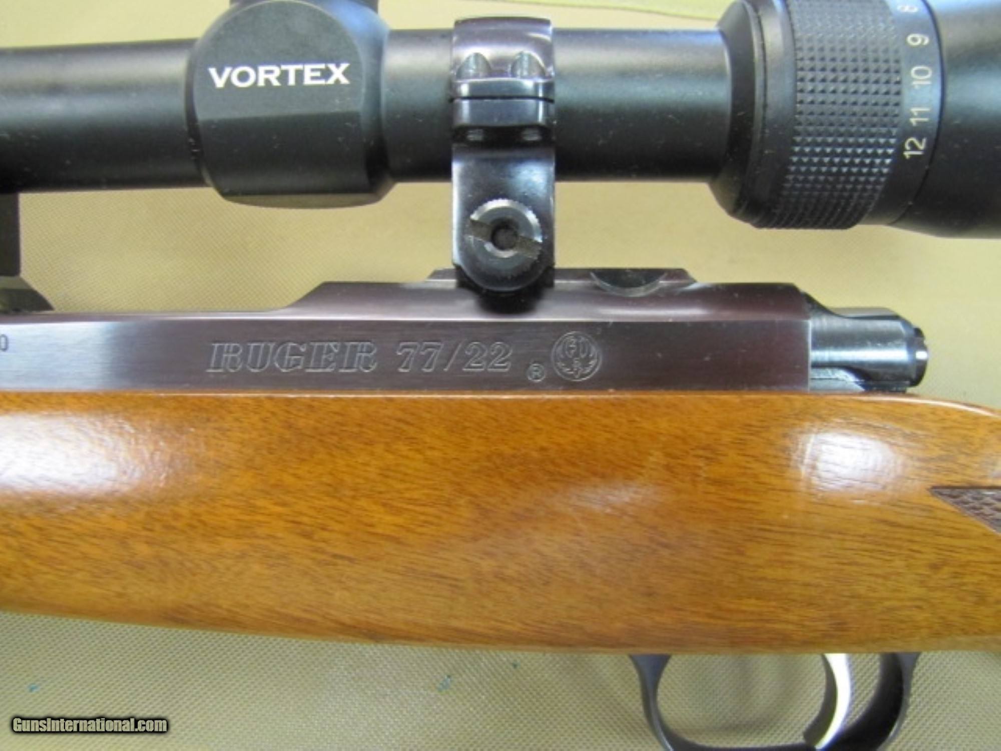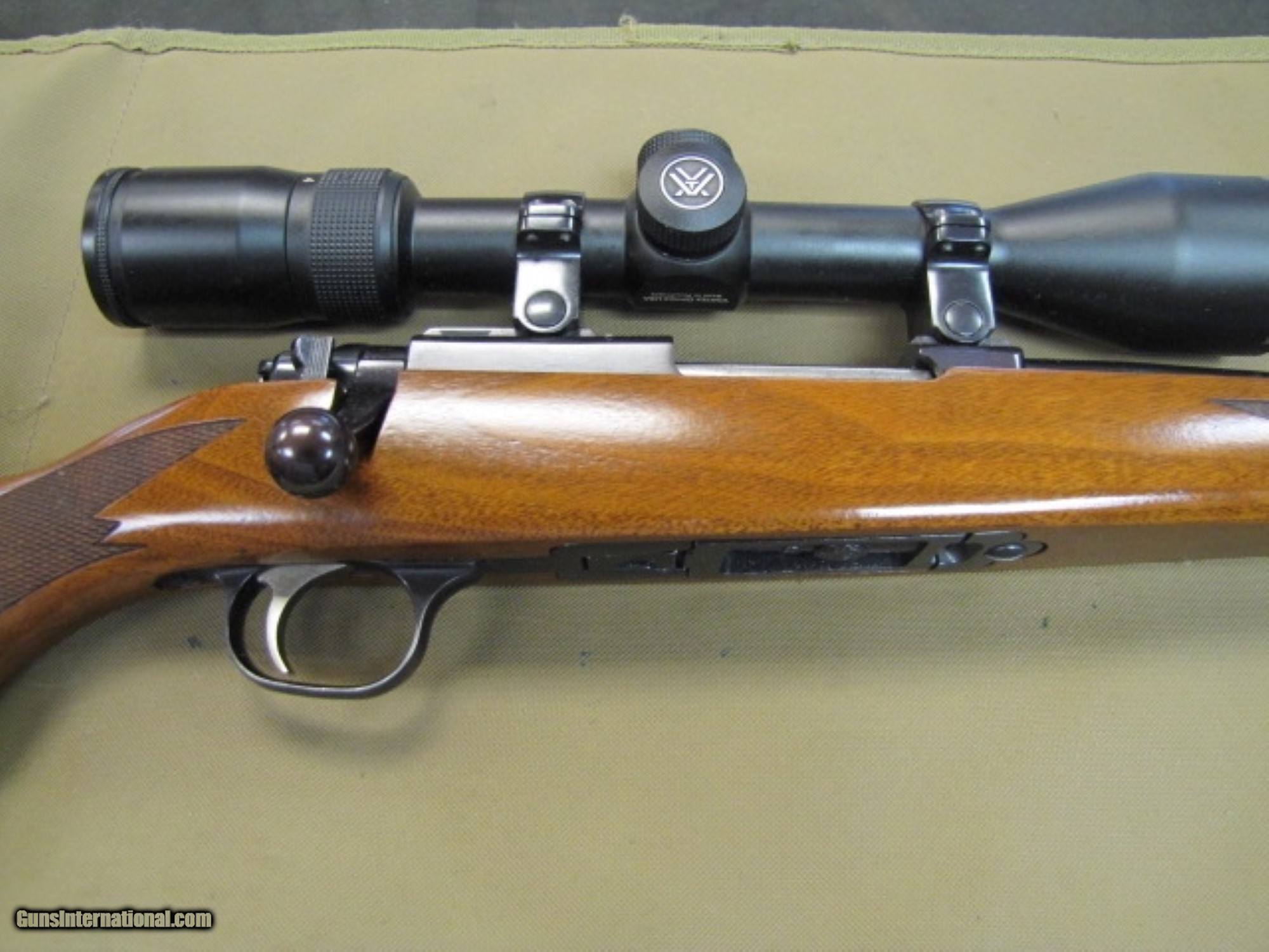 Description: This Ruger is in excellent condition. Comes with a Vortex Diamondback 4-12×40 scope, 3 position safety, and a rotary mag. There are some light marks on the stock and some light scratches on the bottom of the barrel about 5″ from the muzzle. There are 3 full boxes and a half box of Hornady 35gr V-Max Ammo, as well as 27 rounds of Remington 45 grain PSP, included with this purchase. Serial Number: 720-38290, Barrel Length: 20", Weight: 7.10 lbs. Price now $1,195.00 SOLD |