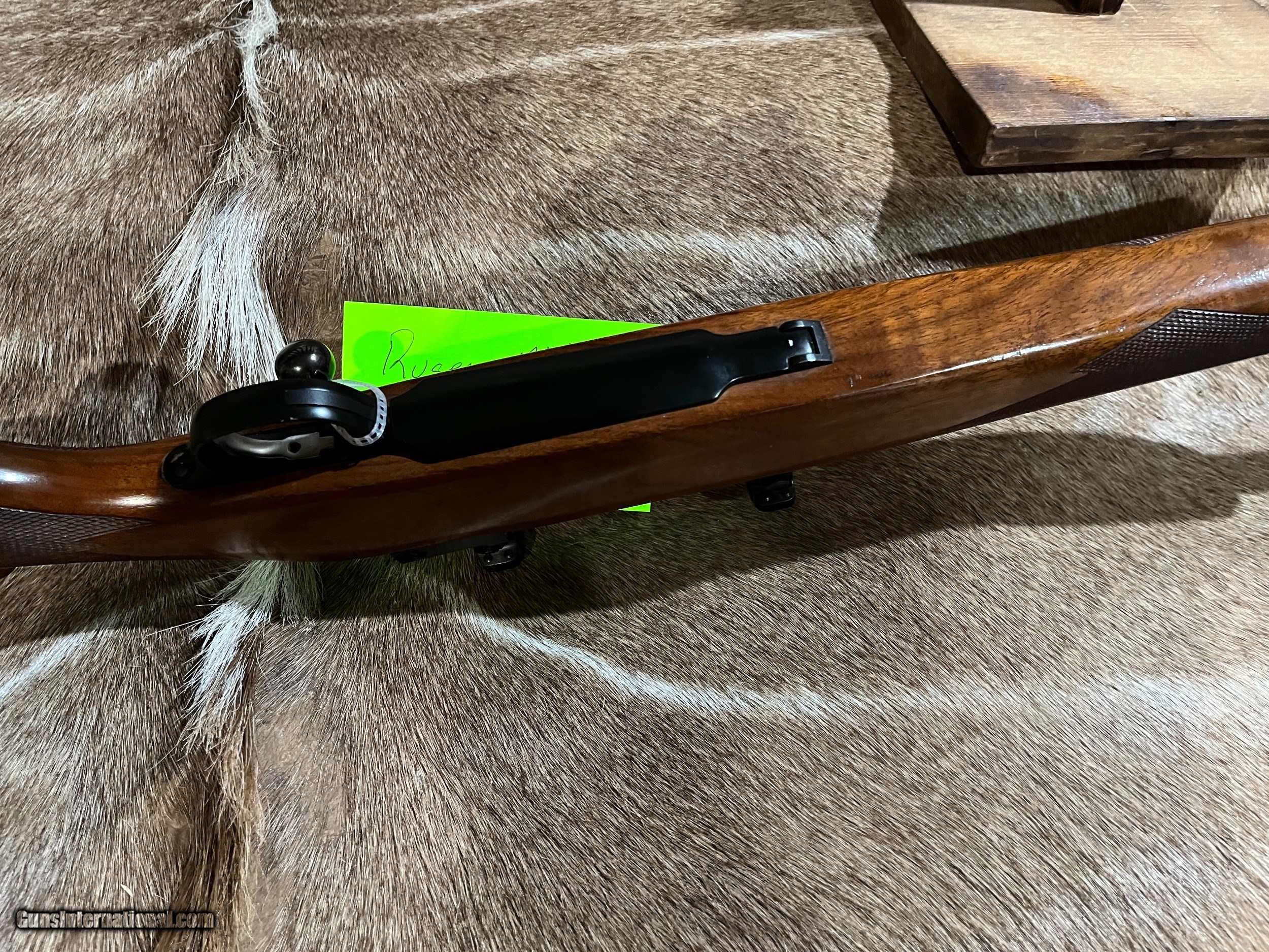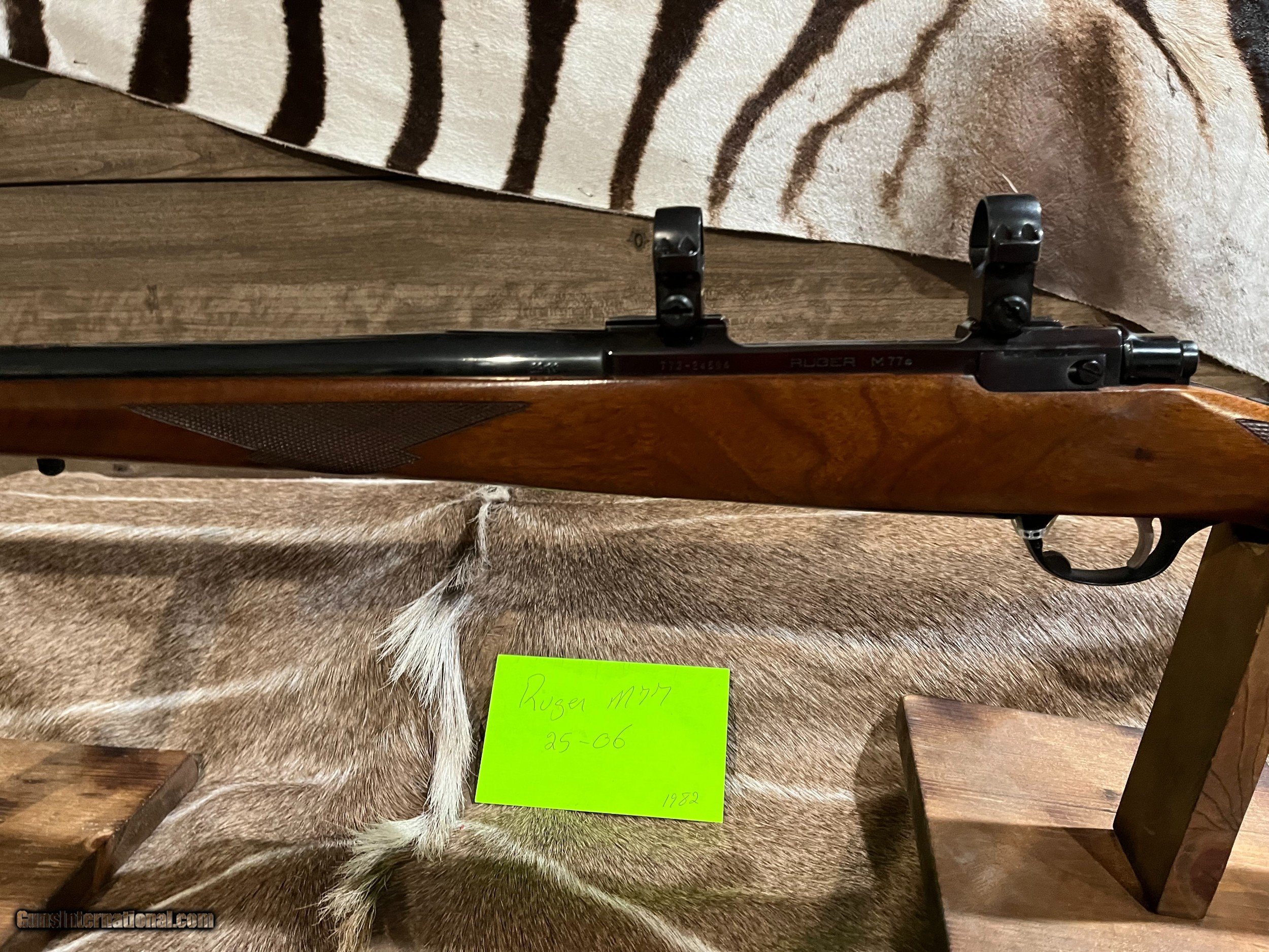 Description: This rifle is new in the box. It is in excellent condition. It is a tang saftey with the red butt pad and was manufactured in 1982. These rifles are rare to find in new unfired in box condition. Please add $65. for shipping. This rifle is a heavy barrel. Sold Sold SOLD Rifle Caliber: .25-06 Remington Manufacturer: Ruger Model: 77 Serial Number: 773-24594 Barrel Length: 26 inch Condition: New in Box Metal Condition: excellent Wood Condition: excellent Bore Condition: excellent Barrel Type: Heavy LOP: 14 3/4 inch Manufacture Date: 1982 |