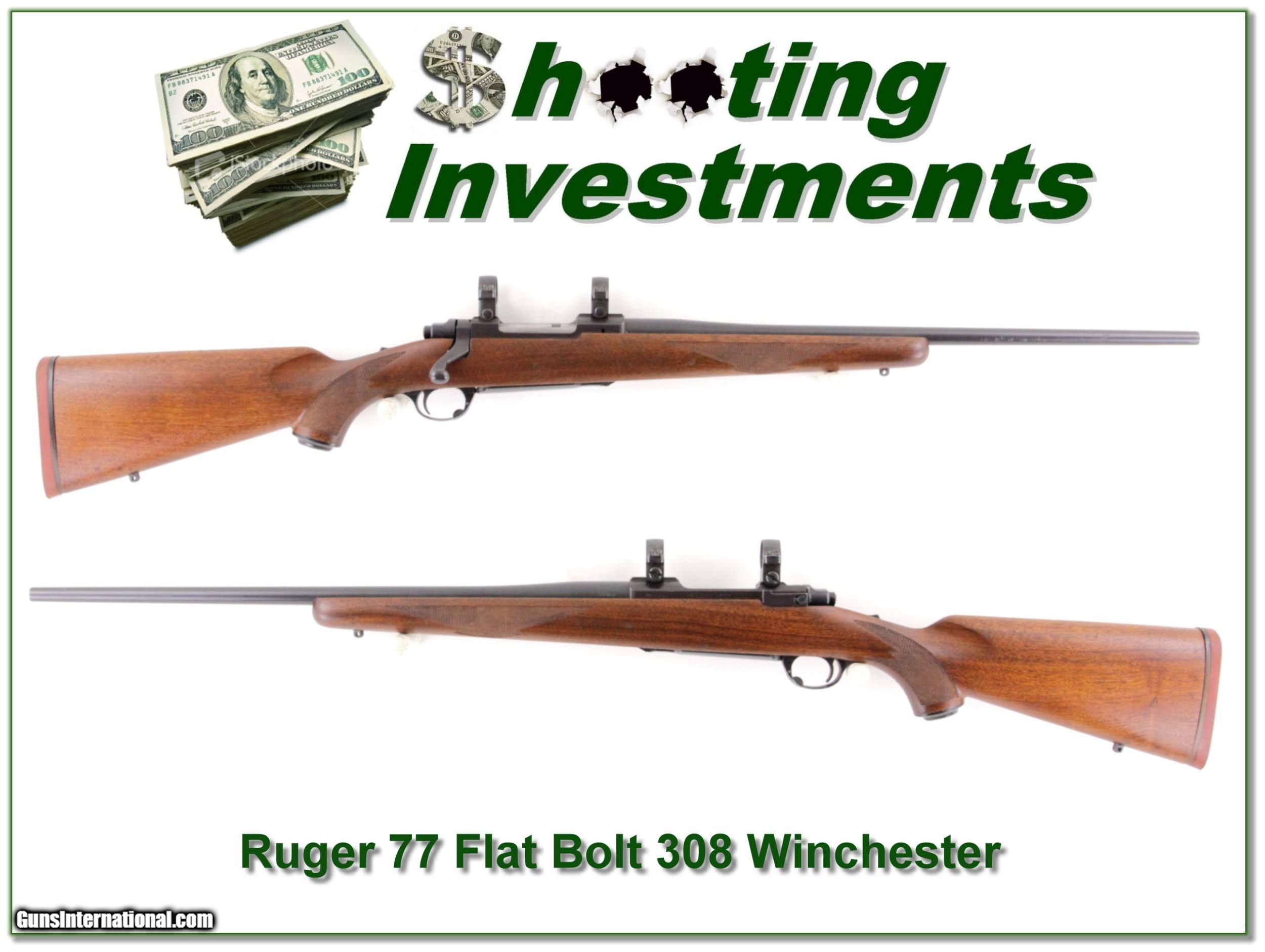 Description: This is a very hard to find Ruger 77 in 308 Winchester with early Flatbolt. This is the first 77 Design with red pad and tang safety. This one has a 22in barrel with some old pitting on the outside. The bore is bright and shiny. At some point the barrel was reblued. The wood has a few marks from use. It comes with original rings and will make a classic hunting gun, or it could be restored to as new. Shipping with insurance is $39. Please email me with any questions or larger pictures. (Consign your quality firearms with Shooting Investments for only 12%! Let me know if you have any you would like to sell!) 19-0235 Payment: Payment is by Money Order, Cashiers Check or Personal Check. I can now also accept MasterCard and Visa with a 3% convenience fee. PayPal can be used for some items but never firearms. Please let us know if you would like to pay via PayPal. Shipping: The shipping charge will be listed in each description. It is $39 for most long guns and $29 for most handguns. Some heavy guns or those insured for over $2000 will be higher. Shipments to Alaska and Hawaii are higher because air shipment is required. Most firearms are shipped on Tuesday and Thursday and usually in 5 days of receipt of payment. We package all shipments carefully and insure them. For long guns you can purchase a new Plano case for $19. They now cost us $22 when buying 100 at a time. Optics are shipped Priority Mail and most other non-firearm shipments are shipped First Class. Returns: Our return policy is simple. If for any reason you are not pleased with your purchase, you may return your item for a full refund of purchase price. Ammunition cannot be returned. It is important to us that you are happy. Guns cannot be fired or dissembled before returning them and they must be returned in the same condition as received. Notification of a return must occur with-in 3 days of receipt at your dealer. Shipping, convenience and dealer fees are not refundable and are the responsibility of the buyer. Lay-a-way: If needed, we offer a 60 day lay-a-way option on most firearms. It is 1/3 now, 1/3 in 30 days and 1/3 in 60 days. Lay-a-way firearm sales are final and if not completed the first payment cannot be returned. Consigning your firearms with Shooting Investments: We will help you get top dollar for your firearms. While most local guns shops charge 20% or more, our fee is only 12% with a minimum of $75. At your local gun shop it might take months to sell. Selling on-line provides instant access to thousands of interested buyers. You won’t find any other on-line dealer willing to sell your firearms for only 12% or listing every gun on 3 separate s. Selling through an House typically costs the seller 15% and the buyer an addition 15% (so 30%) and you have to wait several months to sell and longer to receive funds. If properly priced, we will sell your firearms in a few weeks. Send us an email or give us a call and we’ll explain how easy it is for you to get top dollar. Trading: Trading for use is really just buying your gun to re-sell. If you have a gun you want to trade, please email a picture and we will let you know what we can give or it. You will always get more if we sell it for you on consignment. Help for California Buyers: We are happy to ship to California. It is the buyer’s responsibility to make sure any item you buy is legal in your state. We are also happy to help with your purchase of a firearm from someone other than us. If you see a gun you would like to buy but the seller can’t or won’t ship to California they can ship to use and we’ll then ship it to your California dealer. The cost for this service is only $30 + shipping. Let us know if we can help! SOLD |