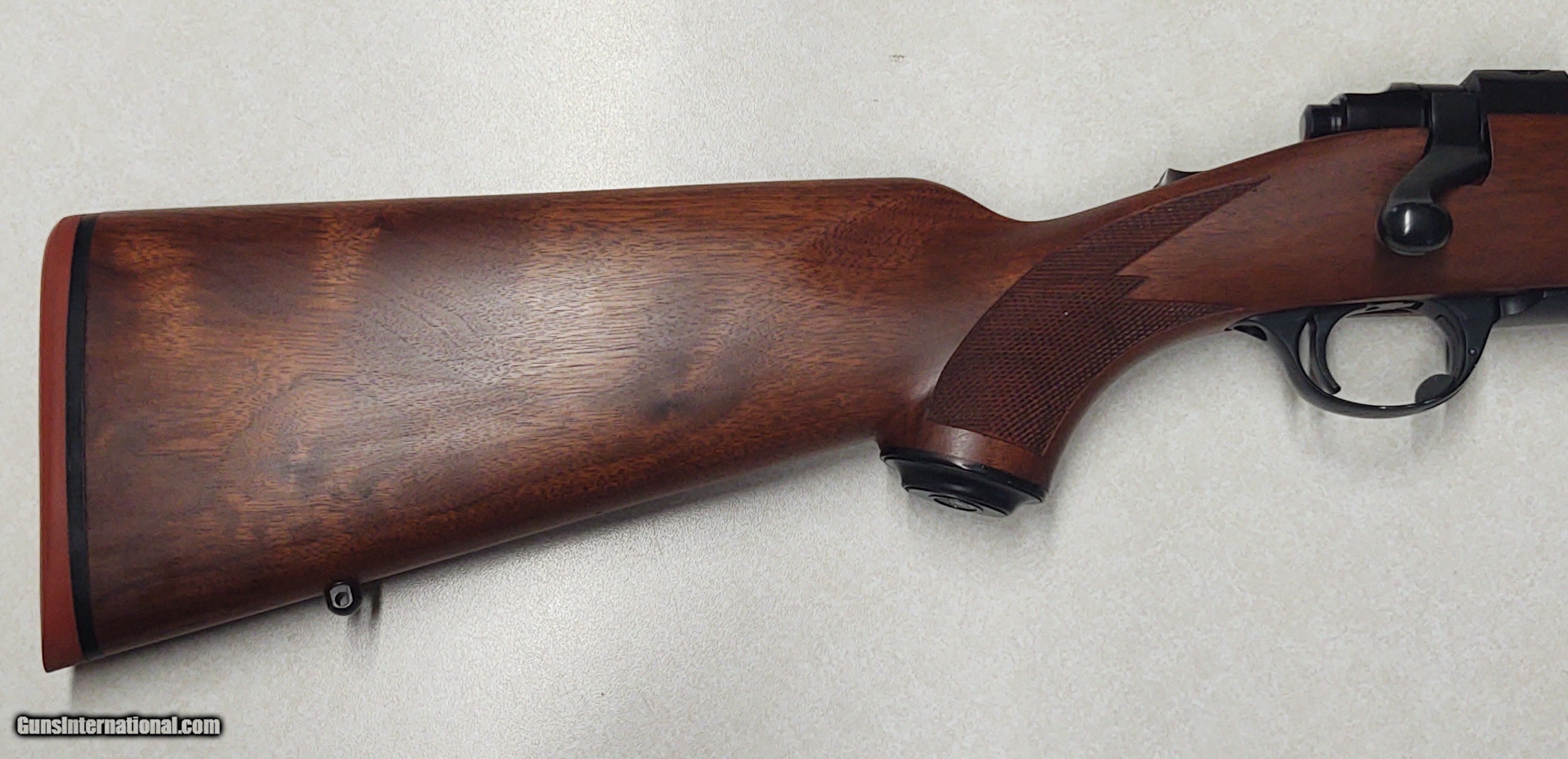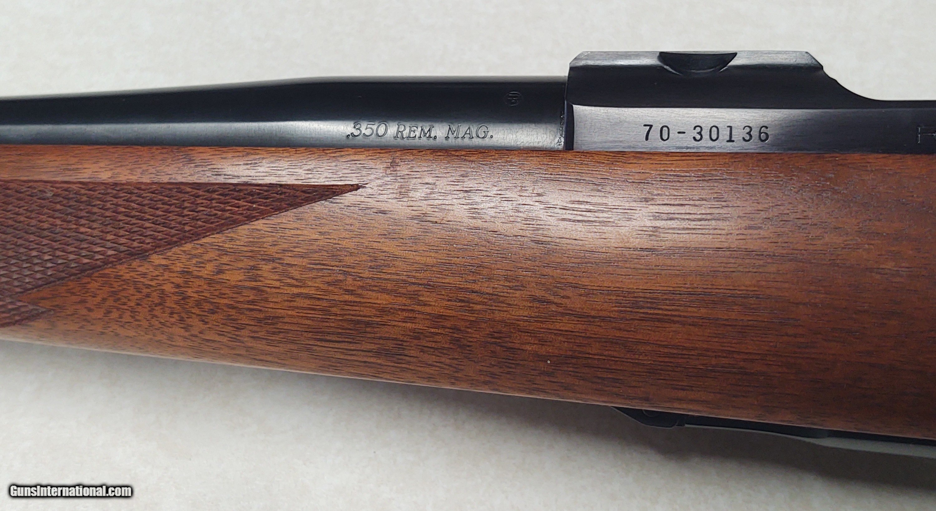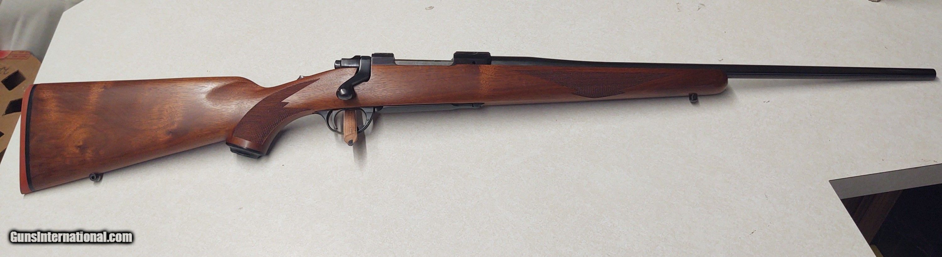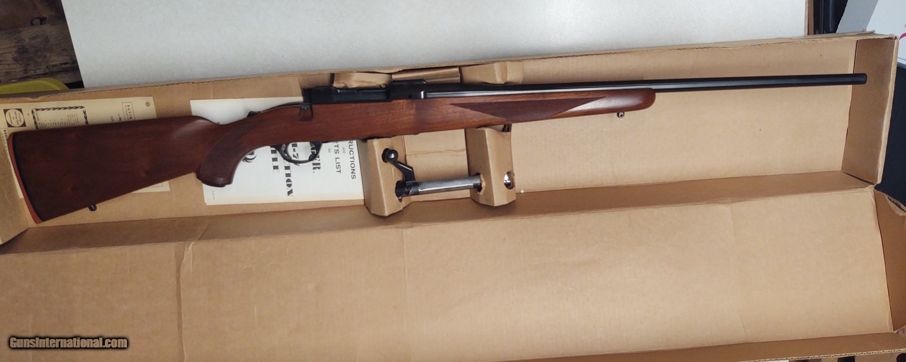 Description: As new in box with paperwork, couple small imperfections in finish on trigger guard. SOLD Rifle Caliber: .350 Remington Magnum Manufacturer: Ruger Model: 77 Condition: As new in box Metal Condition: 99 Wood Condition: 99 Bore Condition: 99 Action: Bolt Stock: Walnut |