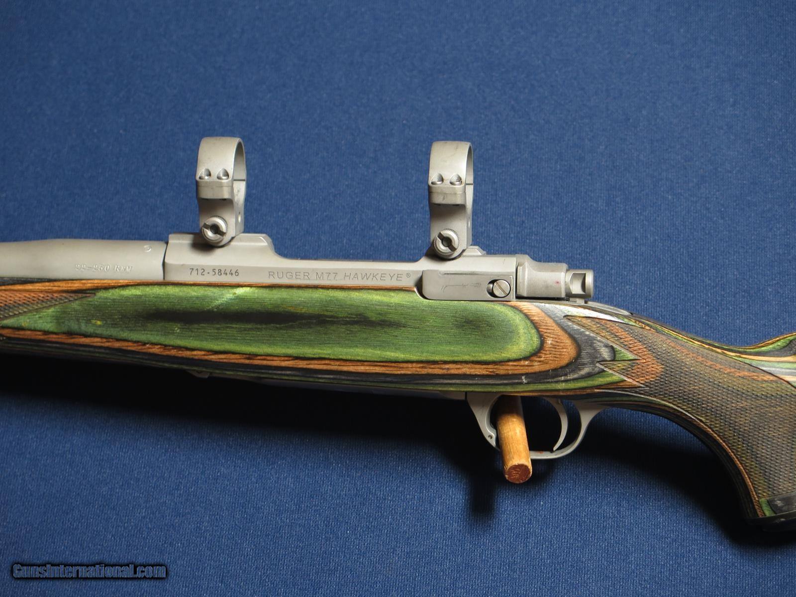 Description: Ruger 77 Hawkeye Predator 22-250. Stainless matte finish. 24 inch barrel. Green mountain laminate stock. 30mm rings. 97%. Excellent bore. SOLD |